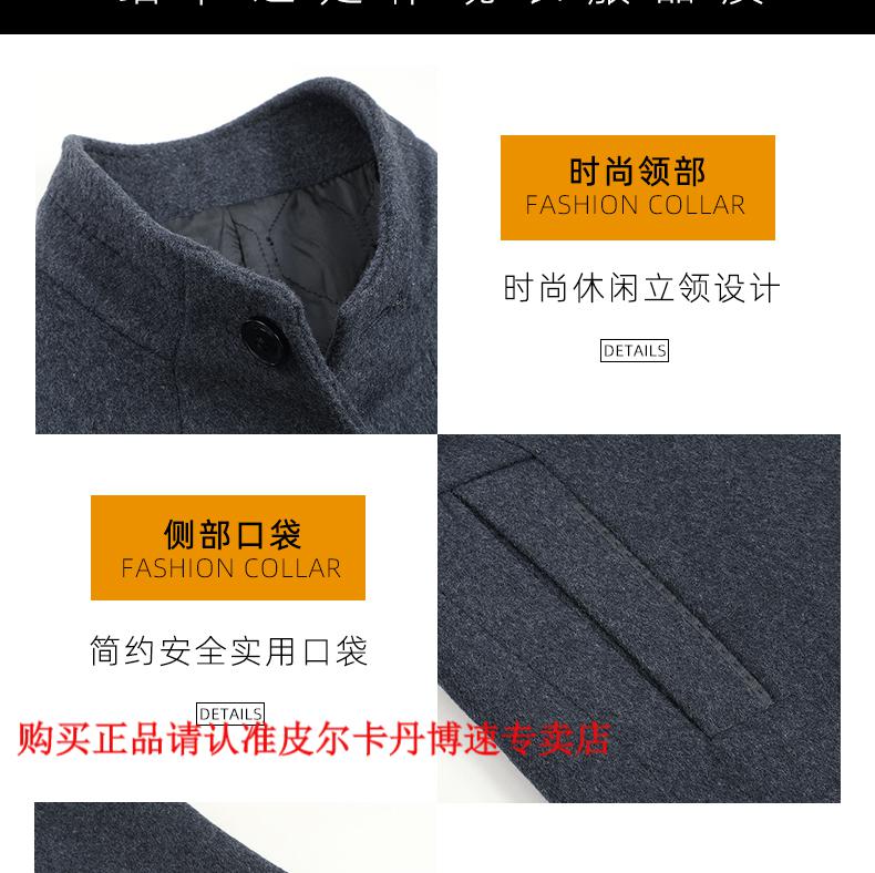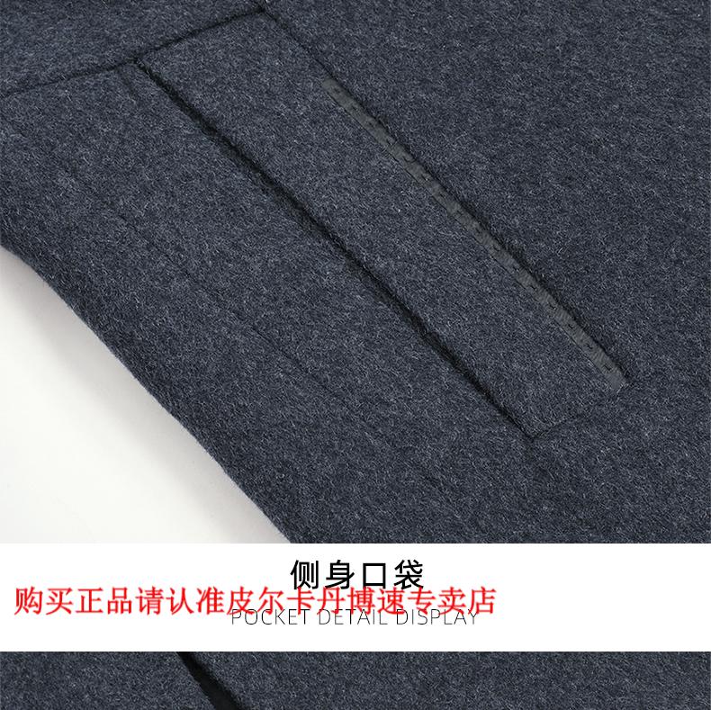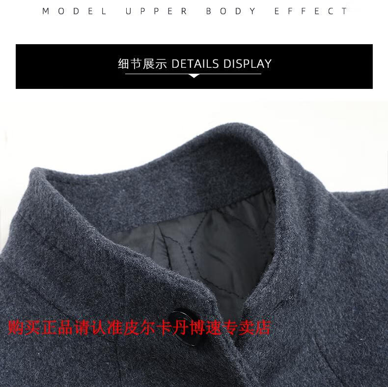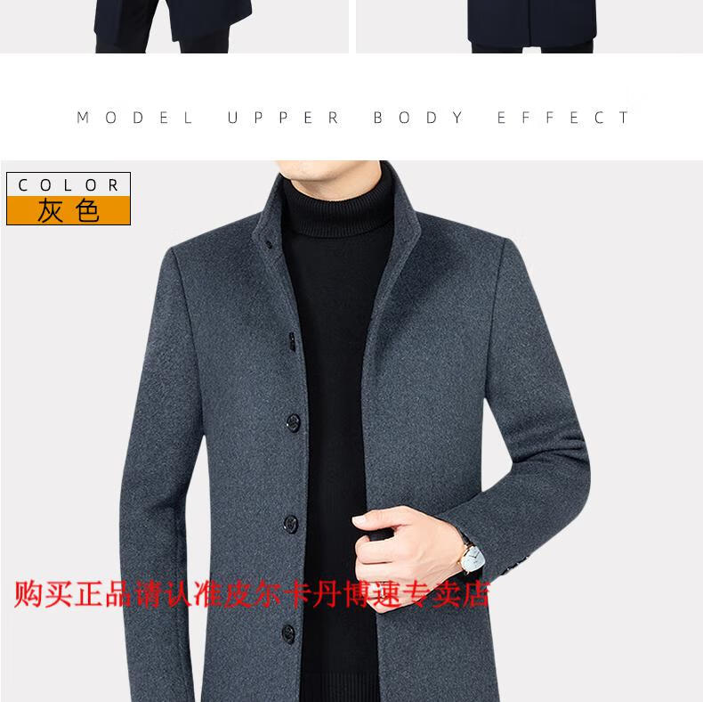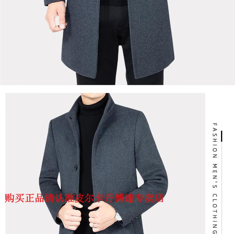 Pierre Cardin Men's Wool Wool Coat Wool Jacket Men's Medium Long Stand Collar 2025 Autumn and Winter Middle-aged Woolen Windbreaker Autumn Clothing S8868 Gray Stand Collar XL 180