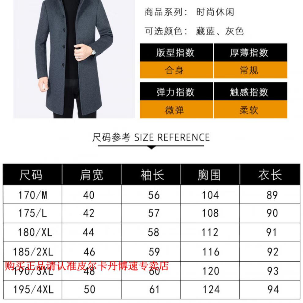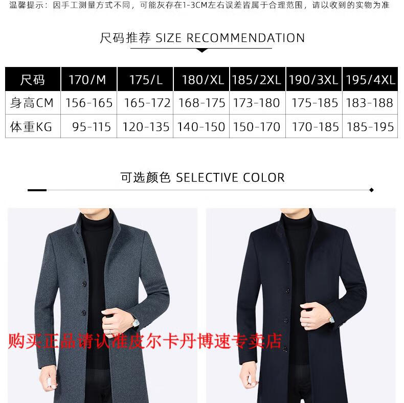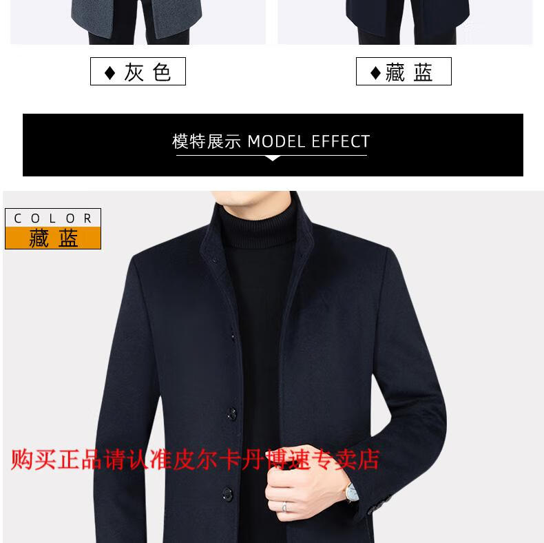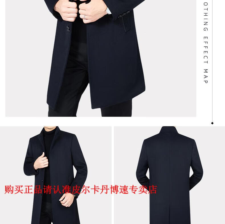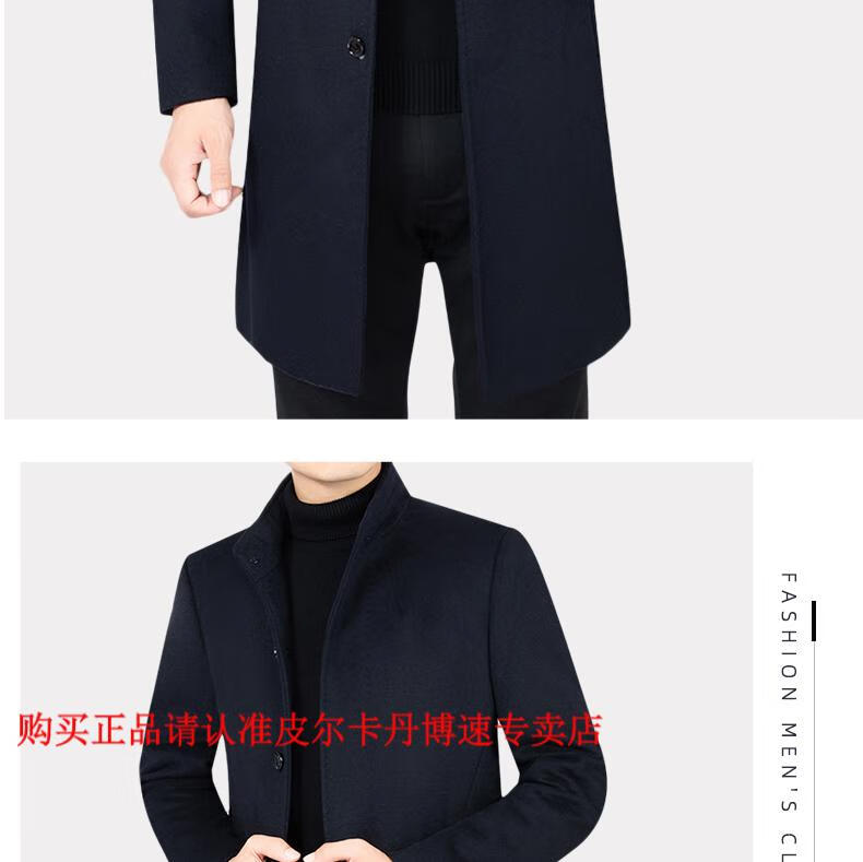 Pierre Cardin Men's Wool Wool Coat Wool Jacket Men's Medium Long Stand Collar 2025 Autumn and Winter Middle-aged Woolen Windbreaker Autumn Clothing S8868 Gray Stand Collar XL 180