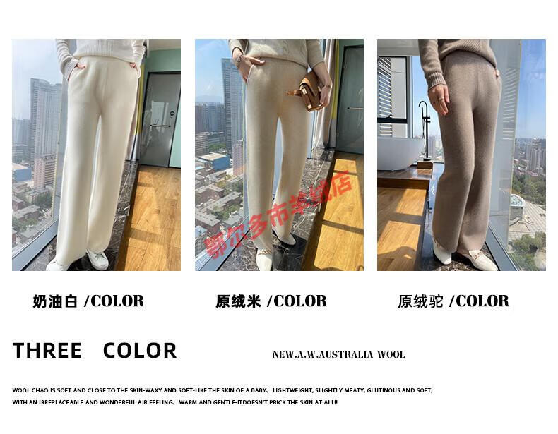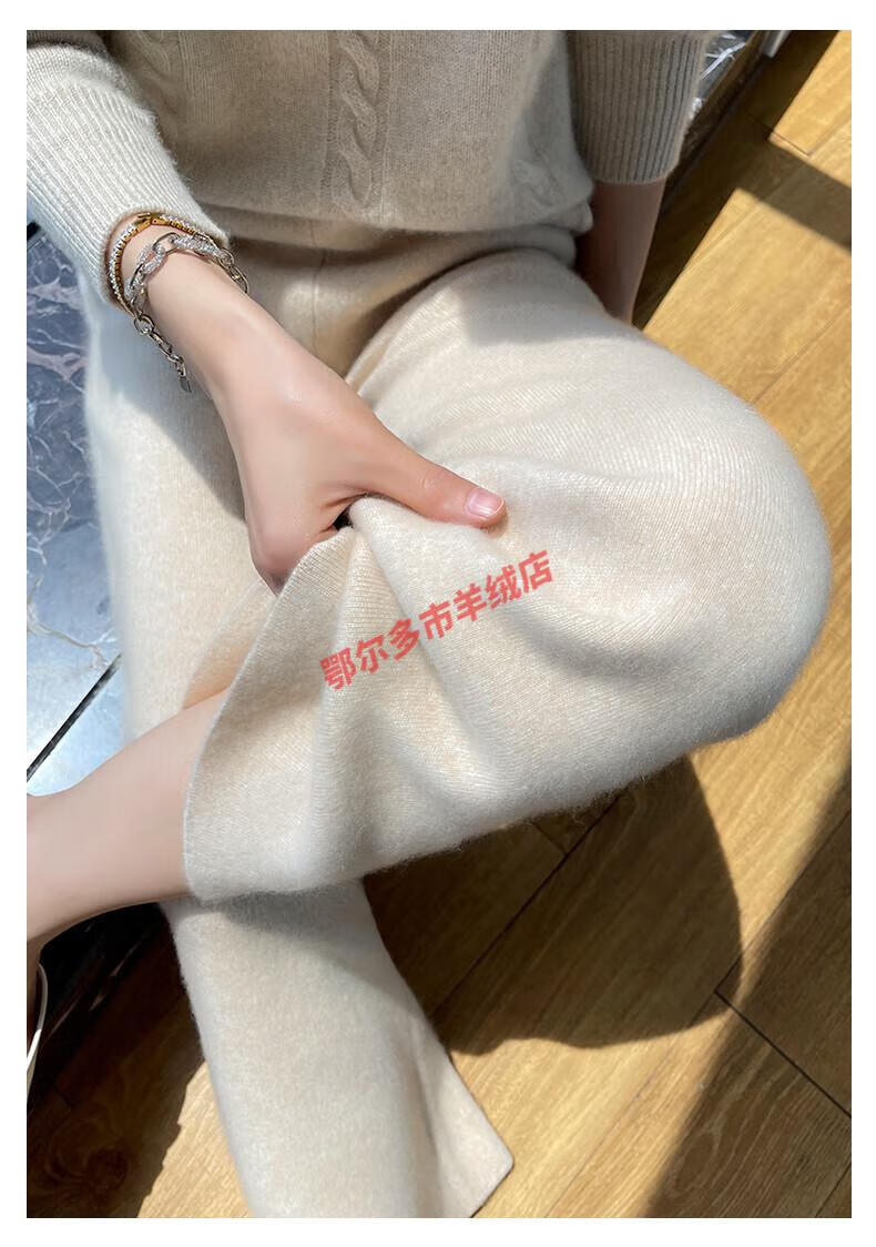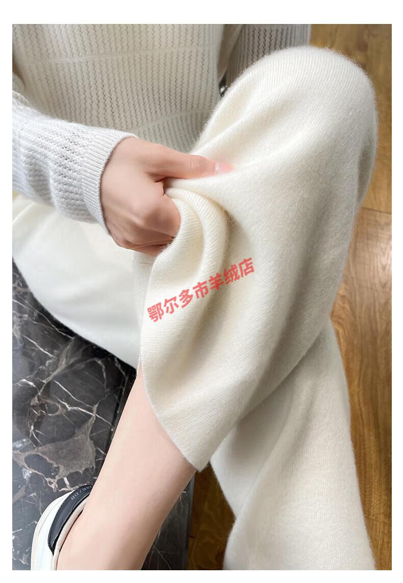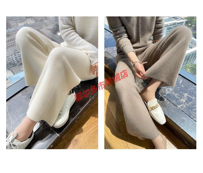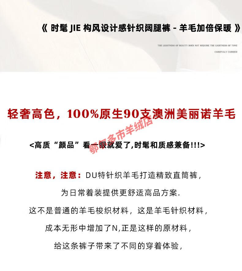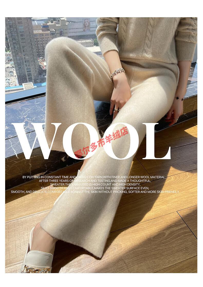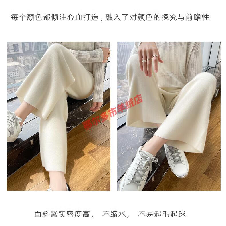 Or grassland Or prolific high-end cashmere temperament wide leg pants women's high waist wool cloud pants loose casual straight outer raw cashmere M
