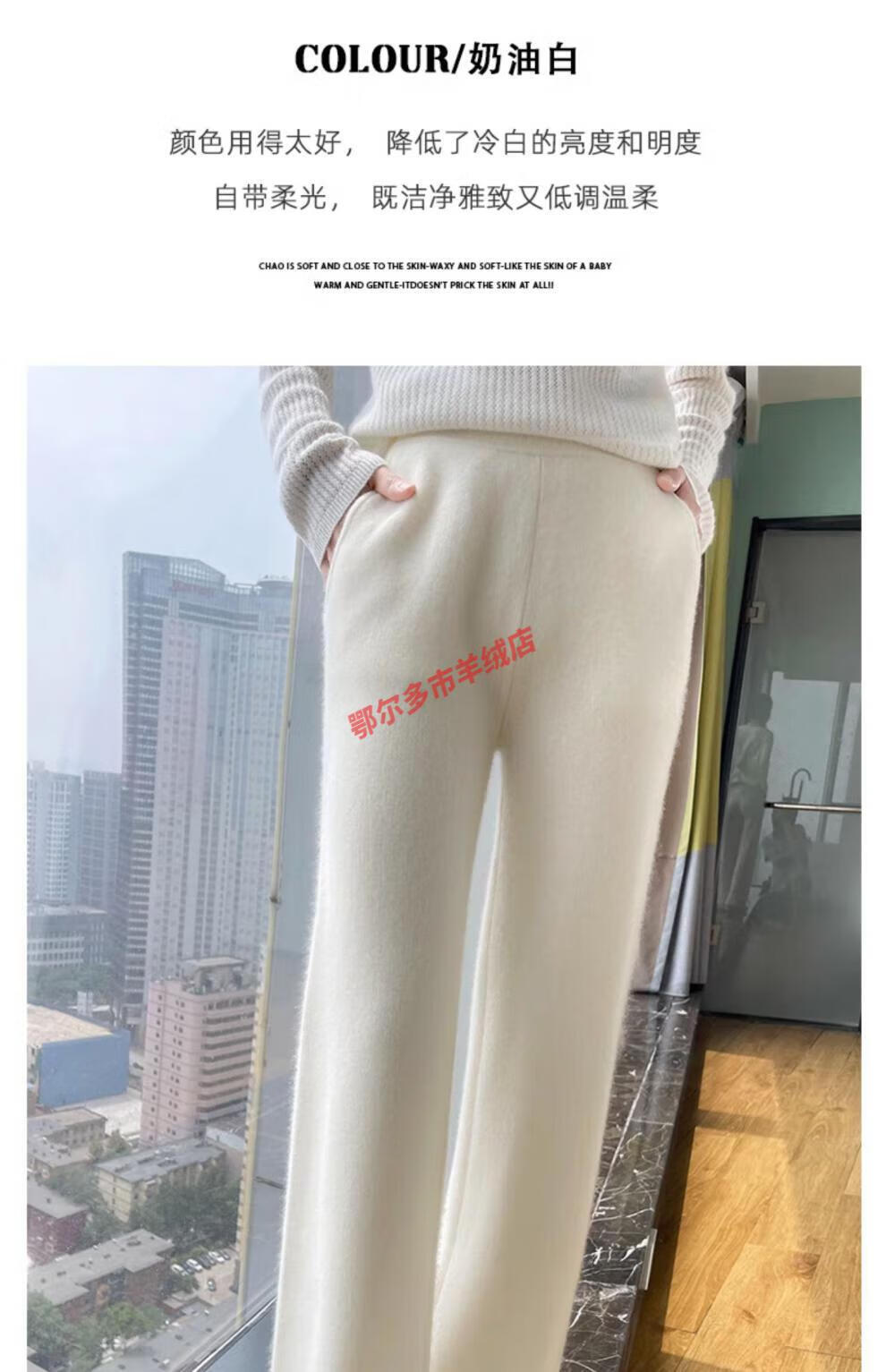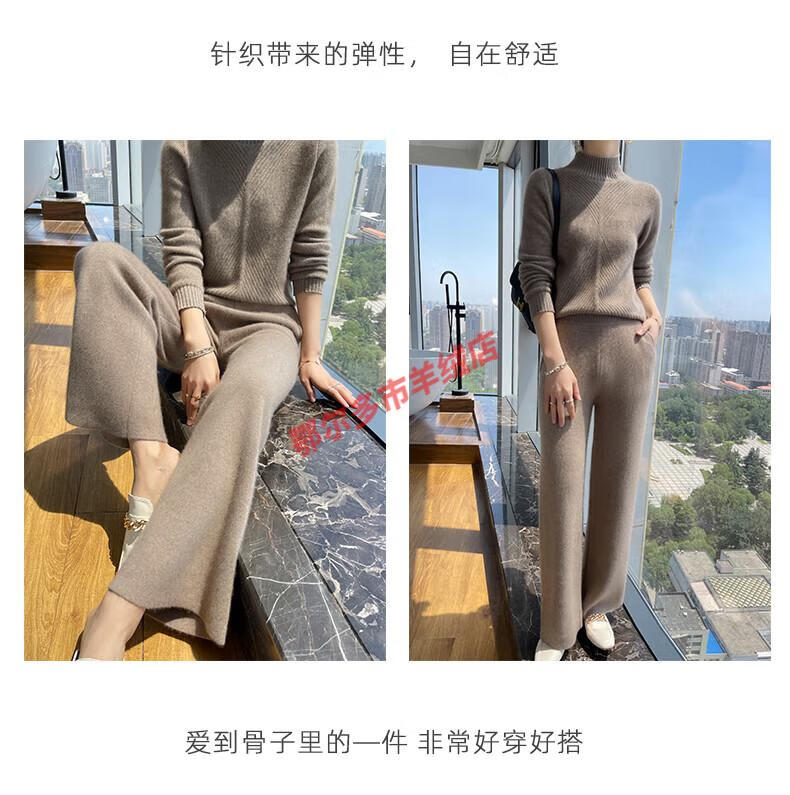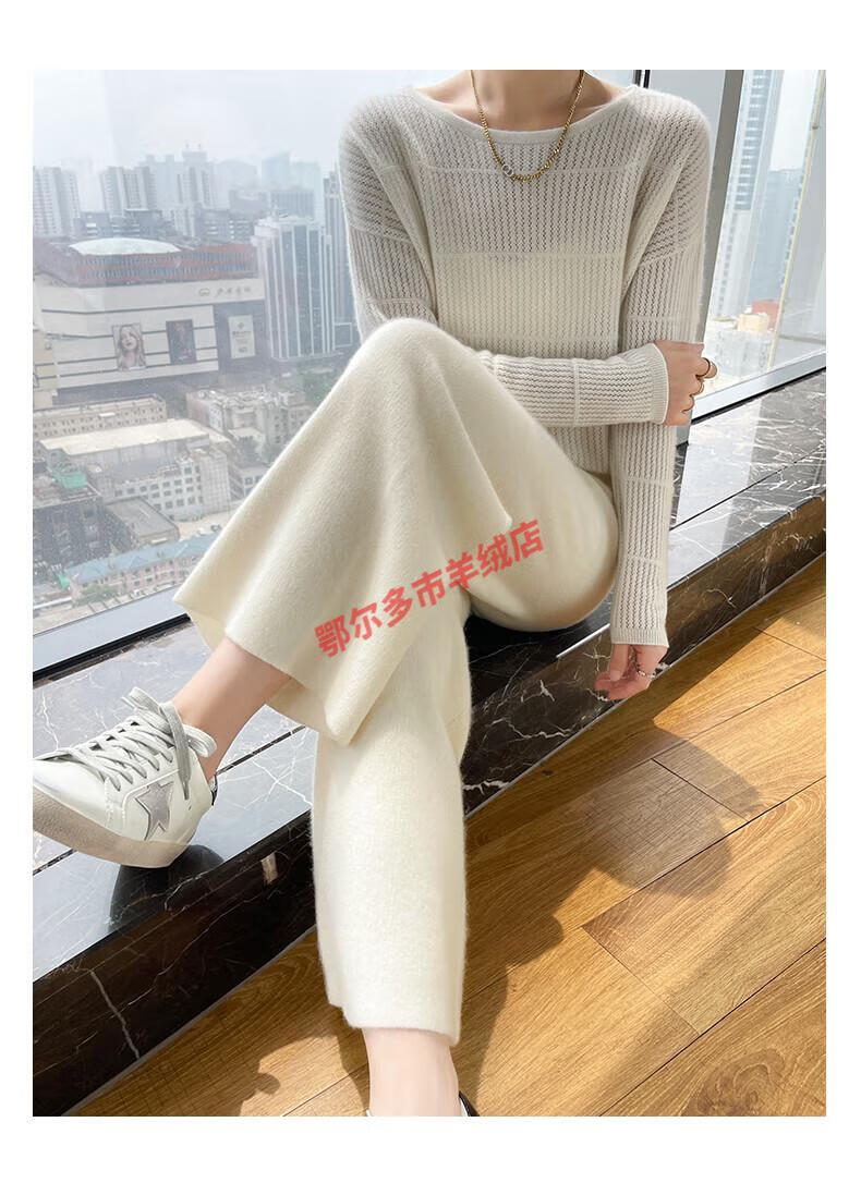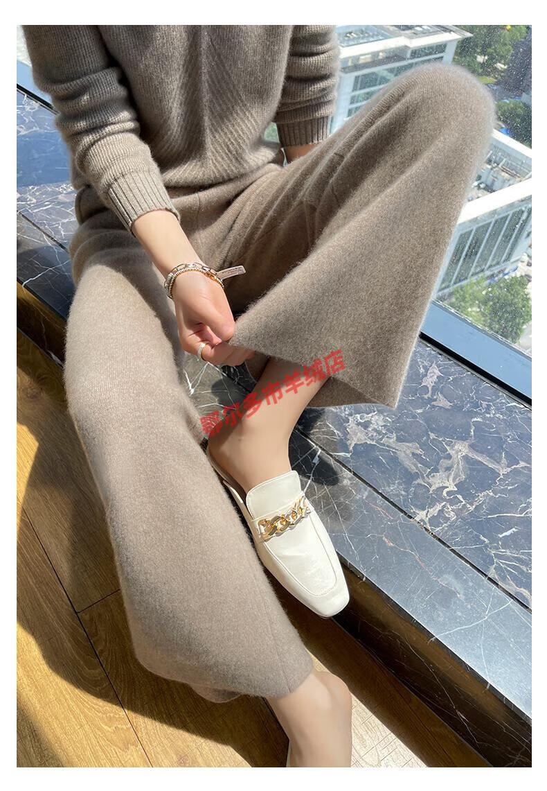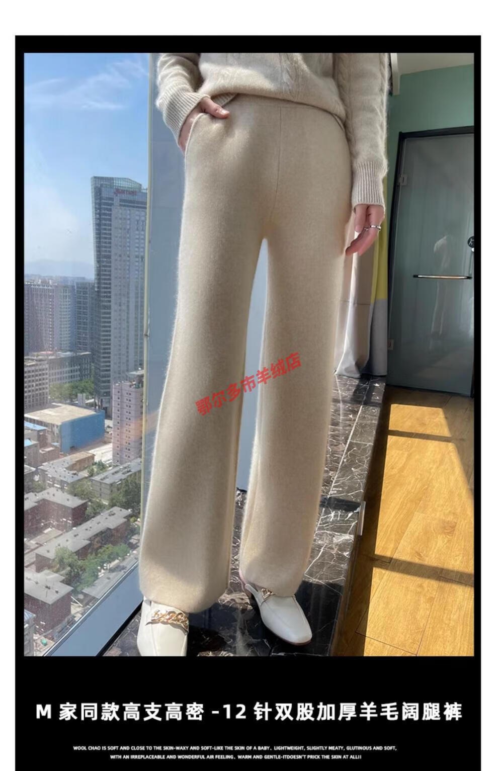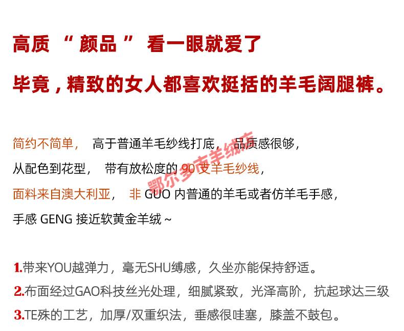 Or grassland Or prolific high-end cashmere temperament wide leg pants women's high waist wool cloud pants loose casual straight outer raw cashmere M