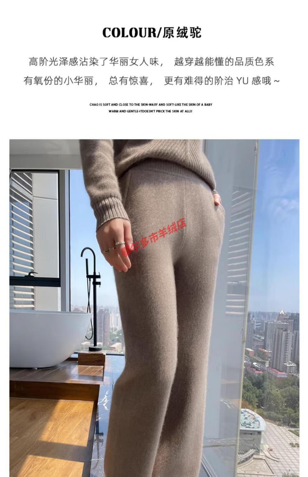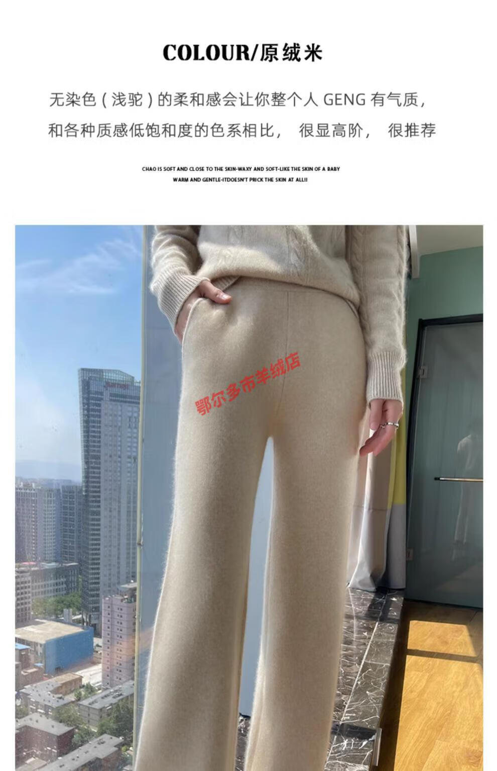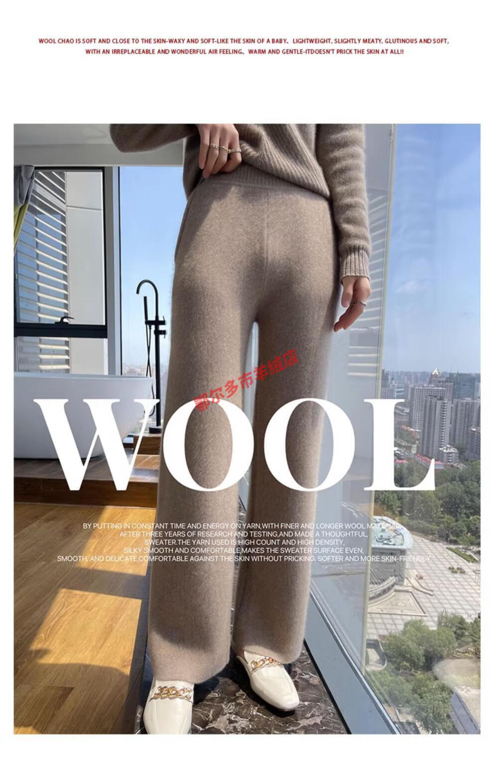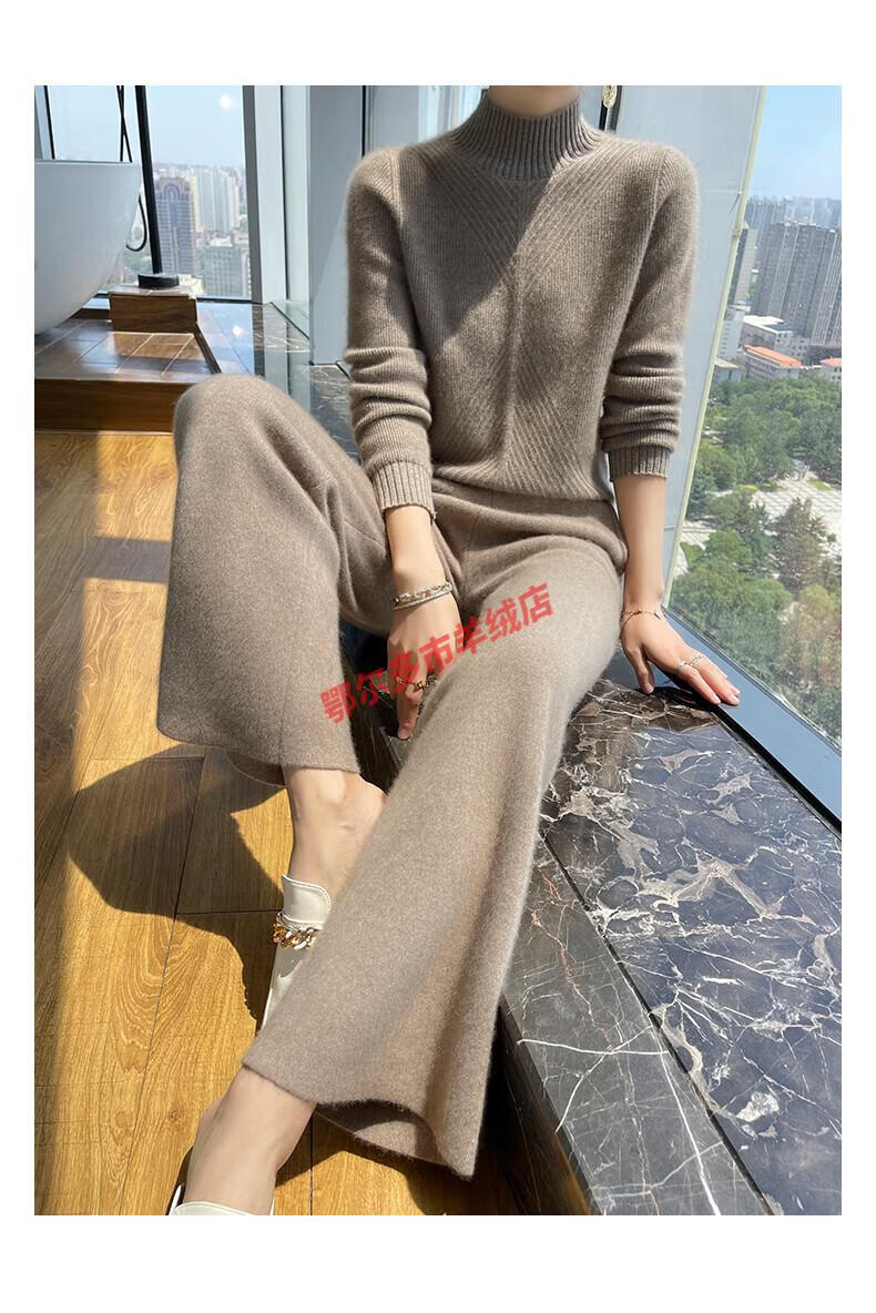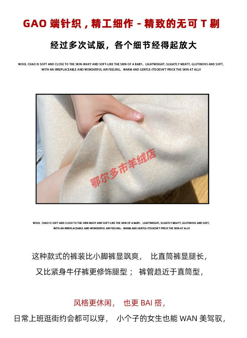 Or grassland Or prolific high-end cashmere temperament wide leg pants women's high waist wool cloud pants loose casual straight outer raw cashmere M