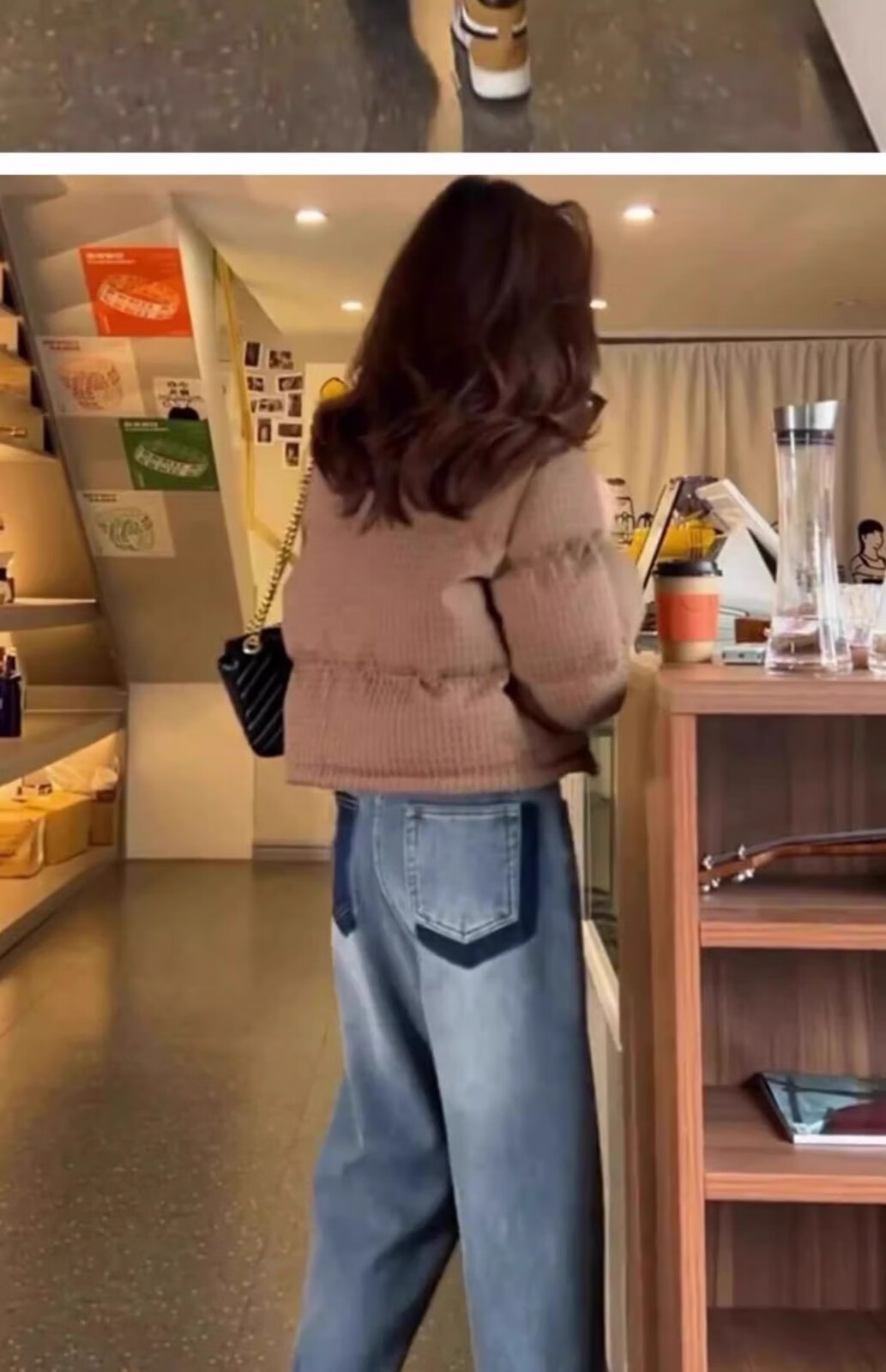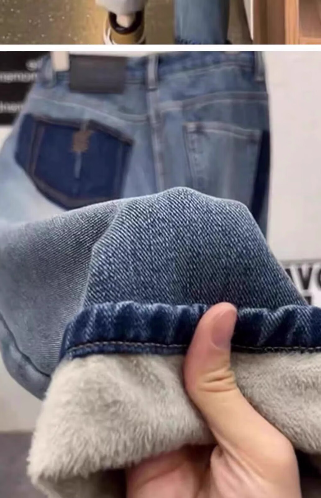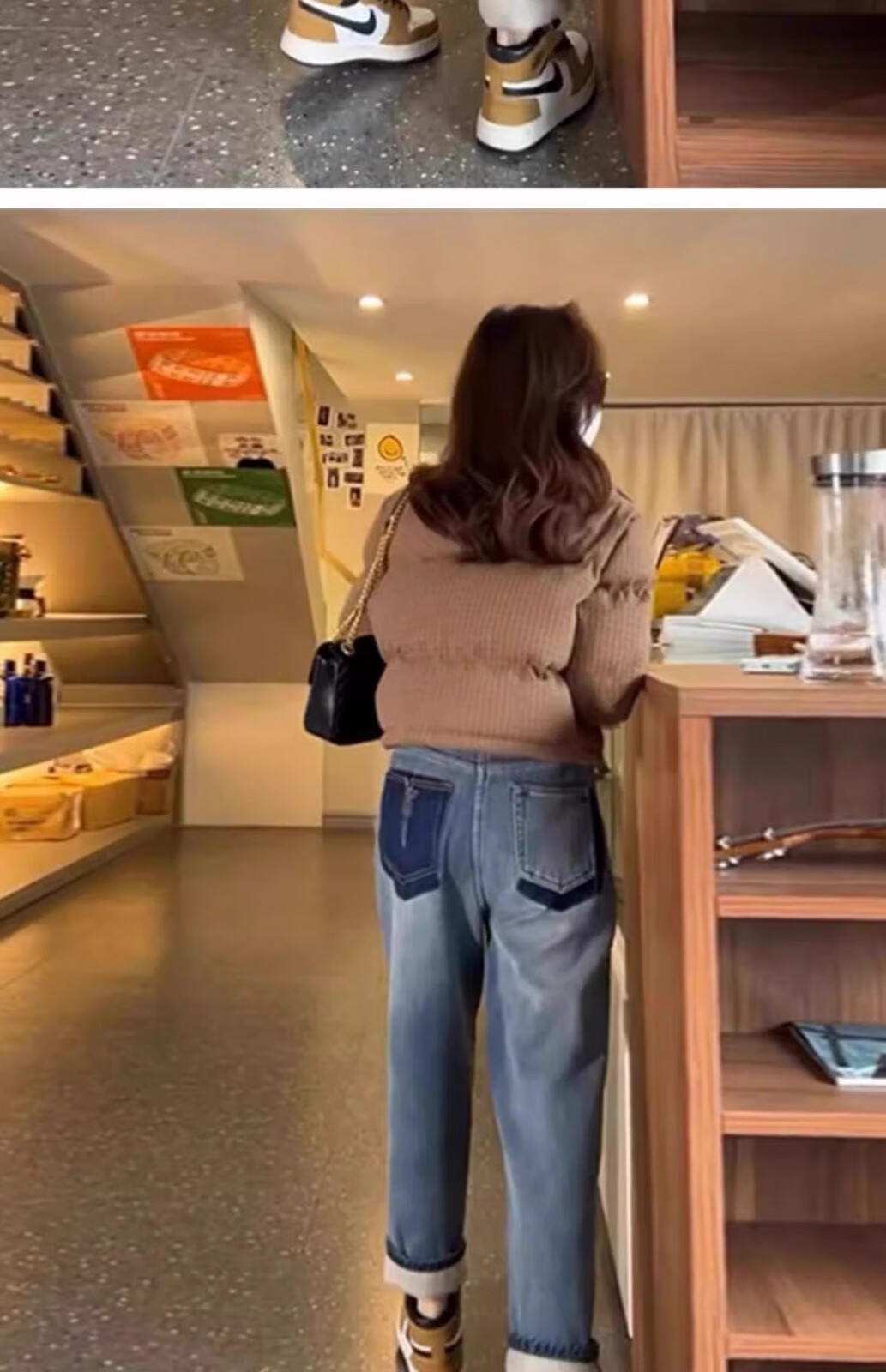 Cotton plus velvet thickened retro straight jeans for women in autumn and winter new high-waisted loose slim harem casual pants retro blue 8668 plus velvet high quality 38 L 105-120Jin Jin is equal to 0.5 kg