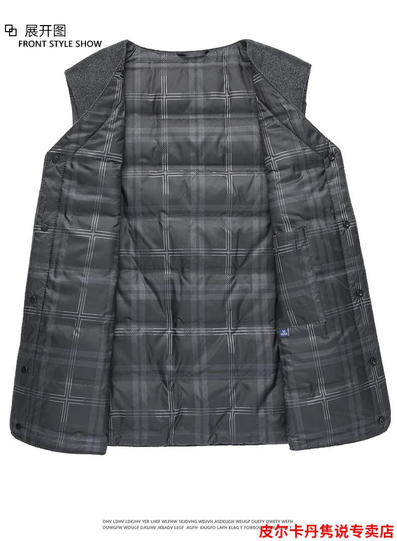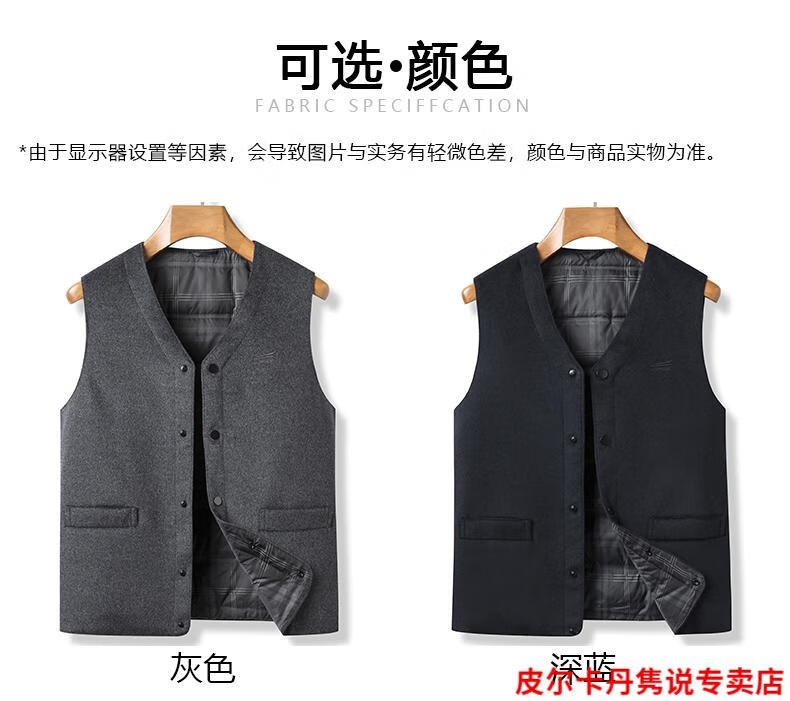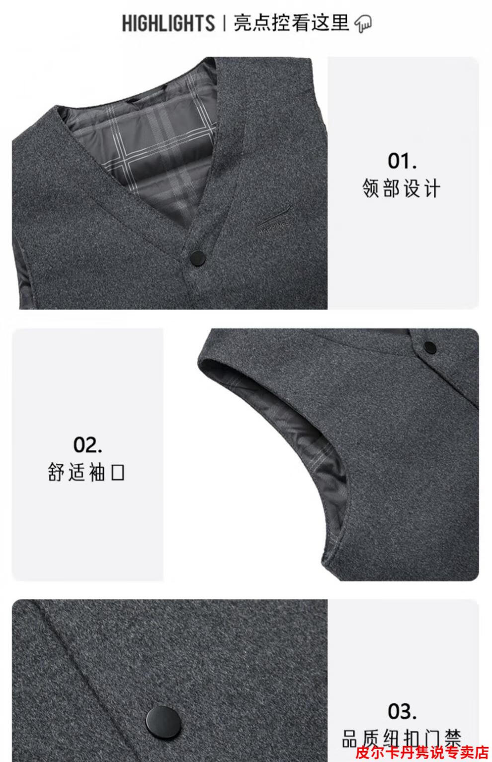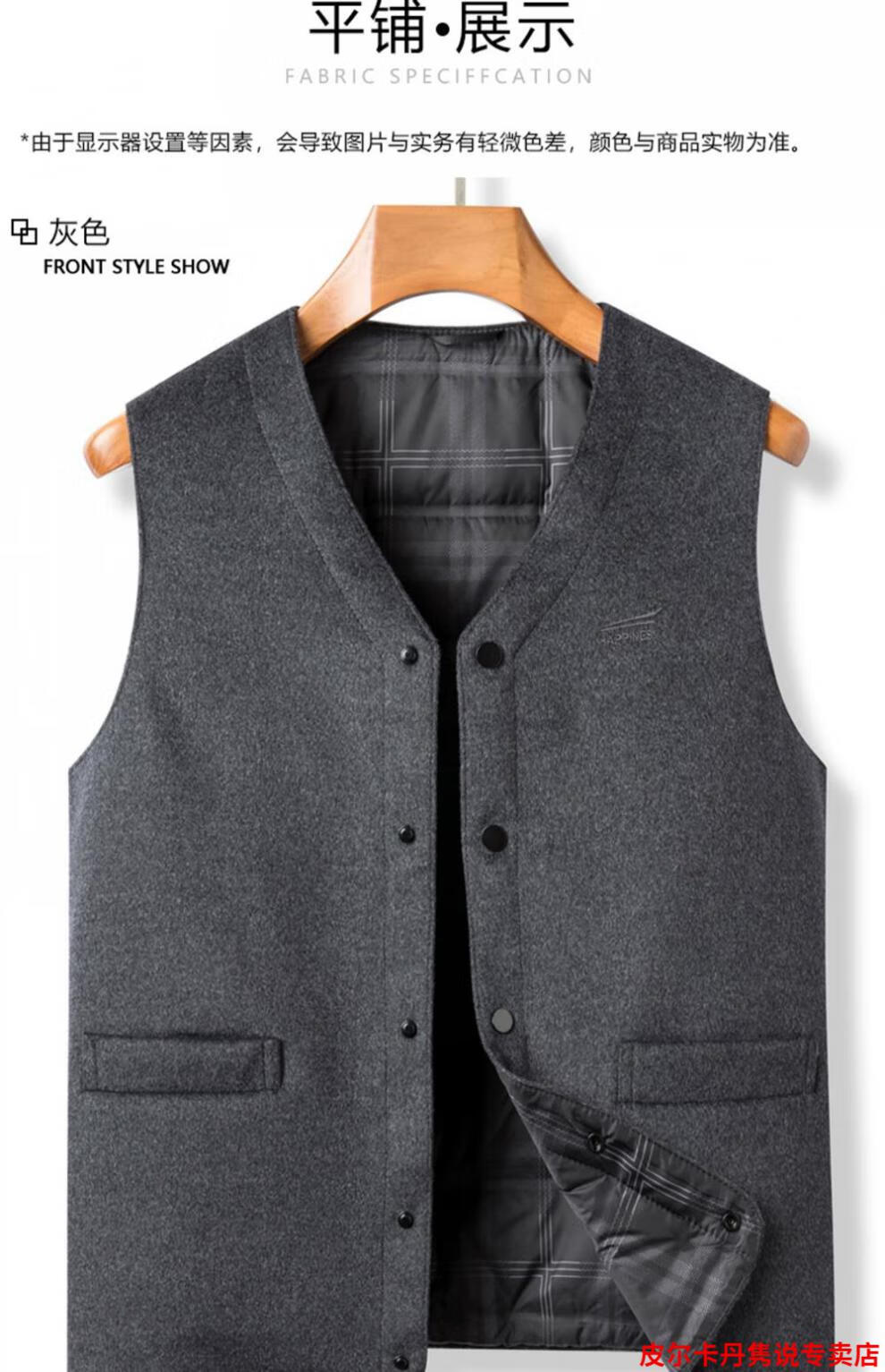 皮尔卡丹(pierre cardin)高端羊绒马甲男秋冬羽绒坎肩白鸭绒加厚马夹爸爸保暖背心羊毛外套 灰色【羊绒羊毛面料90白鸭绒填充 L 175