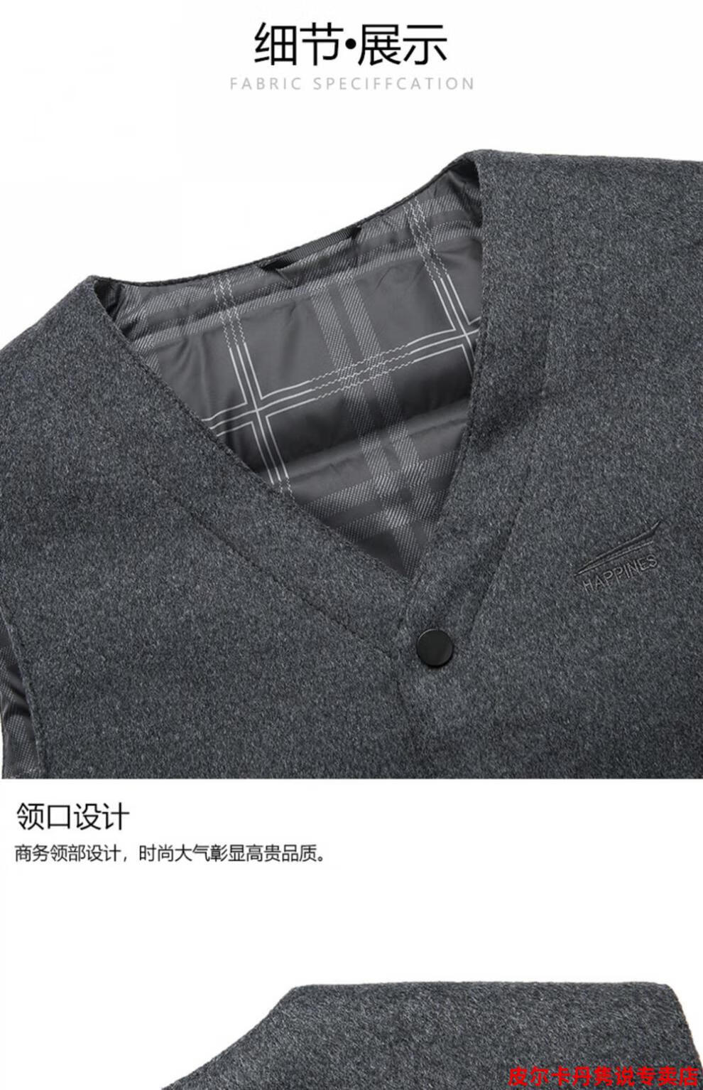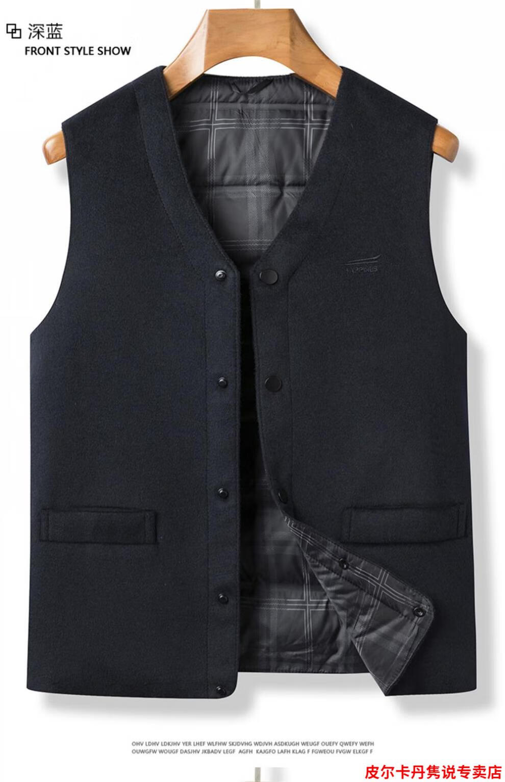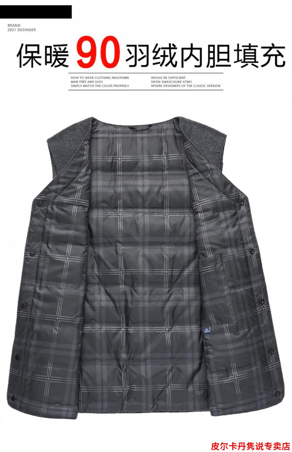 皮尔卡丹(pierre cardin)高端羊绒马甲男秋冬羽绒坎肩白鸭绒加厚马夹爸爸保暖背心羊毛外套 灰色【羊绒羊毛面料90白鸭绒填充 L 175