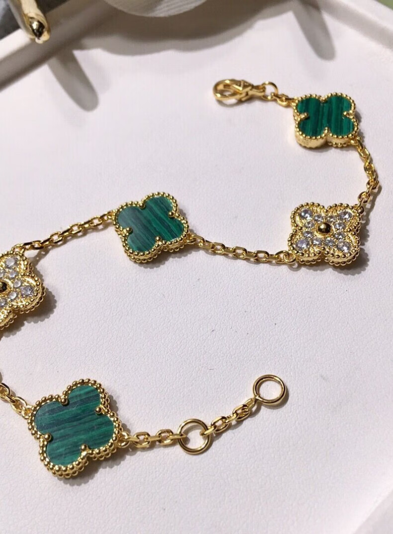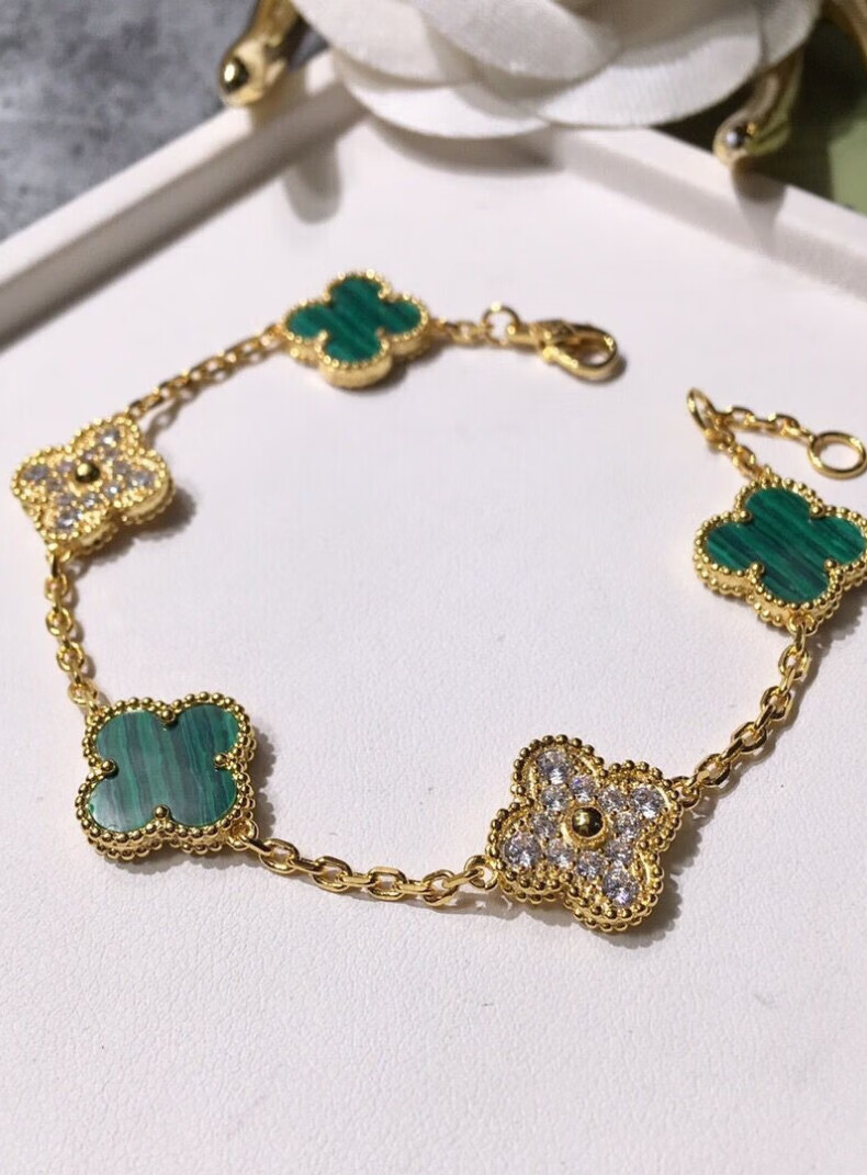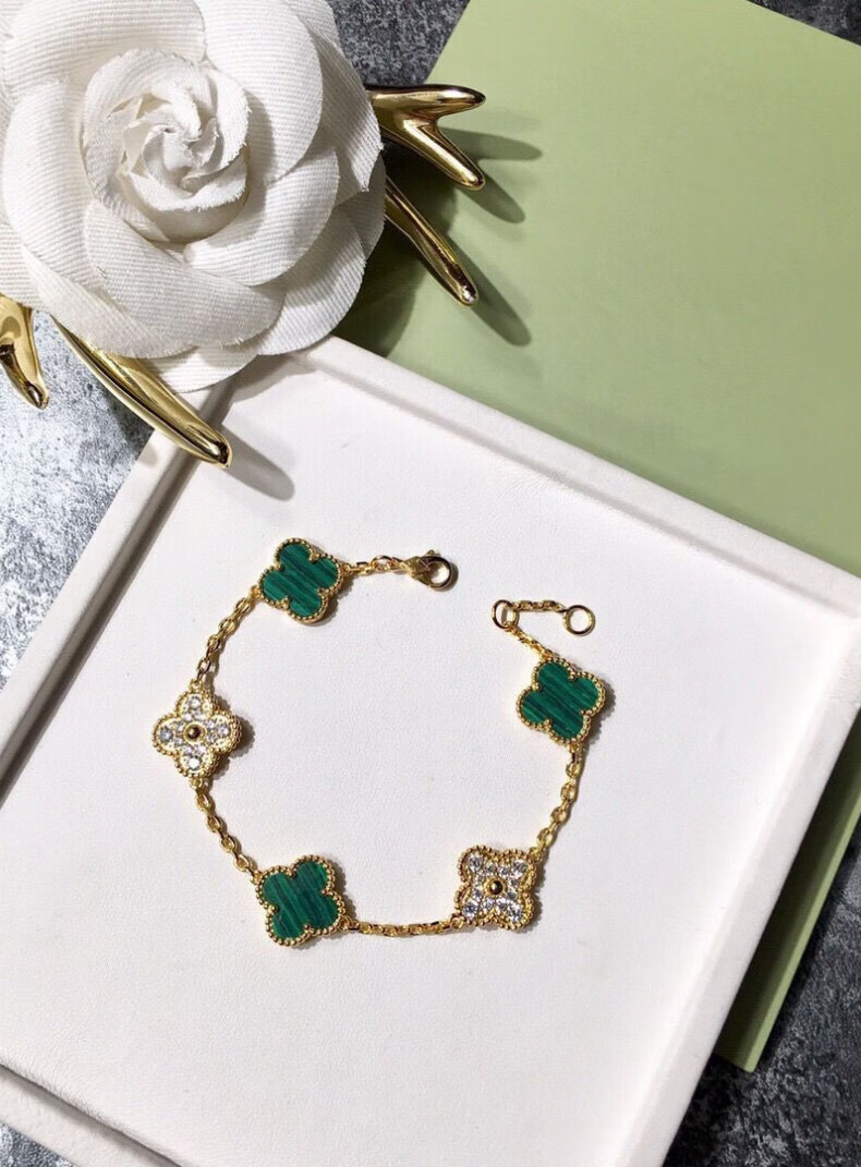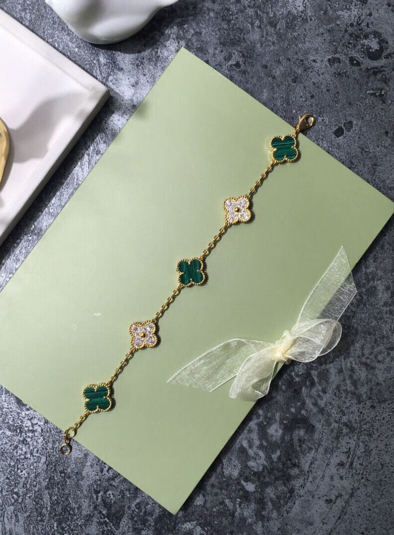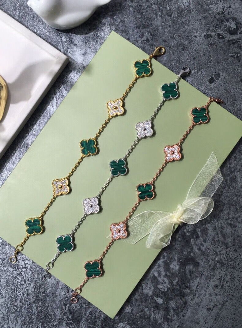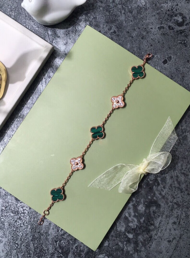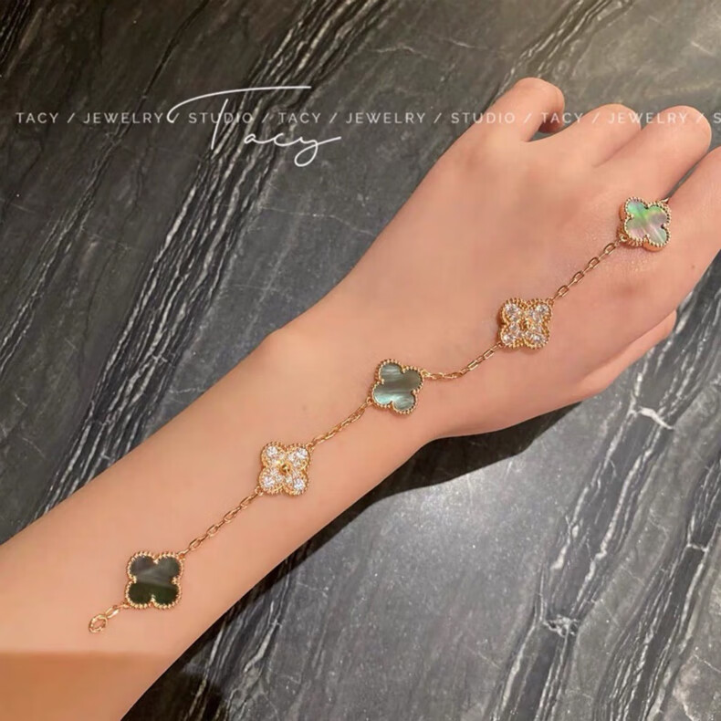 FEACHE light luxury jewelry fashion accessories rose gold four-leaf clover bracelet Chinese Valentine's Day birthday gift for girlfriend and wife classic five-flowered black agate bracelet