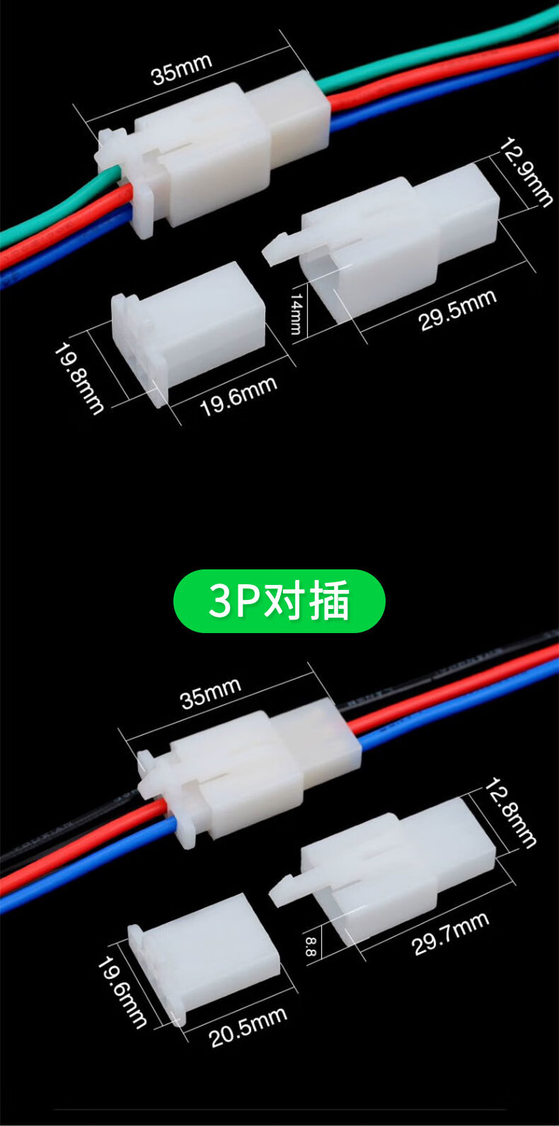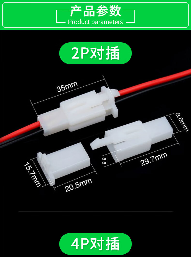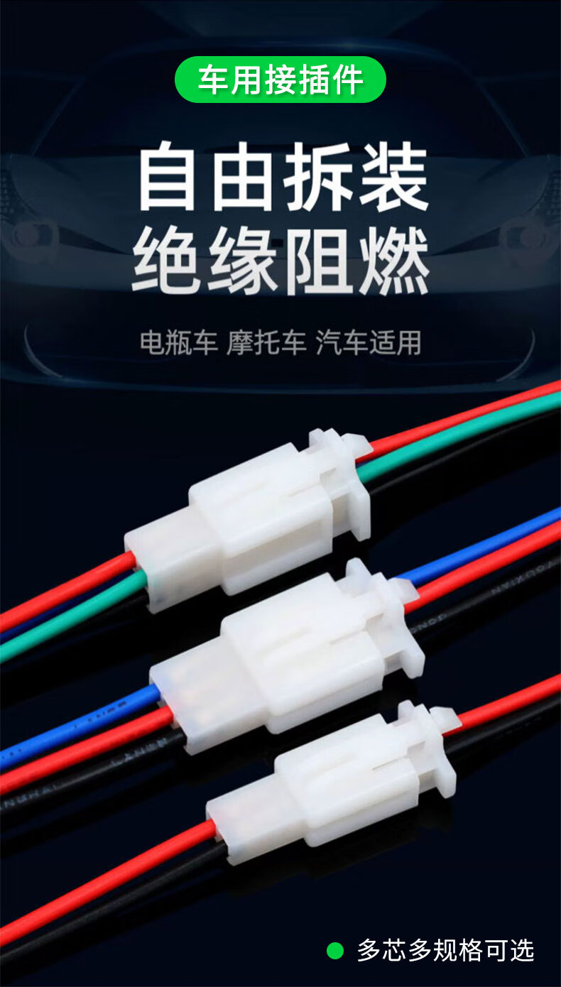 2.8 Automotive connector 2P automotive male and female plastic shell male and female terminal connector butt terminal 2 holes with wire 10 sets 2 core 10 sets (without wire) No Specifications