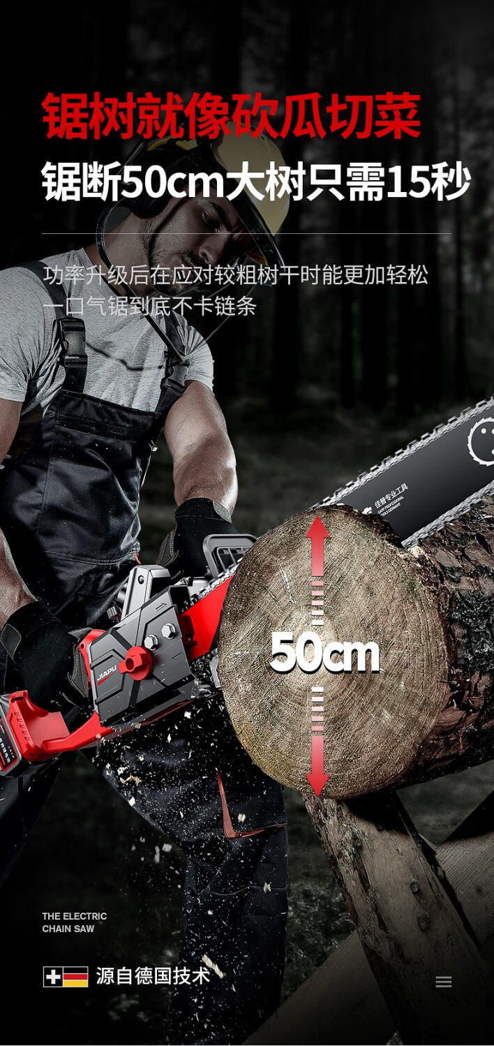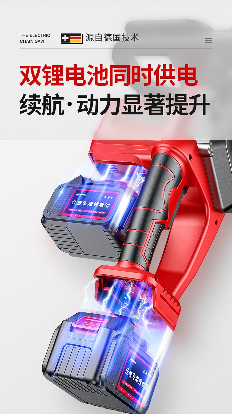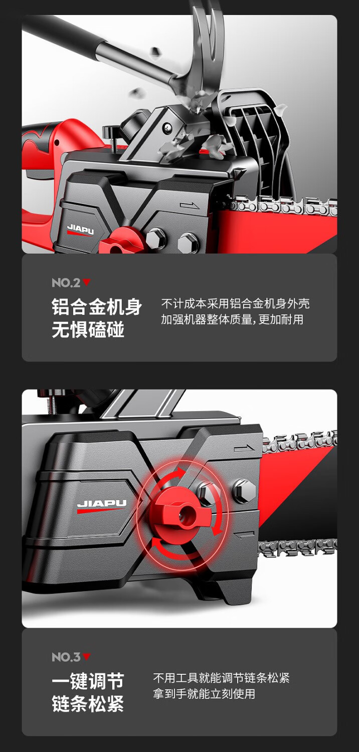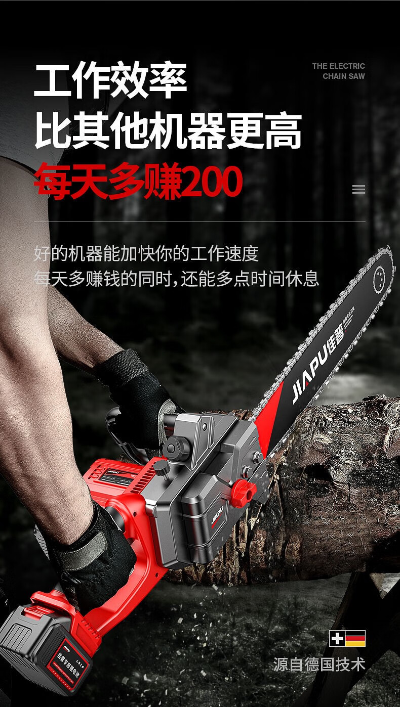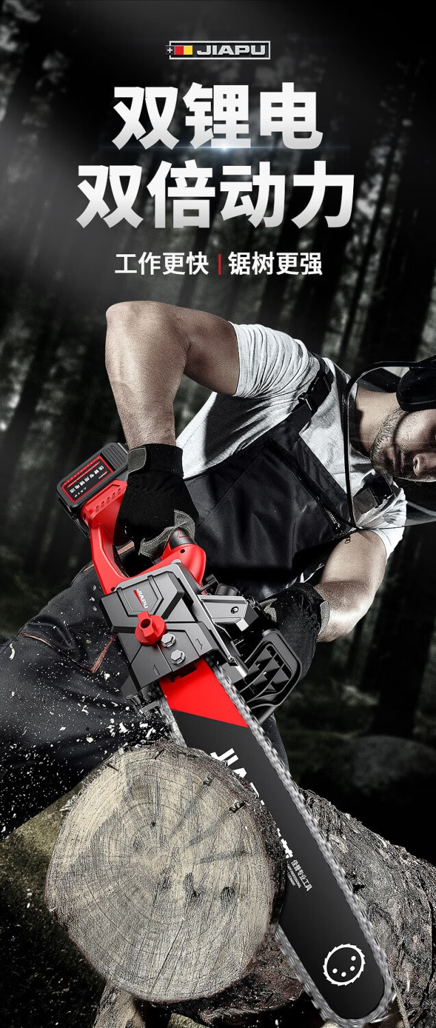 JIAPU rechargeable lithium chainsaw high-power household multi-functional portable electric chain saw outdoor tree felling electric logging saw 16-inch brushless supreme 299900H two batteries four chains International quality inspection guarantee Order today and get 1 more