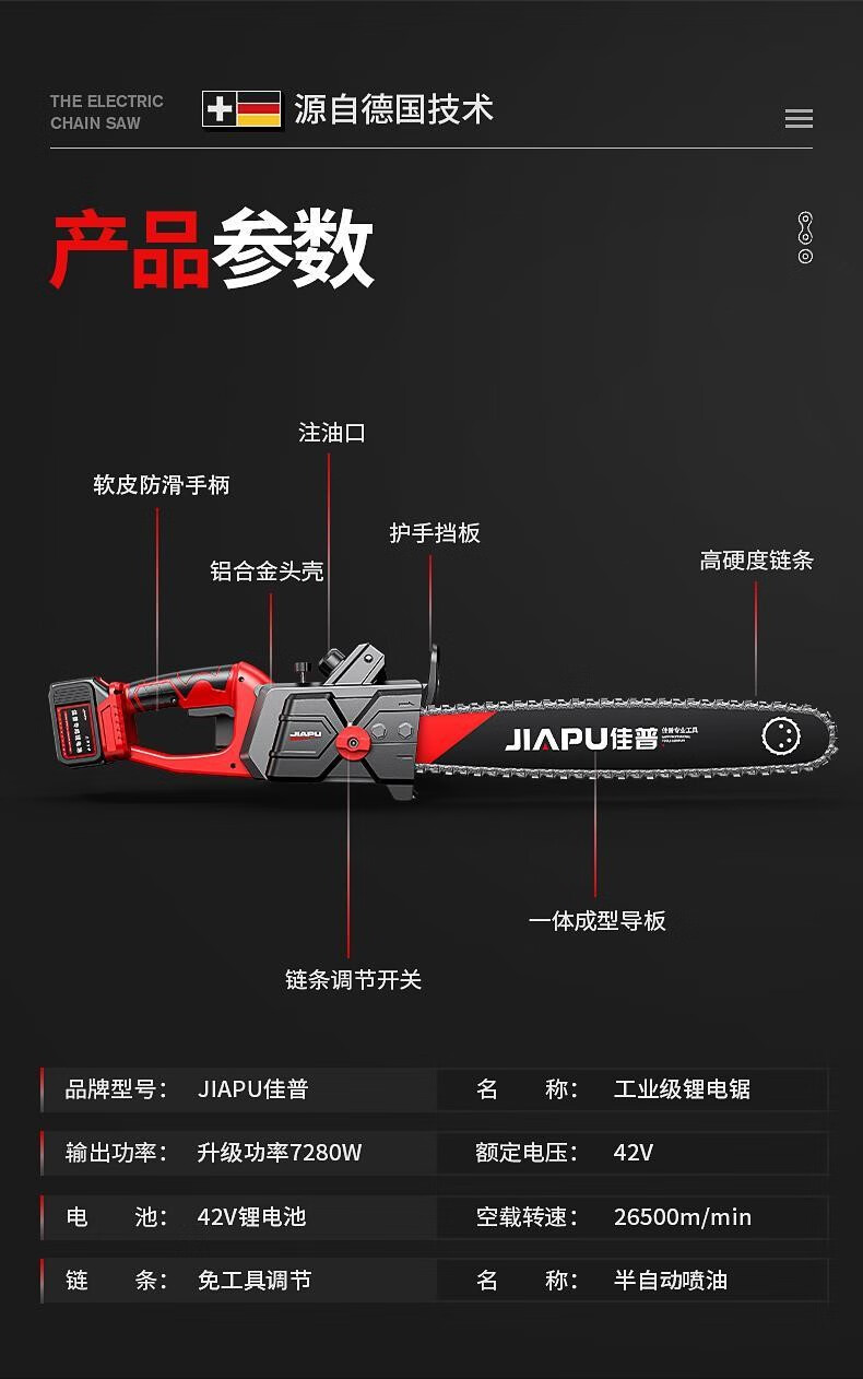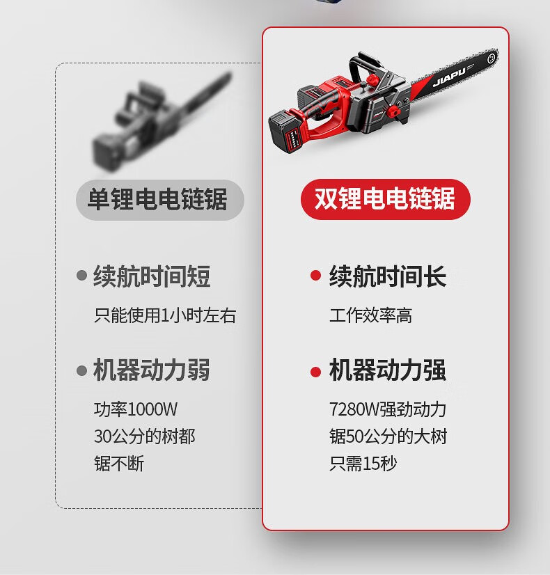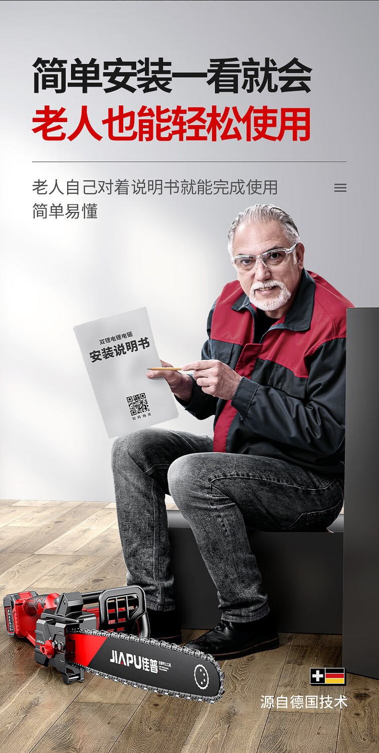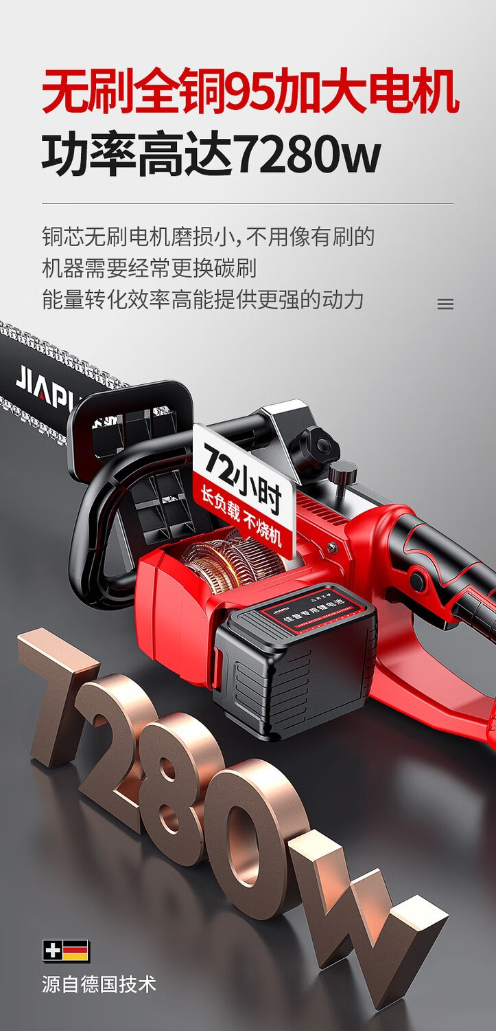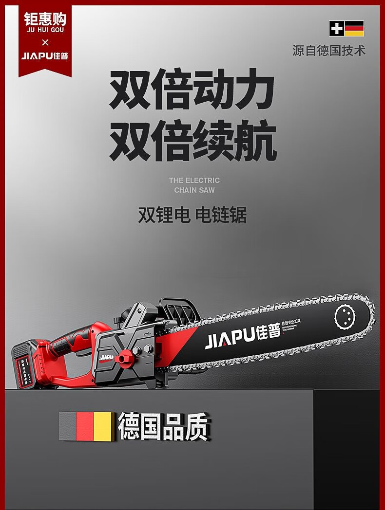 JIAPU rechargeable lithium chainsaw high-power household multi-functional portable electric chain saw outdoor tree felling electric logging saw 16-inch brushless supreme 299900H two batteries four chains International quality inspection guarantee Order today and get 1 more