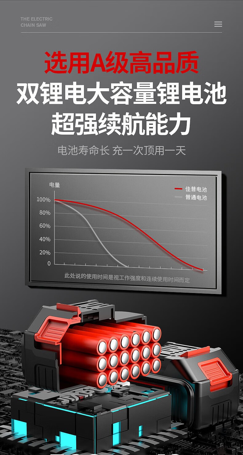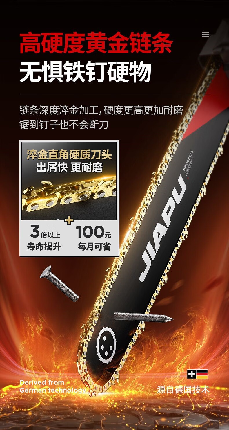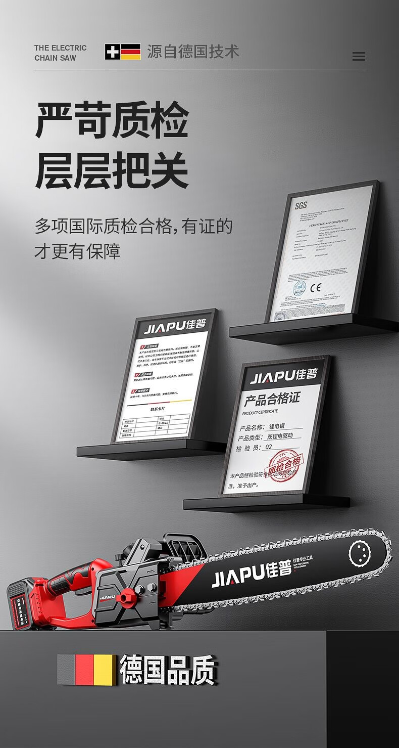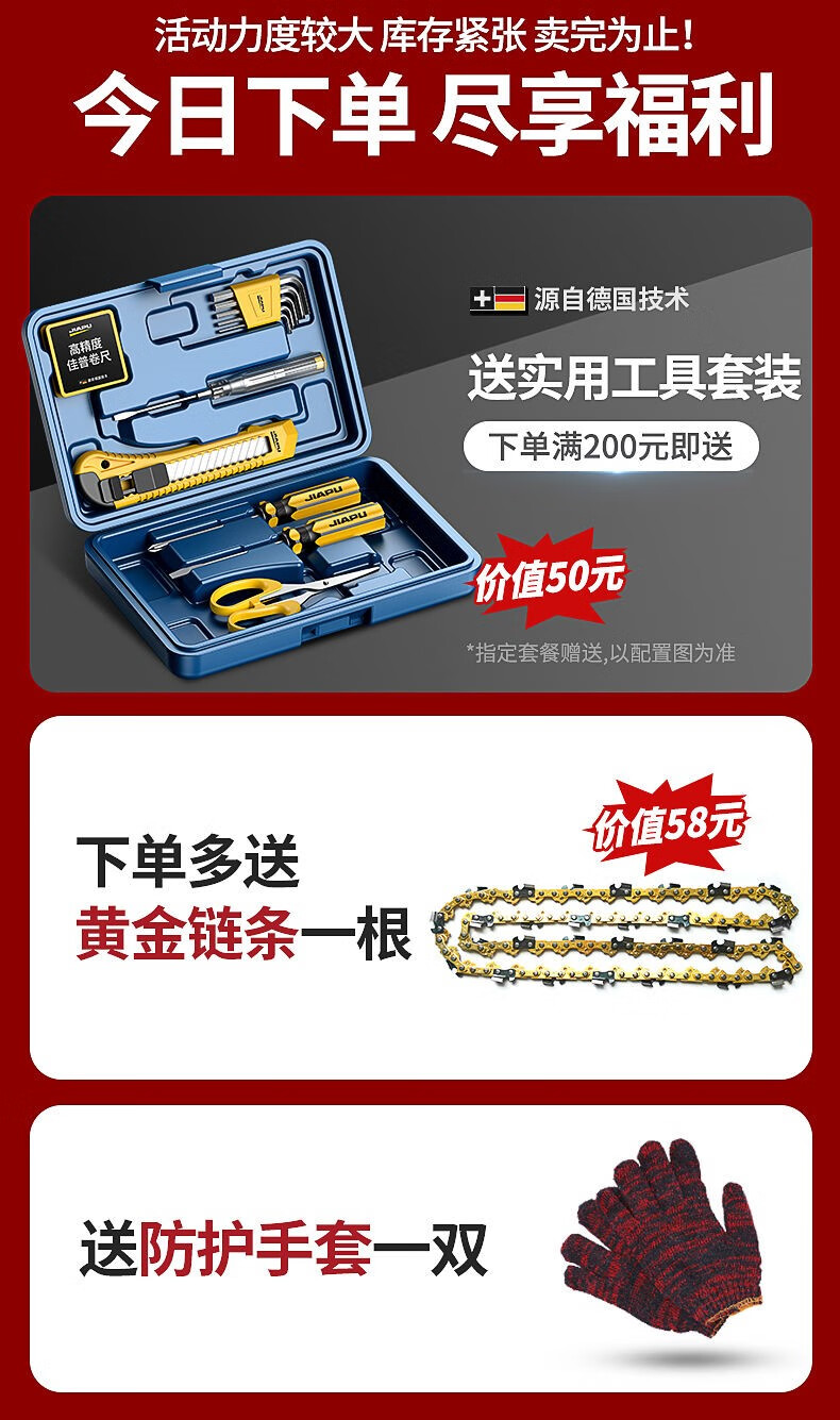 JIAPU rechargeable lithium chainsaw high-power household multi-functional portable electric chain saw outdoor tree felling electric logging saw 16-inch brushless supreme 299900H two batteries four chains International quality inspection guarantee Order today and get 1 more