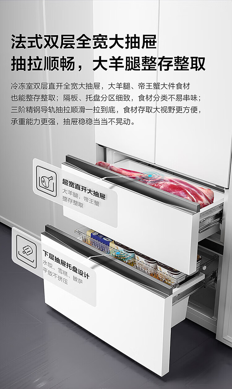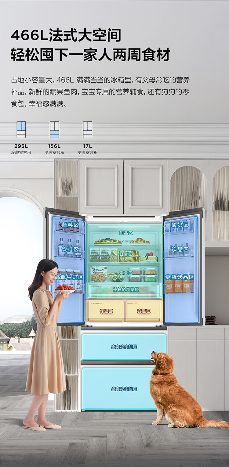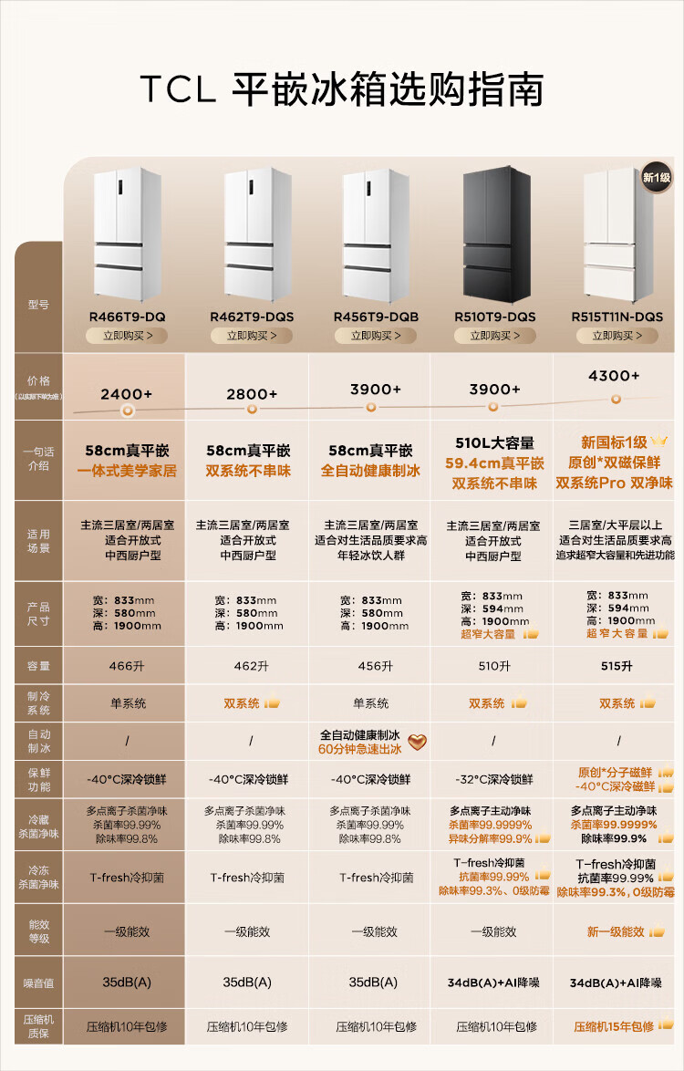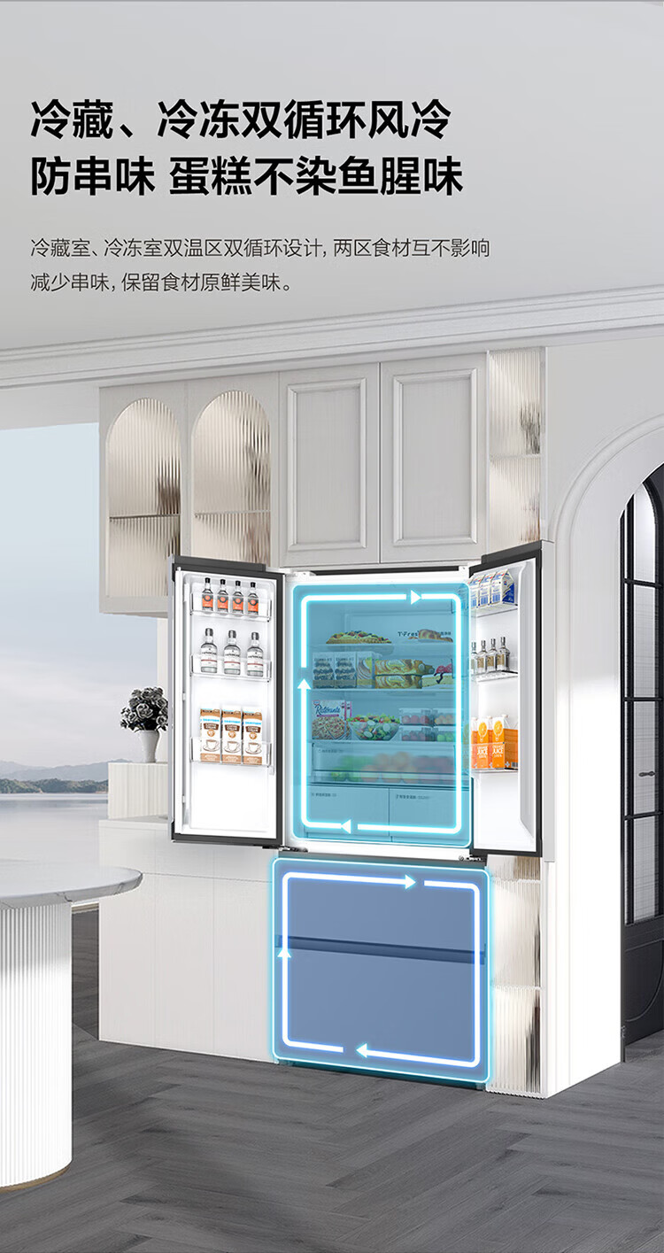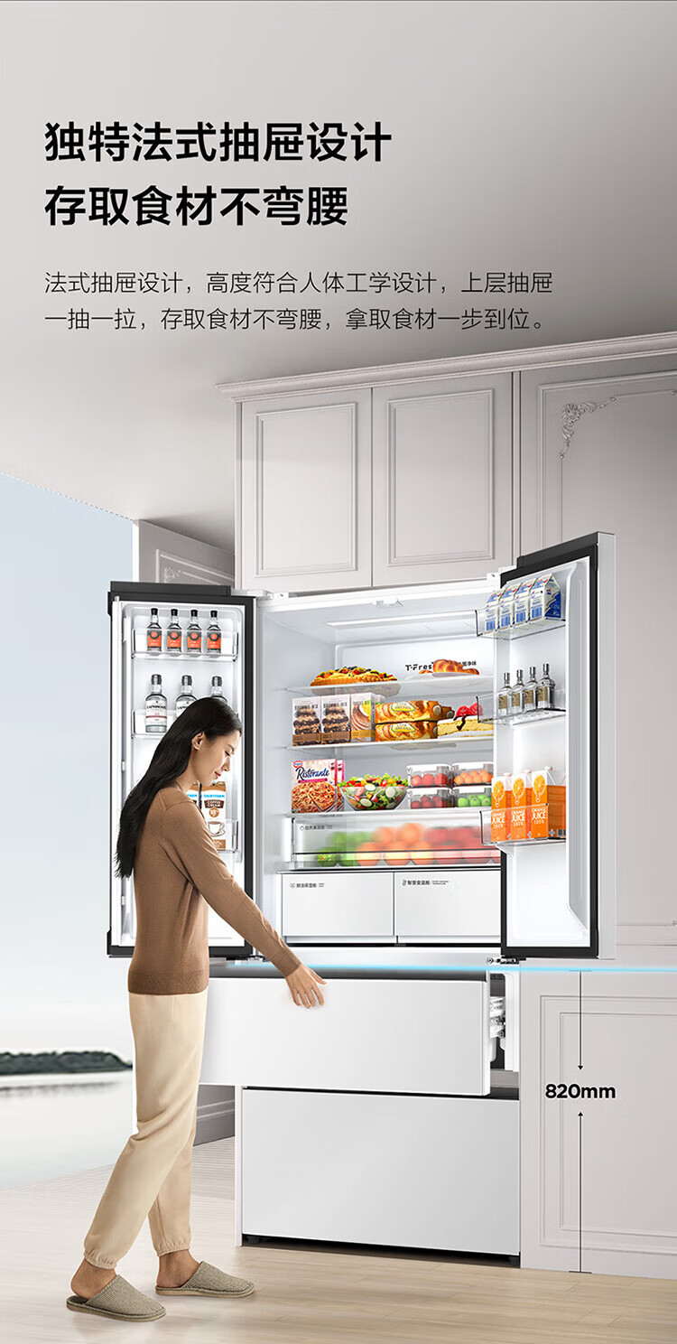 TCL Big Unbounded 466-liter T9 French multi-door four-door 58cm ultra-thin zero-embedded bottom cooling dual-purity refrigerator first-class energy efficiency large-capacity air-cooled household refrigerator R466T9-DQ Rhythm White