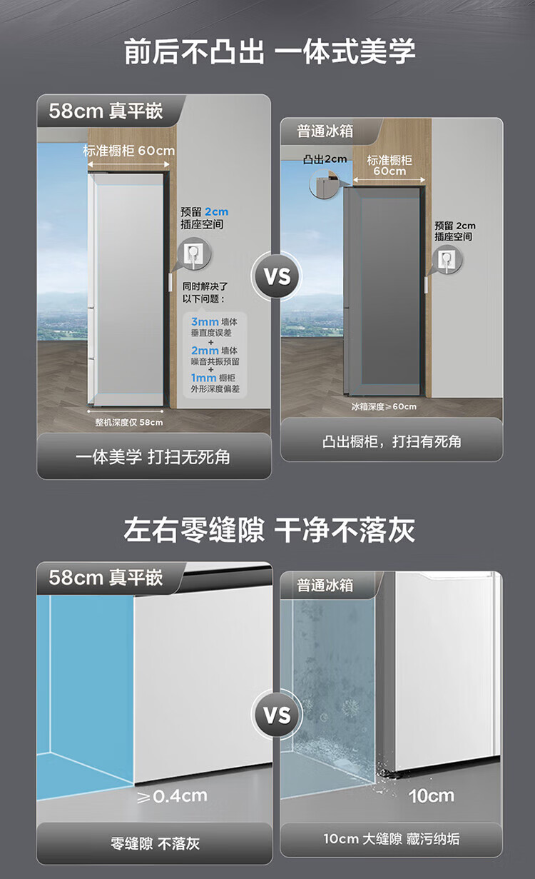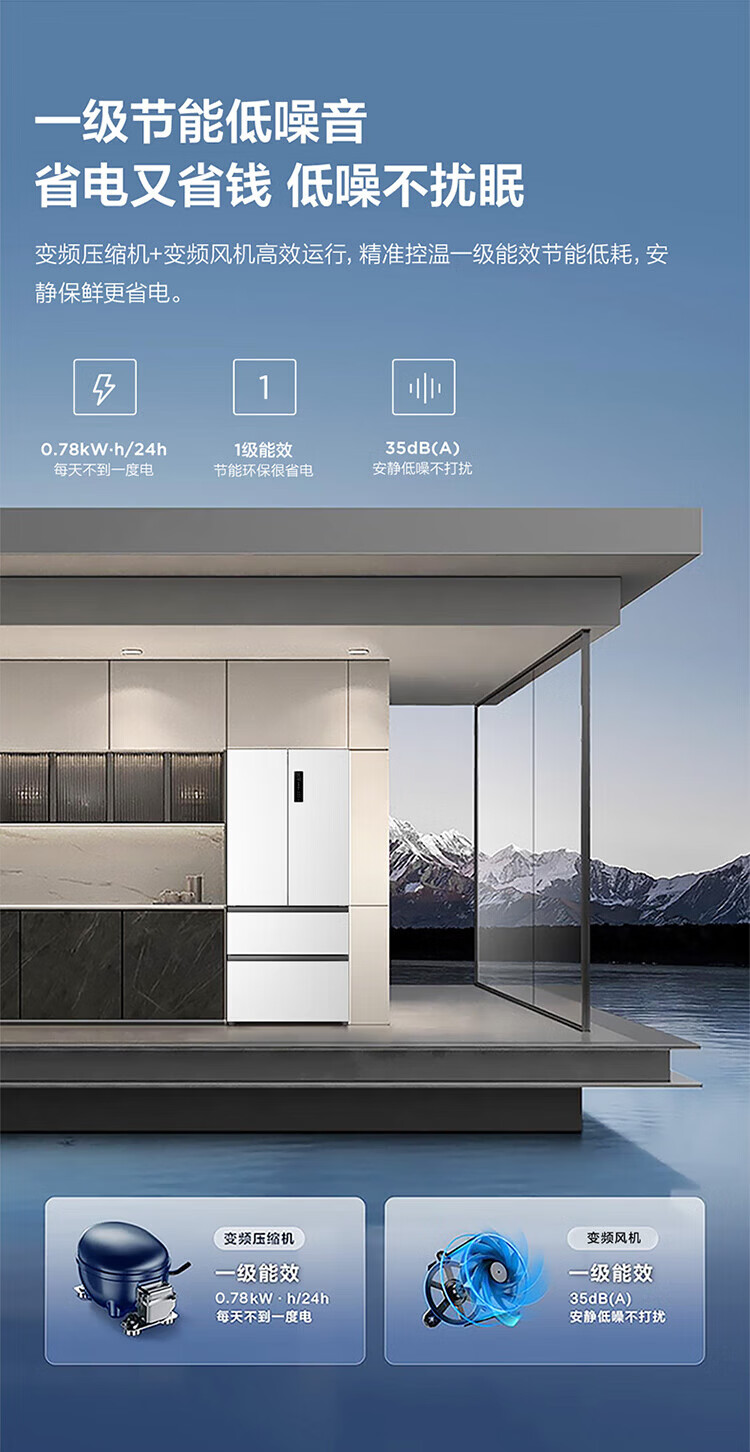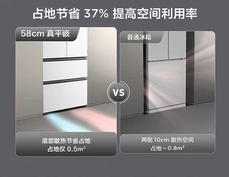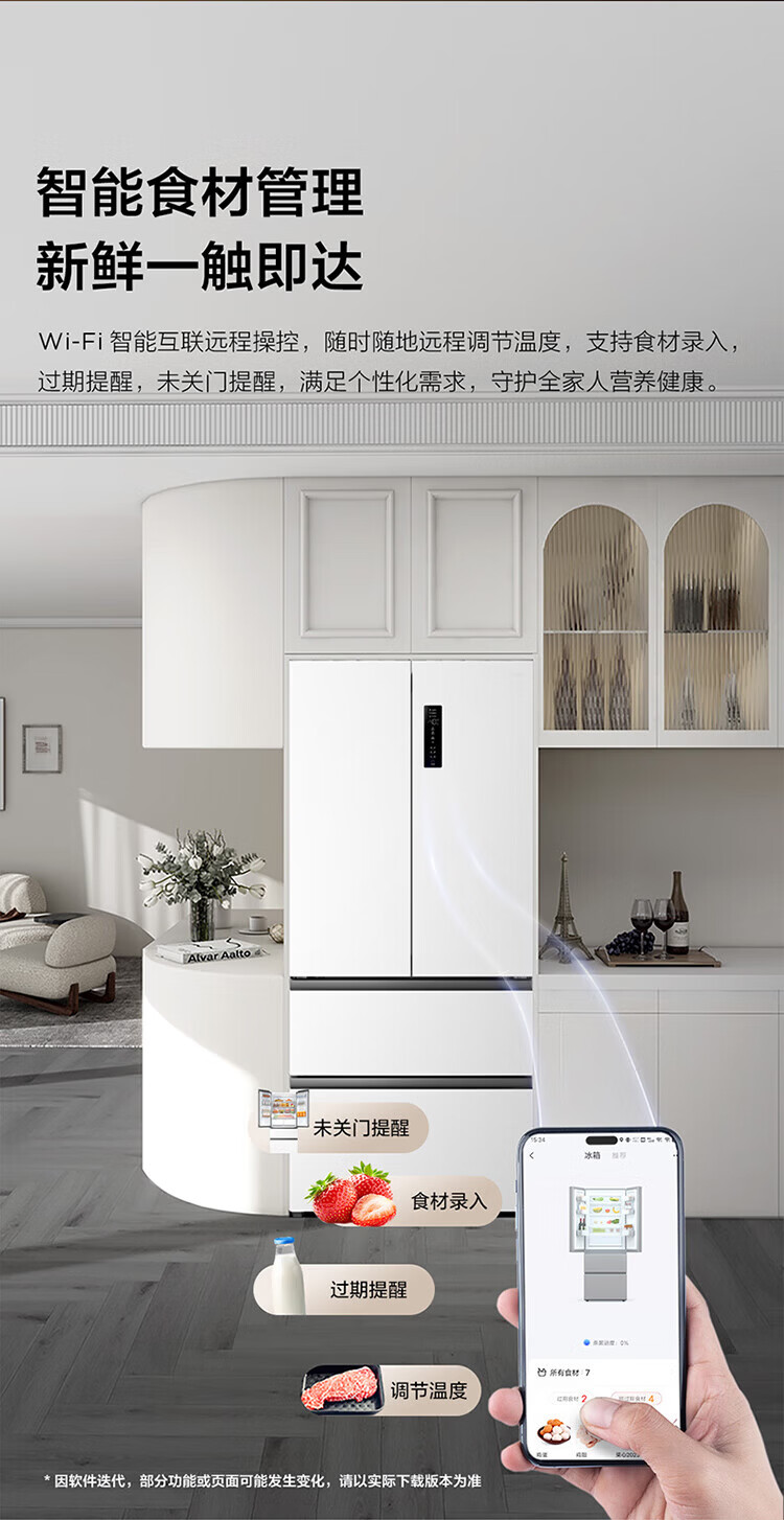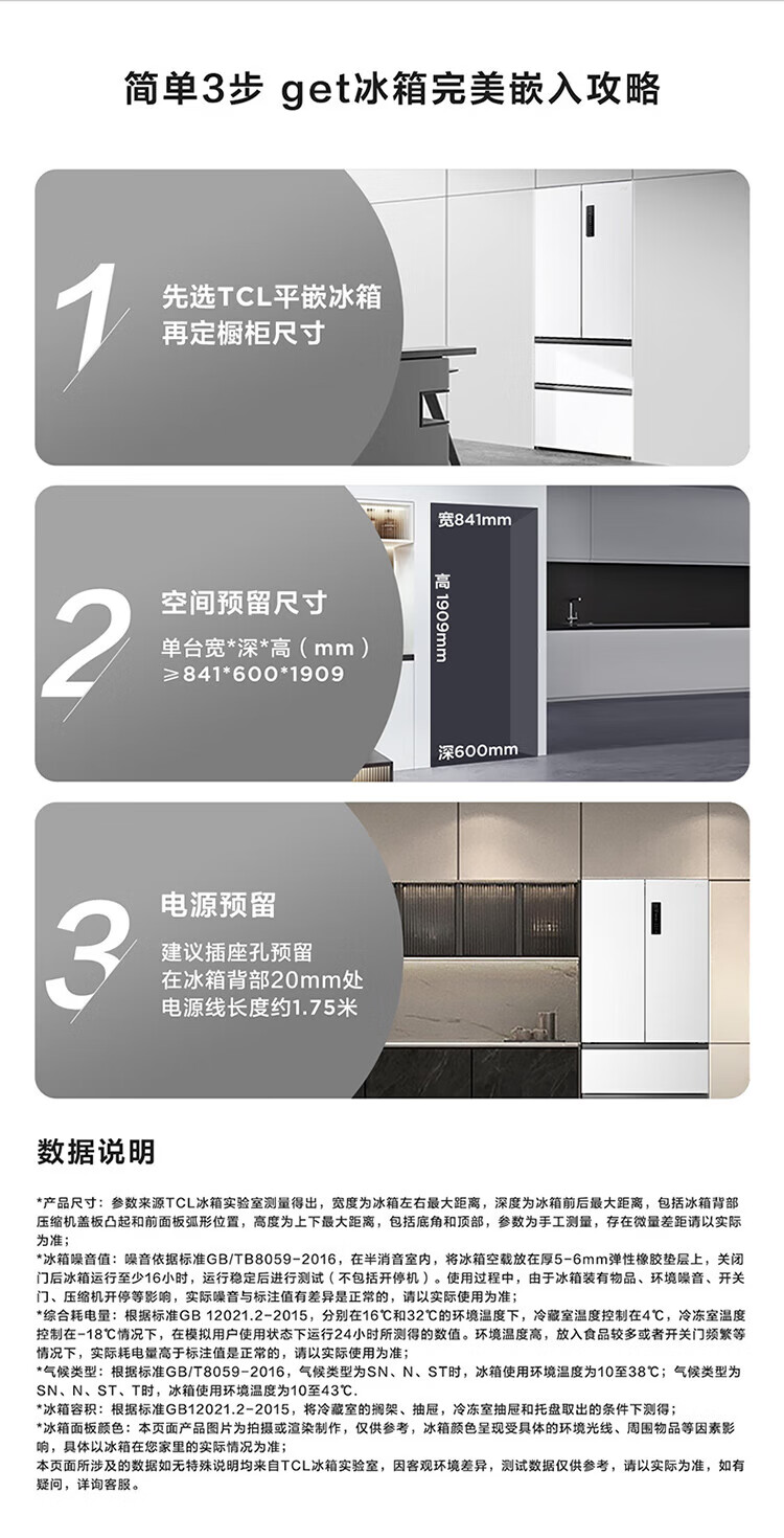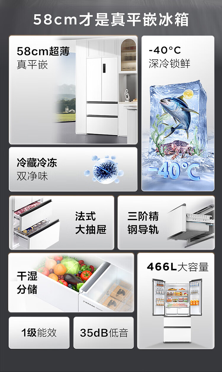 TCL Big Unbounded 466-liter T9 French multi-door four-door 58cm ultra-thin zero-embedded bottom cooling dual-purity refrigerator first-class energy efficiency large-capacity air-cooled household refrigerator R466T9-DQ Rhythm White