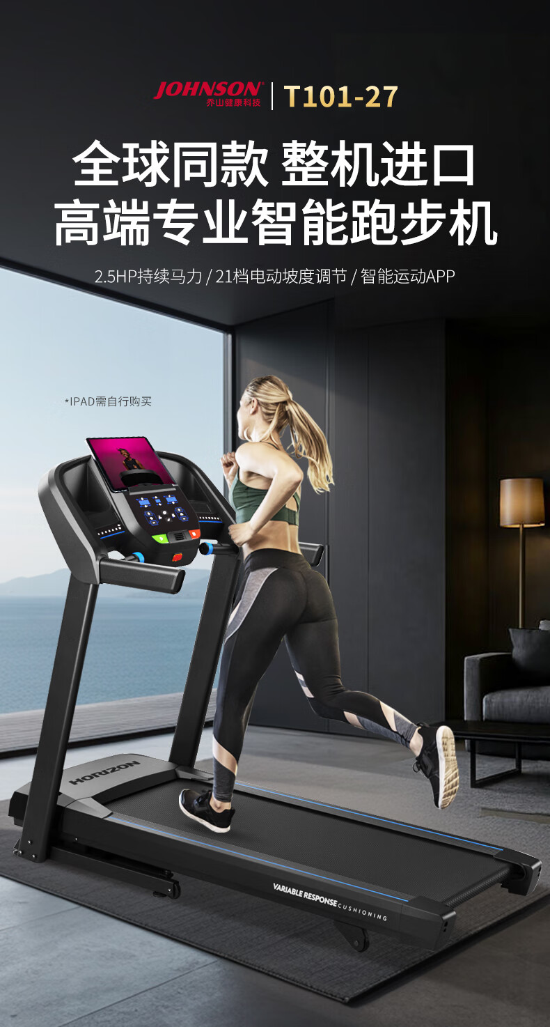 JOHNSON home-use treadmill, shock-absorbing knee pads, foldable walking machine, sports weight loss and fat-burning fitness equipment with adjustable slope. Store first recommendation, comprehensive performance_T101_Horizon