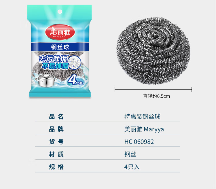 Meliya steel wire ball brush kitchen dishwashing to remove oil stains cleaning iron wire ball steel wire brush pot cleaning ball metal cleaning ball 1 pack 4 pieces
