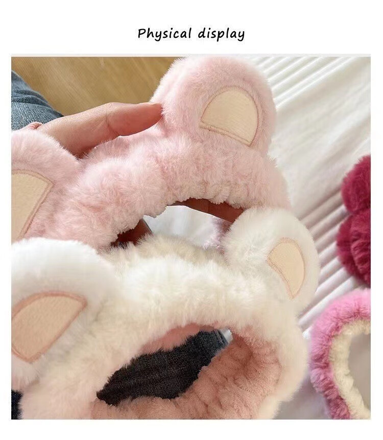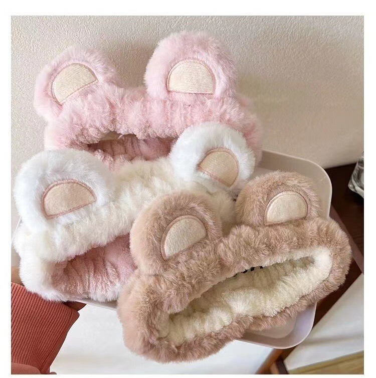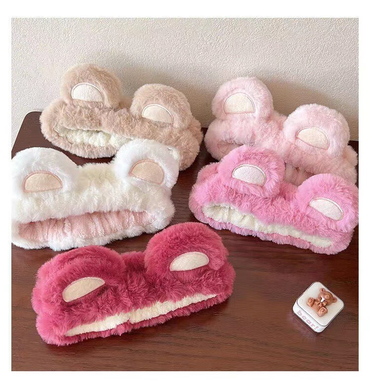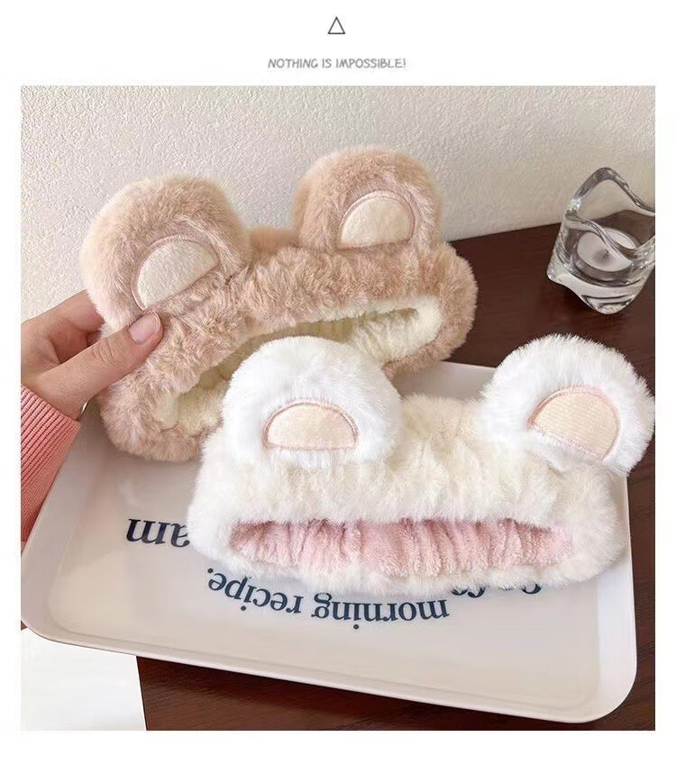 Saint Xian Face Wash Headband Headband Couple's Special Mask Headband 2025 New Headwear Winter Bow Cute Headband (Milk White + Coffee Color) Bear Ear Headband 2 Pack