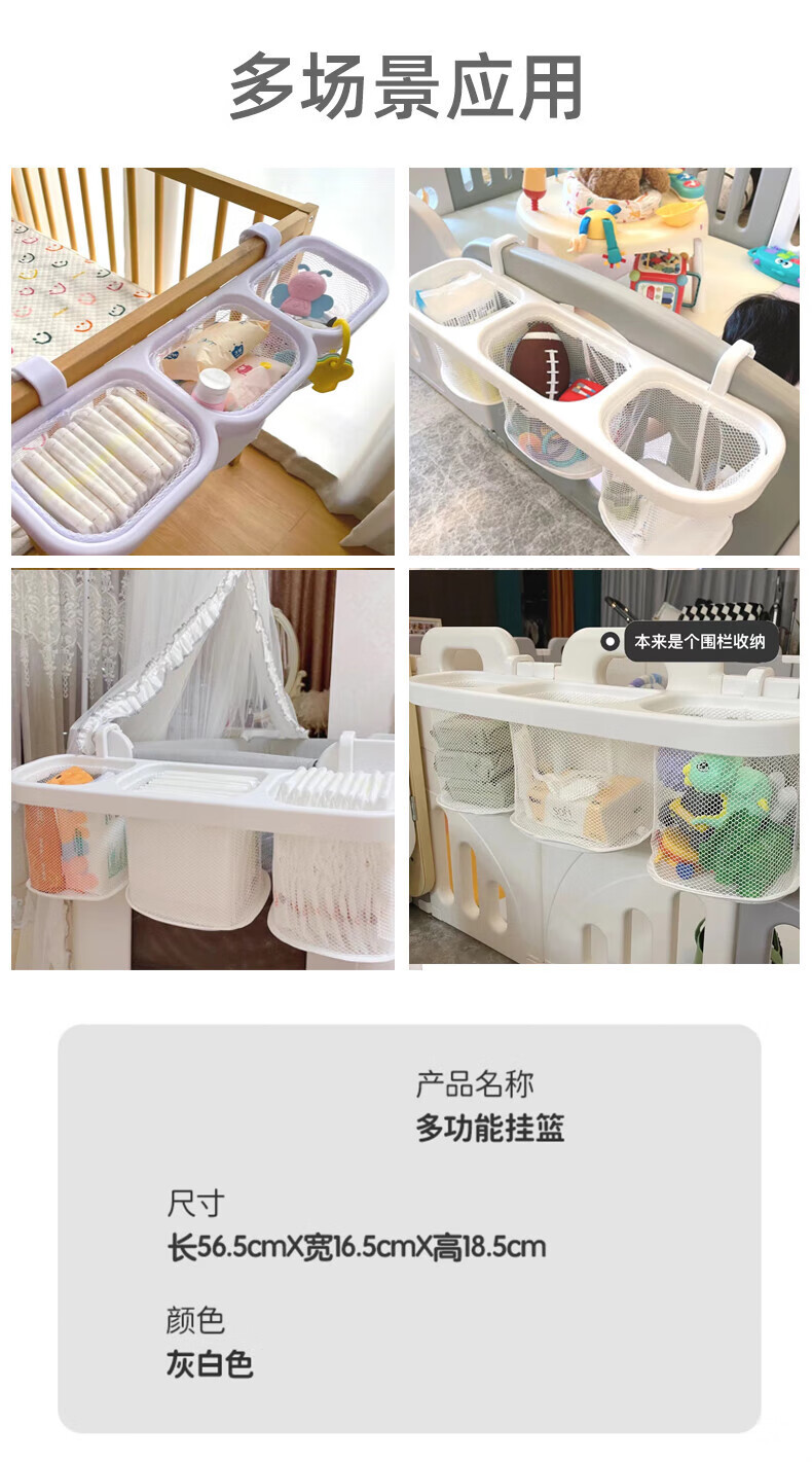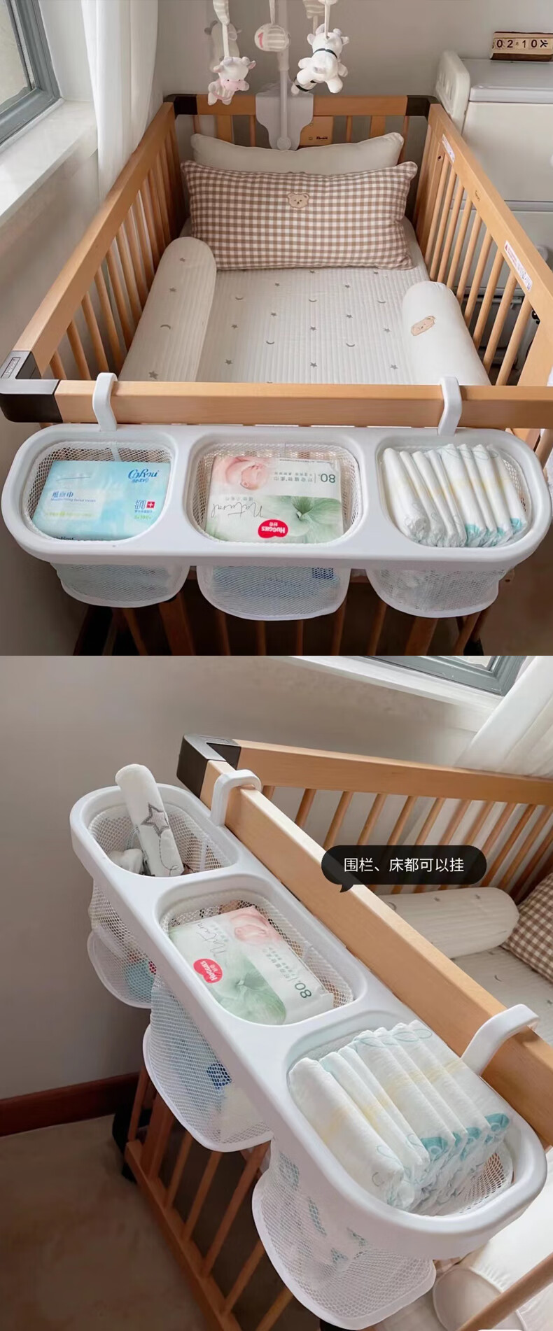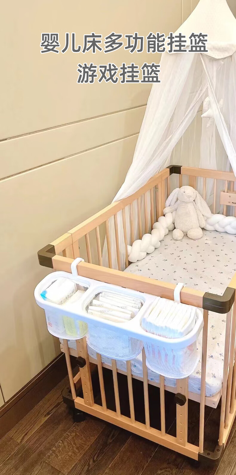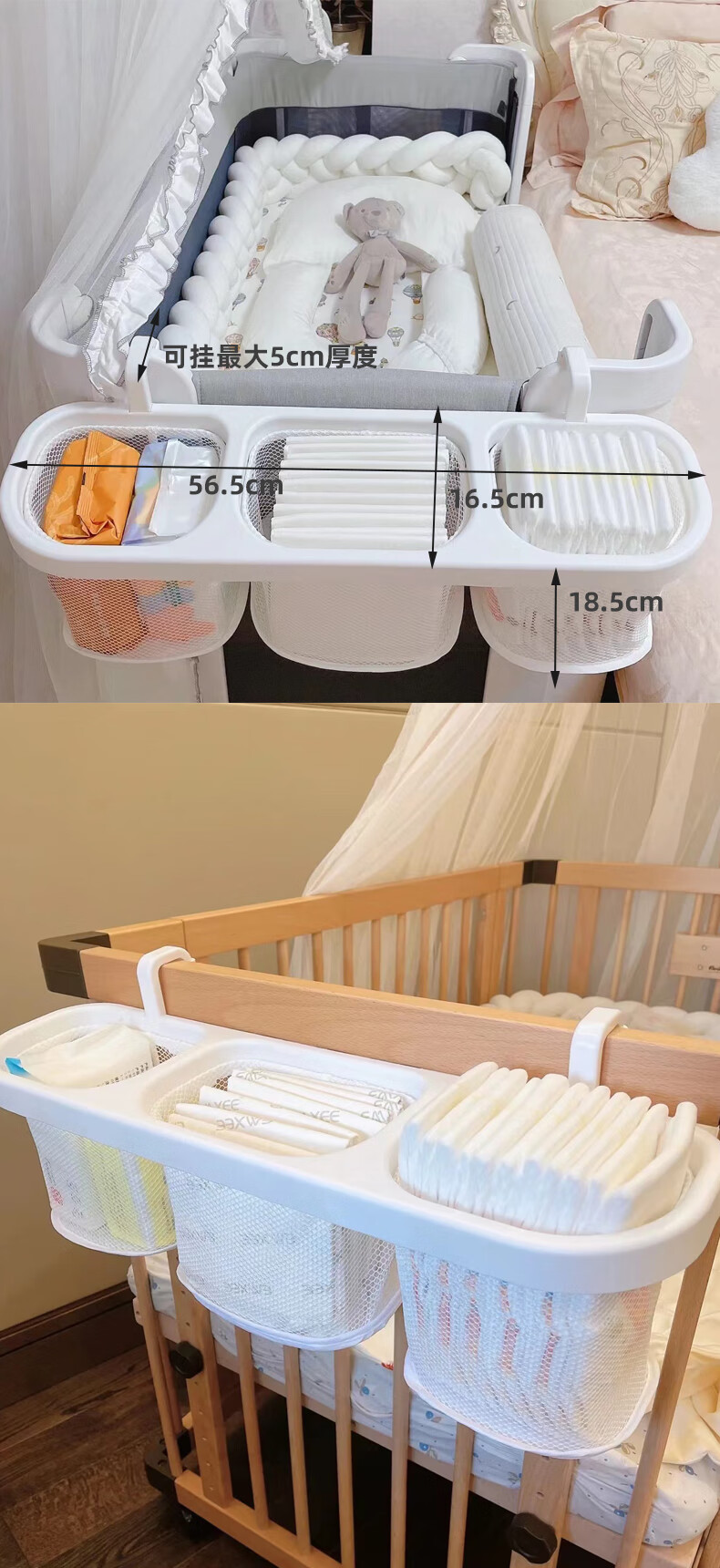Tongxin baby playpen frame baby bedside hanging bag multifunctional diaper storage bag hanging bag hanging basket bedside crib hanging basket (gray white)