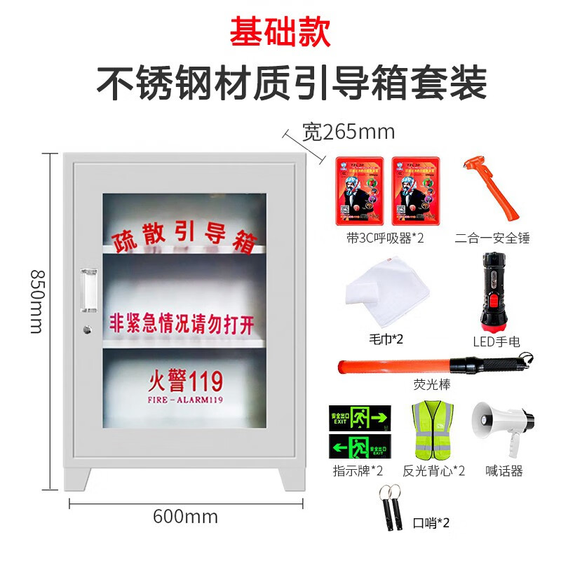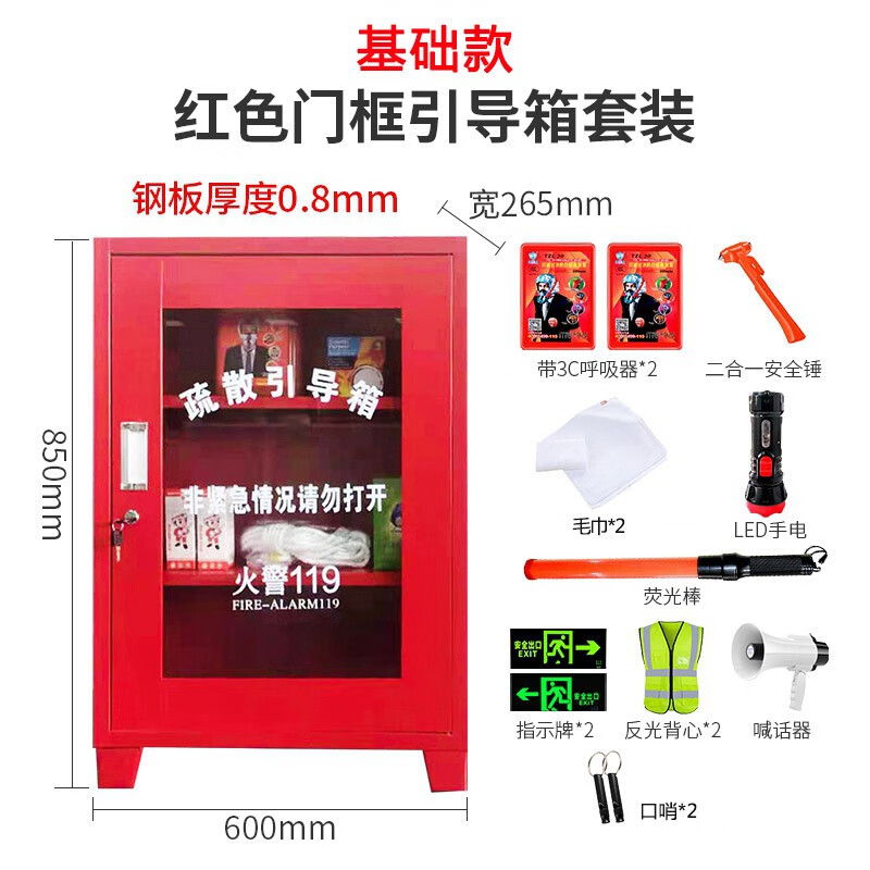 Yuyan Pioneer Fire Evacuation Guidance Box Full Set Emergency Information Box Silver Light Stick Escape Mask Towel Fire Ax Material Cabinet Evacuation Guidance Box (Red Recommended Set)