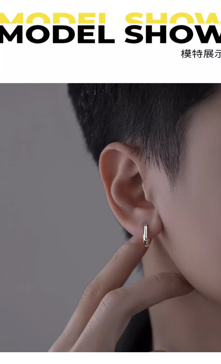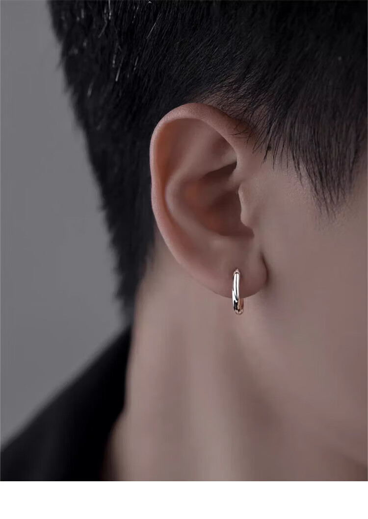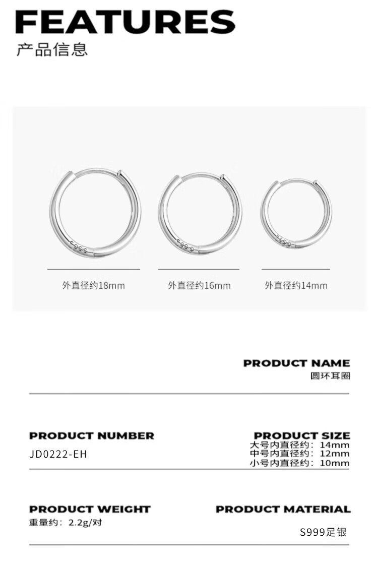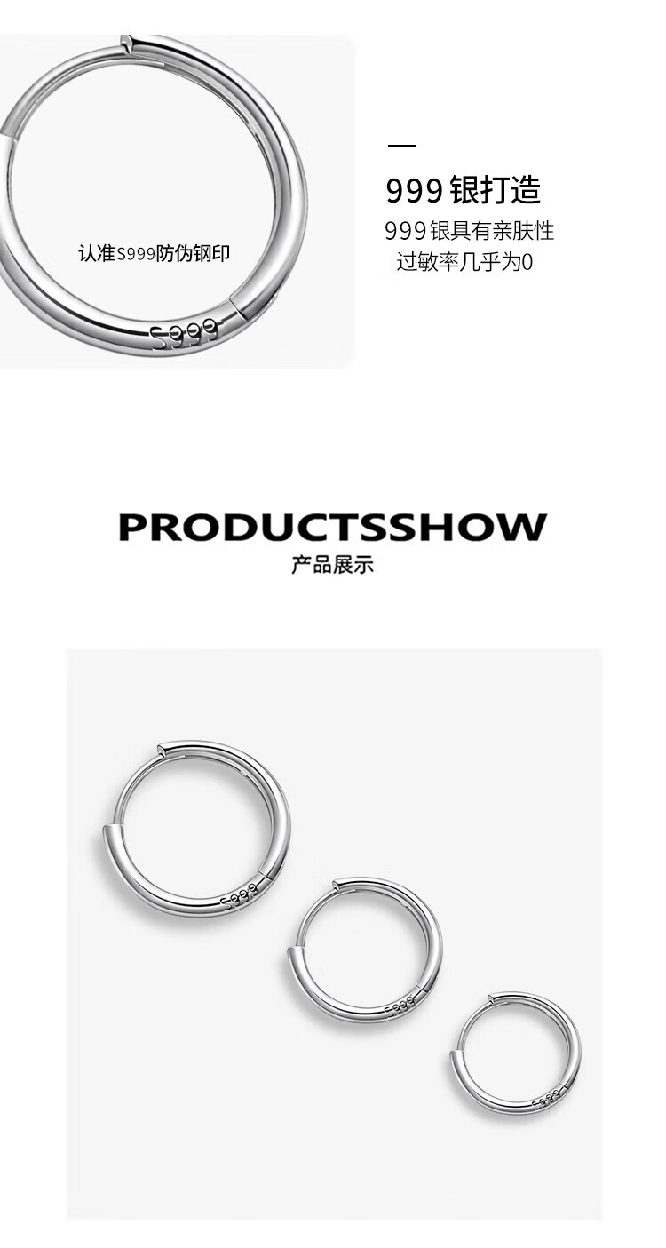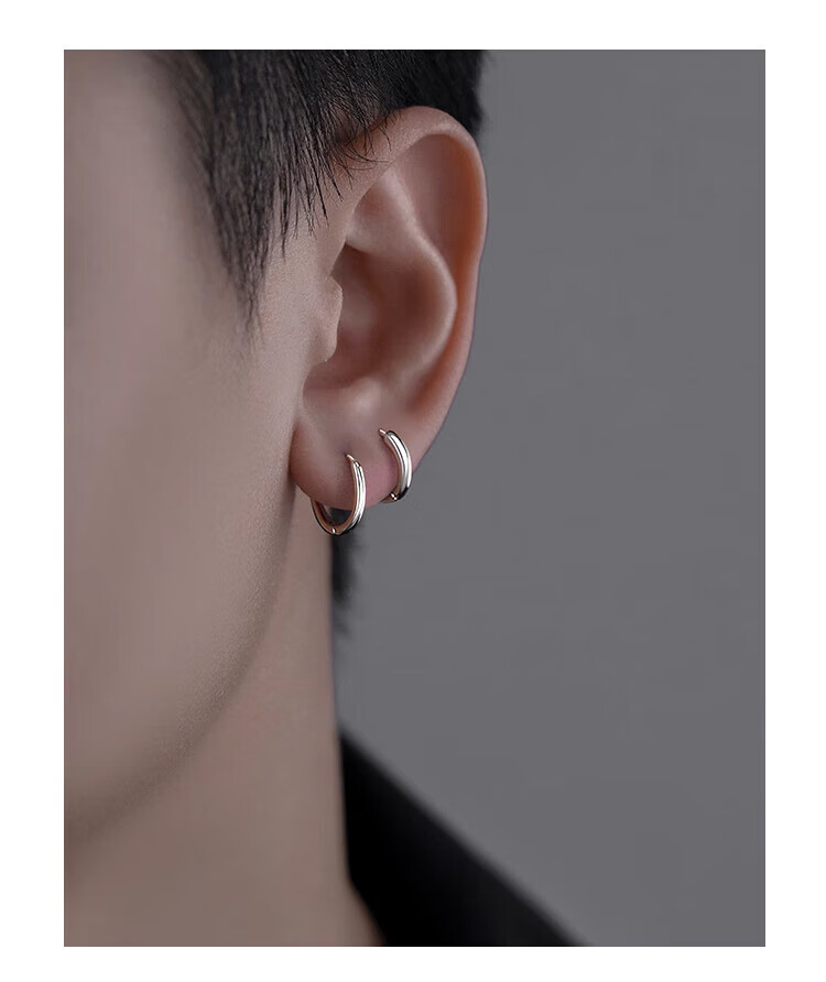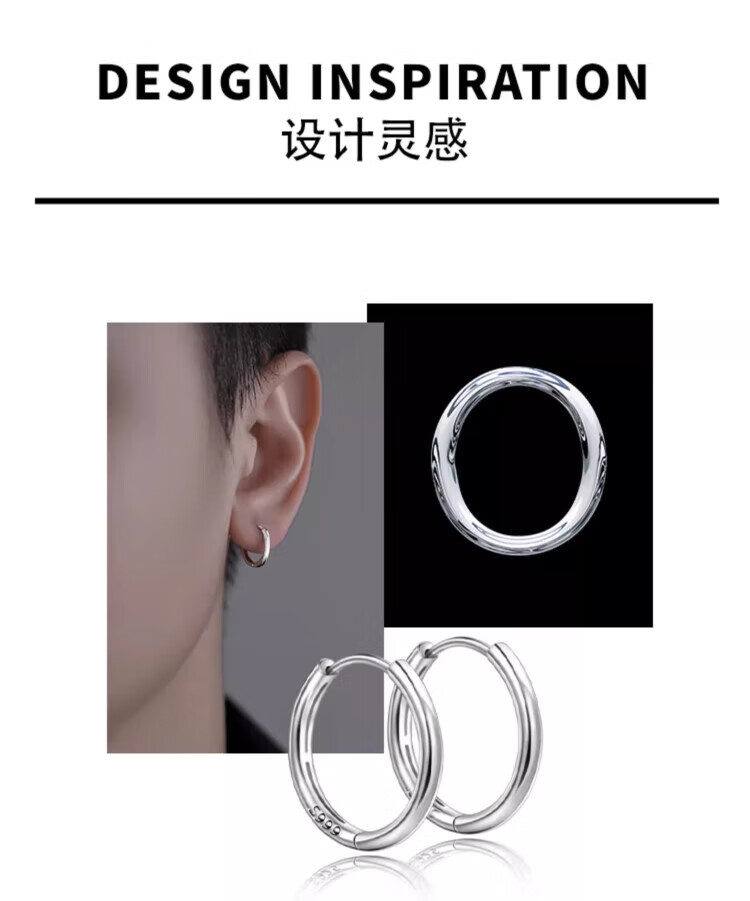 Gunai S999 Silver Earrings Men's Valentine's Day Birthday Gift for Boyfriend and Husband Silver Ear Hoop Design Element Hoop Earrings S999 Silver Ear Hoop 16mm Pair Gift Box