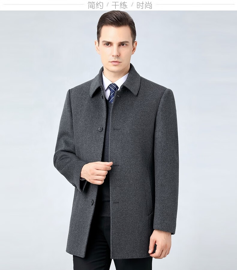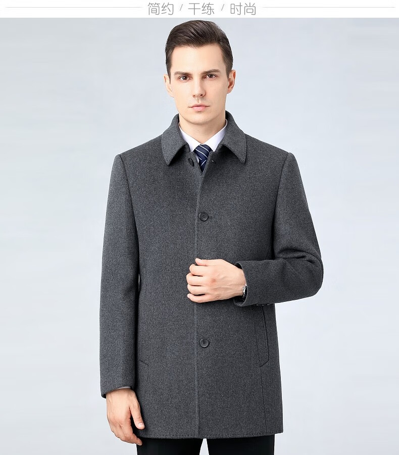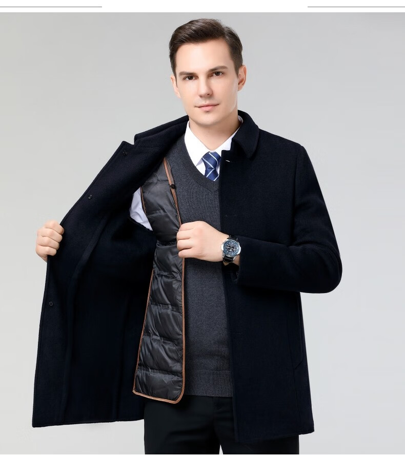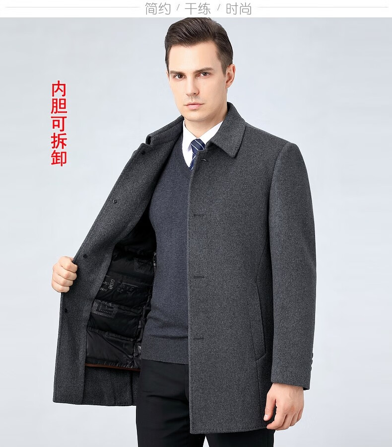 Hengyuanxiang wool woolen winter men's woolen coat for men Men's mid-length windbreaker with removable duck down liner jacket for men 82122 Gray + mid-length removable liner XL 180 size recommended 130-150 Jin Jin equals 0.5 kg