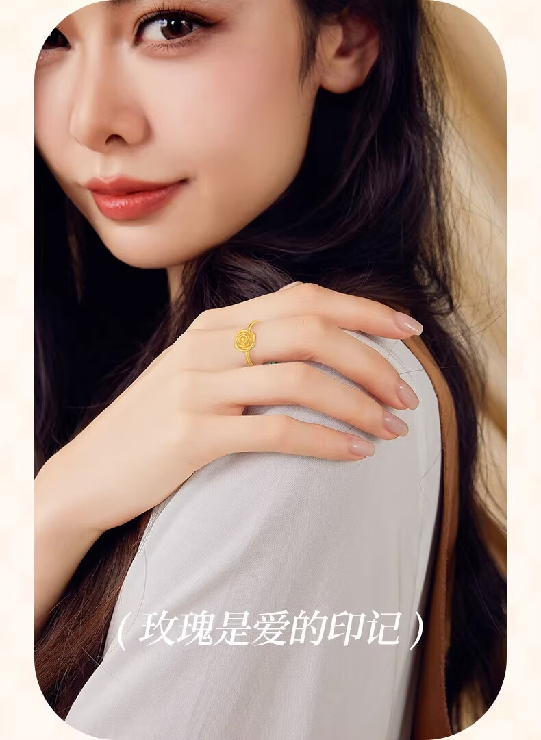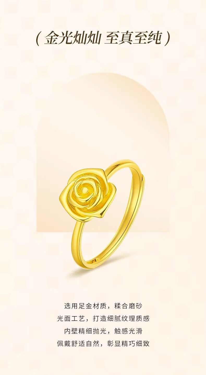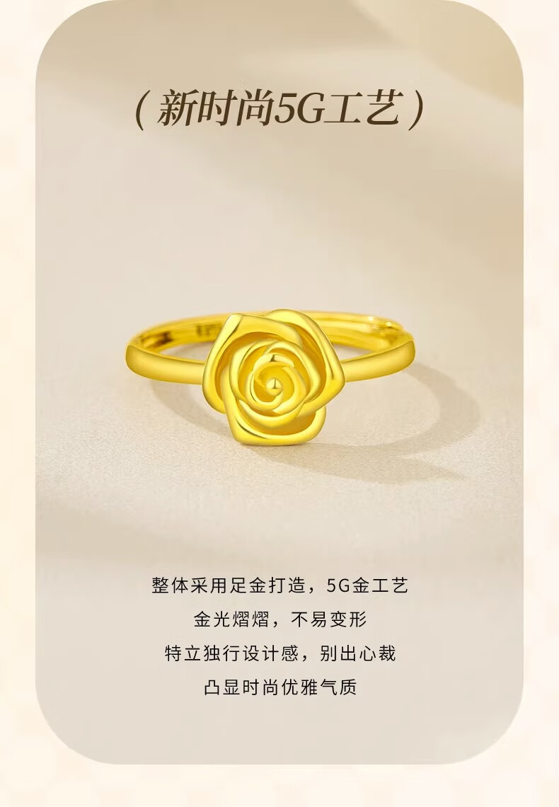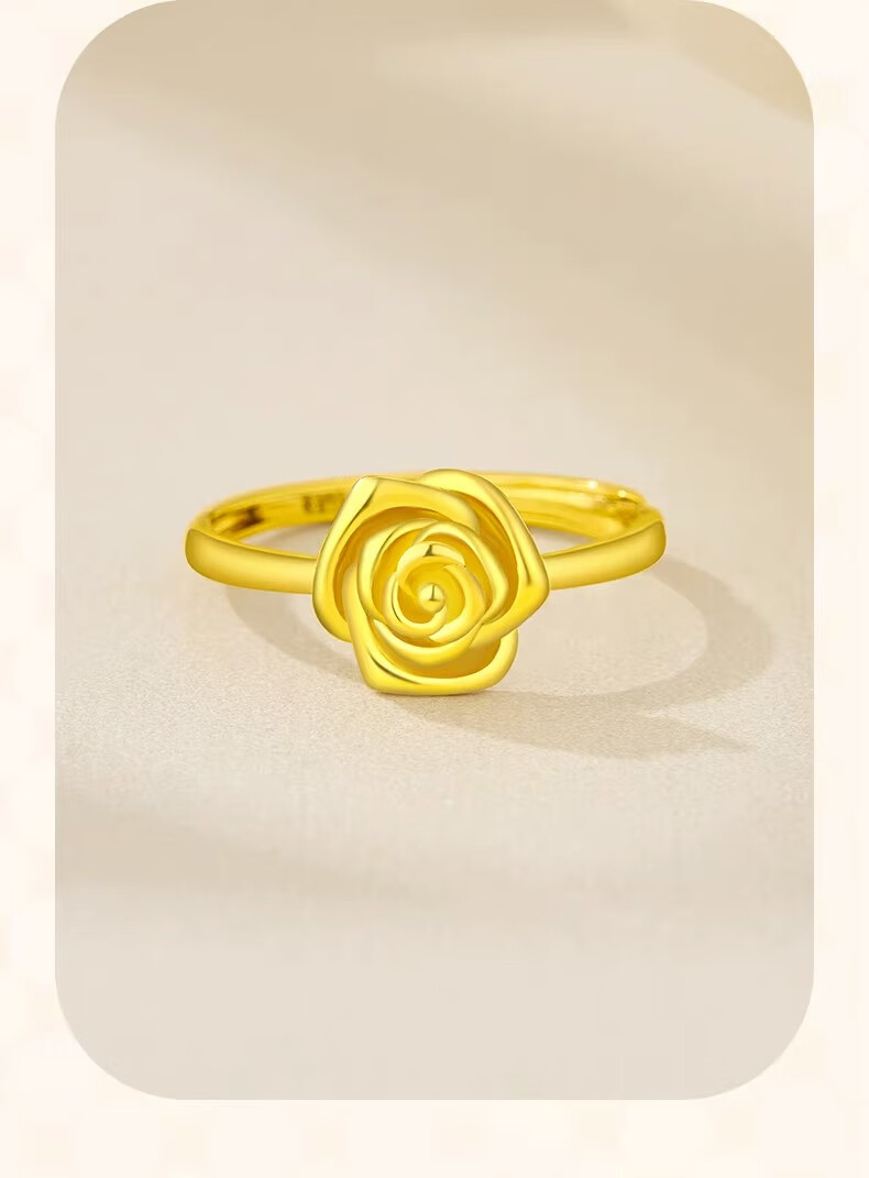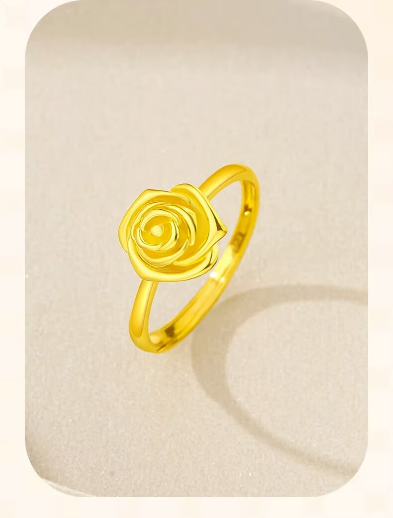 CHINA GOLD rose gold ring pure gold opening adjustable yellow Valentine's Day birthday gift for girlfriend and wife Valentine's Day gift box + pure gold ring about 2.9g