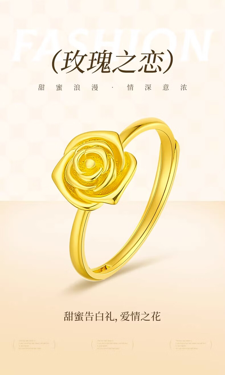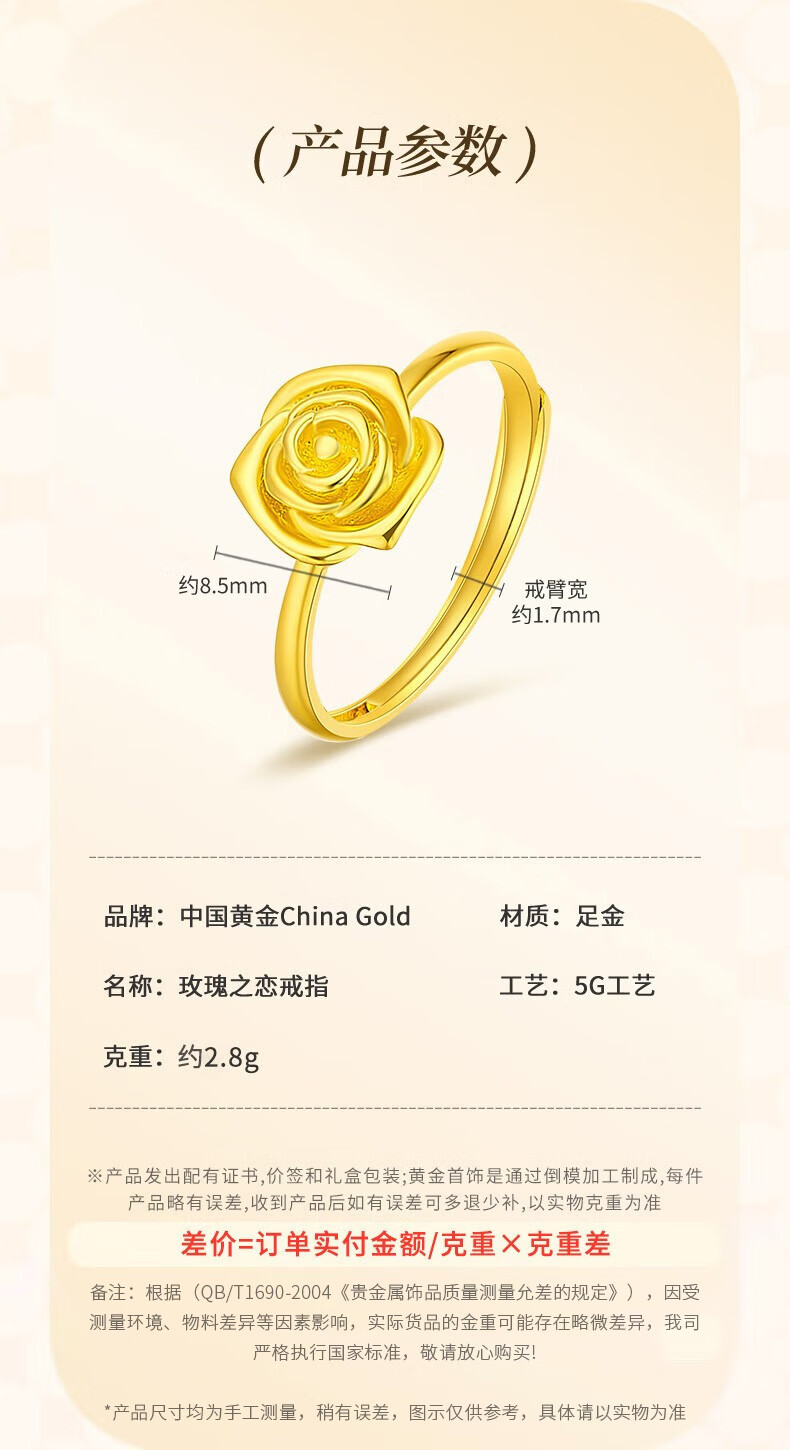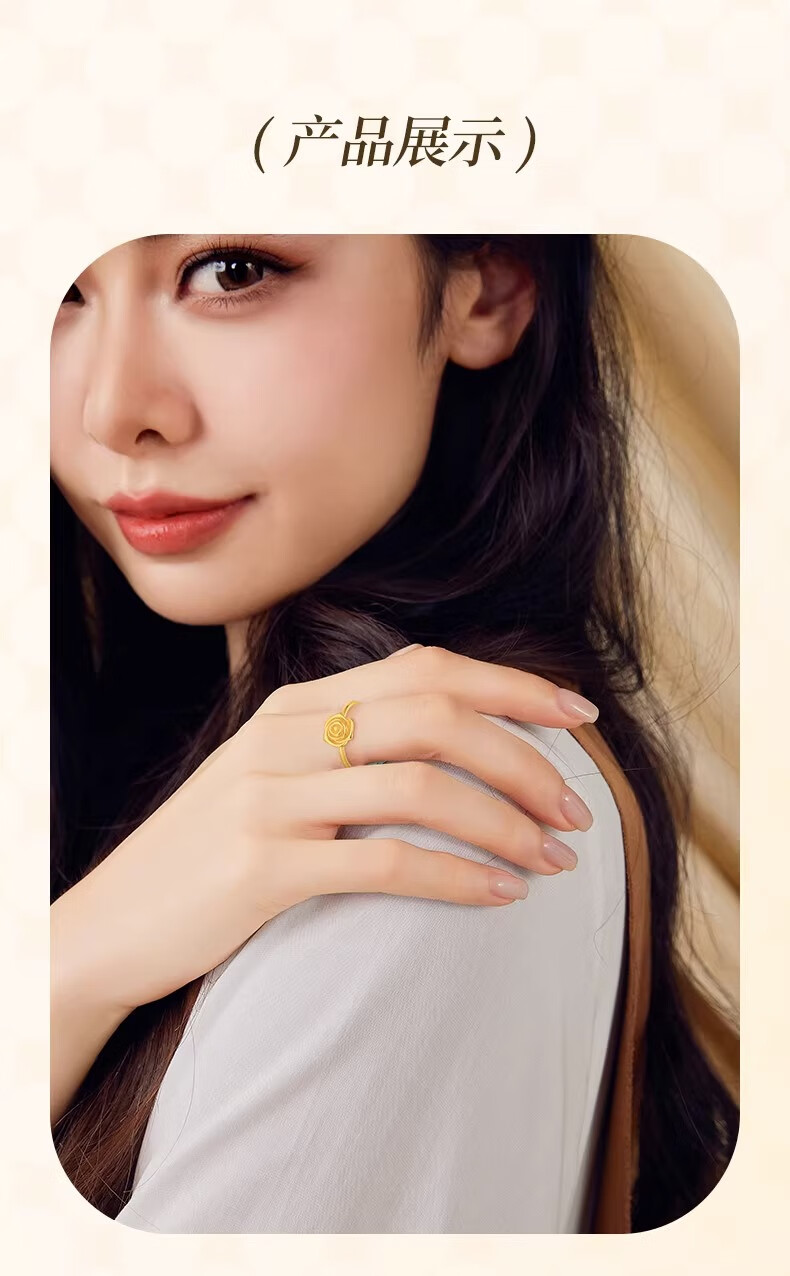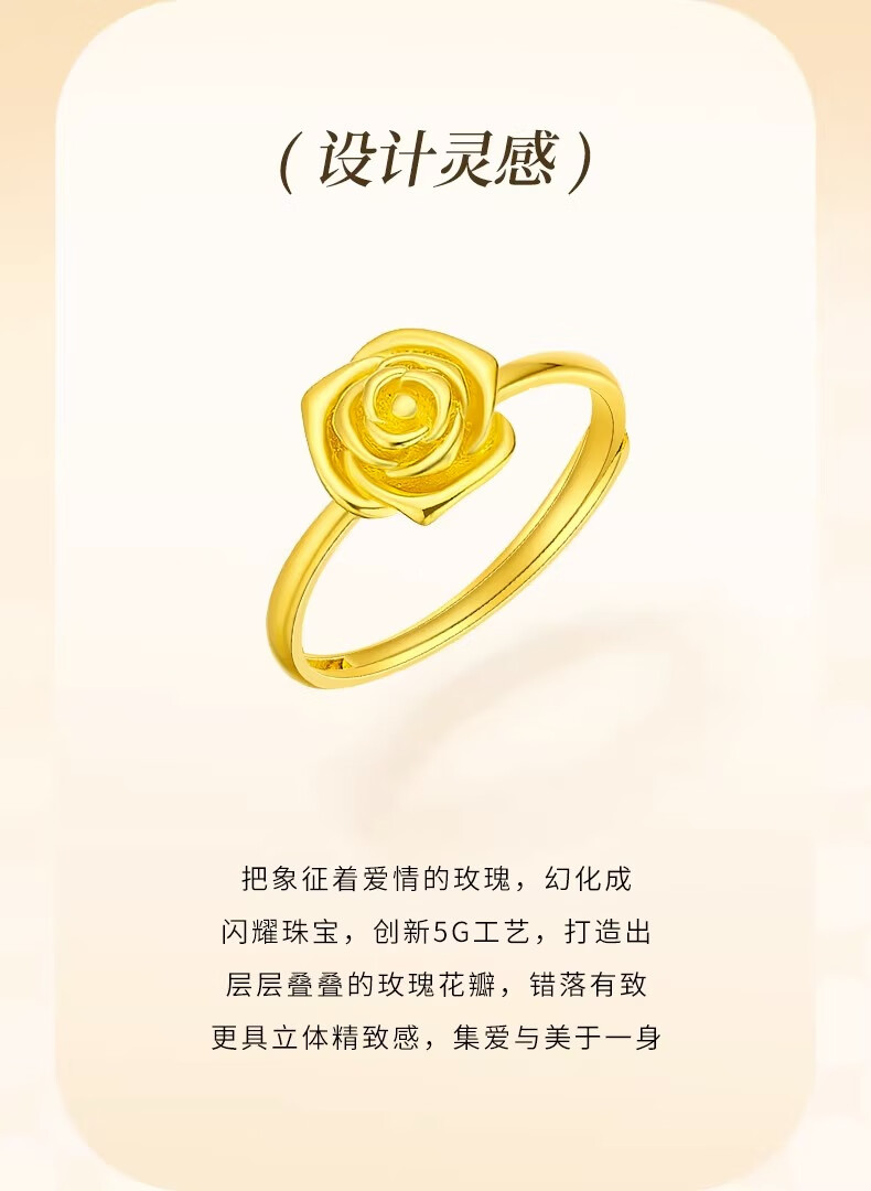CHINA GOLD rose gold ring pure gold opening adjustable yellow Valentine's Day birthday gift for girlfriend and wife Valentine's Day gift box + pure gold ring about 2.9g