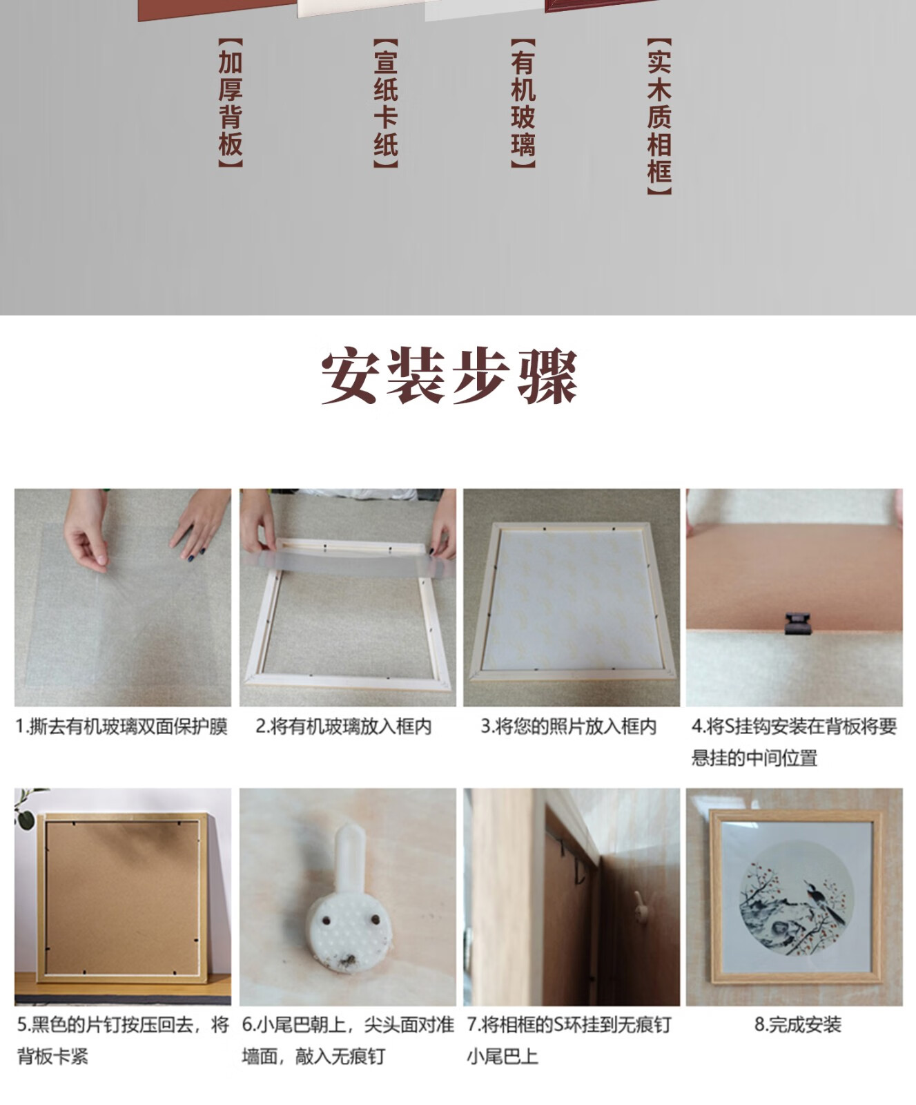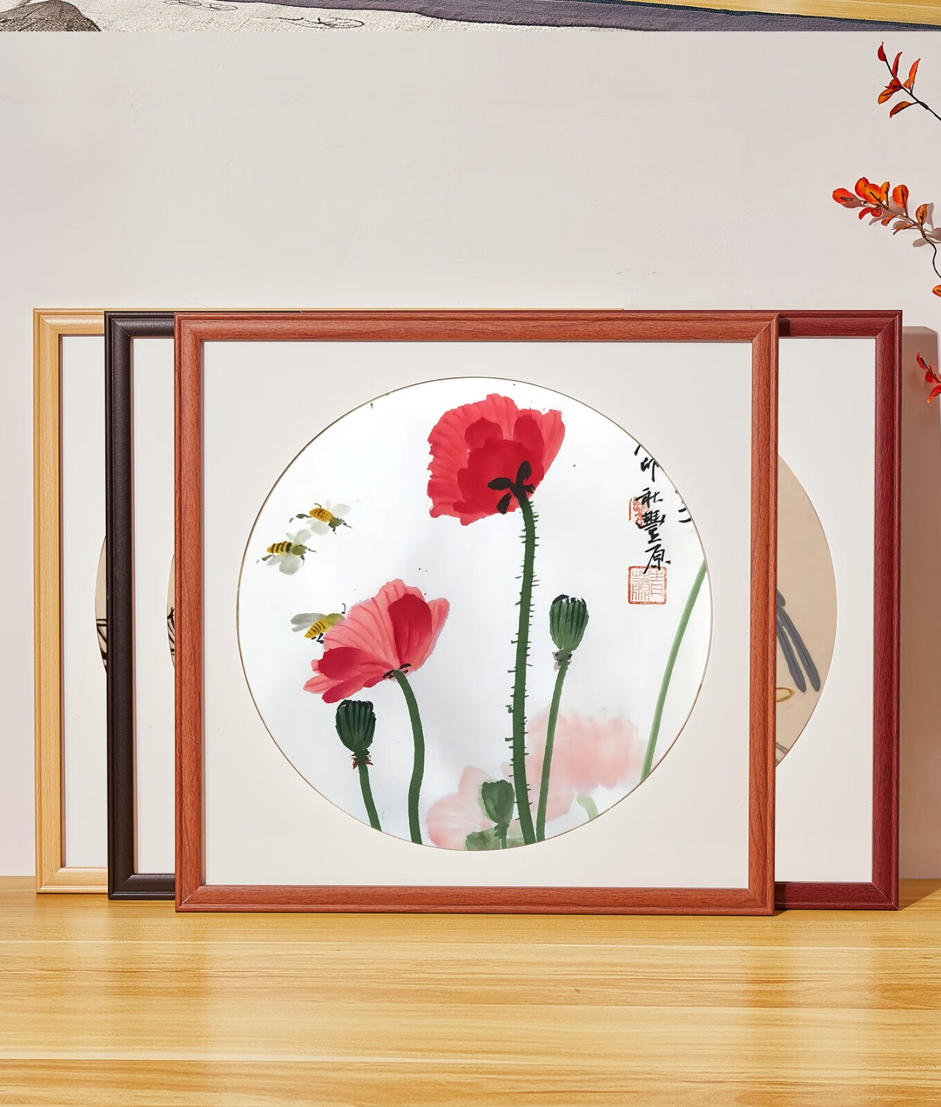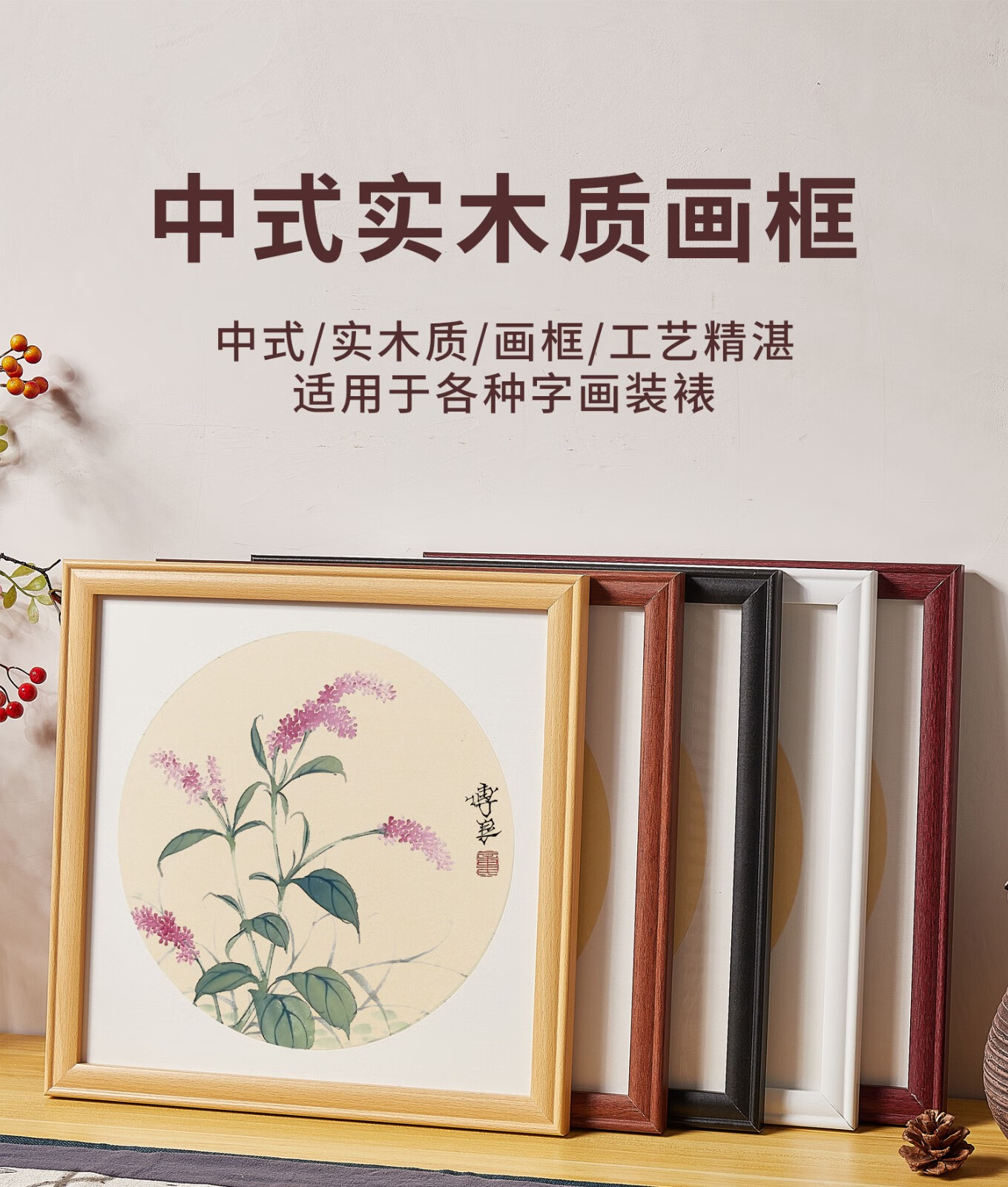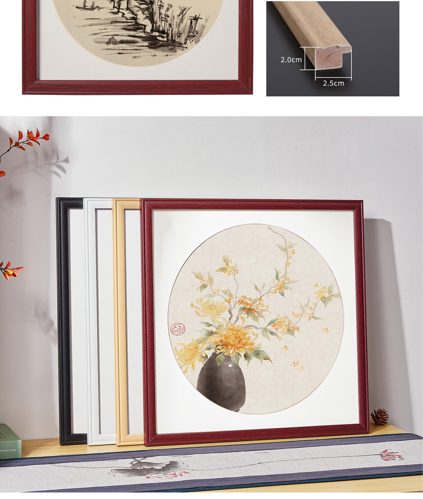Peitongqing Chinese picture frame mounted photo frame wall hanging 38 Chinese calligraphy calligraphy cross stitch diamond square 50 custom frame wood color (photo frame + cardboard) can be placed 38*38cm