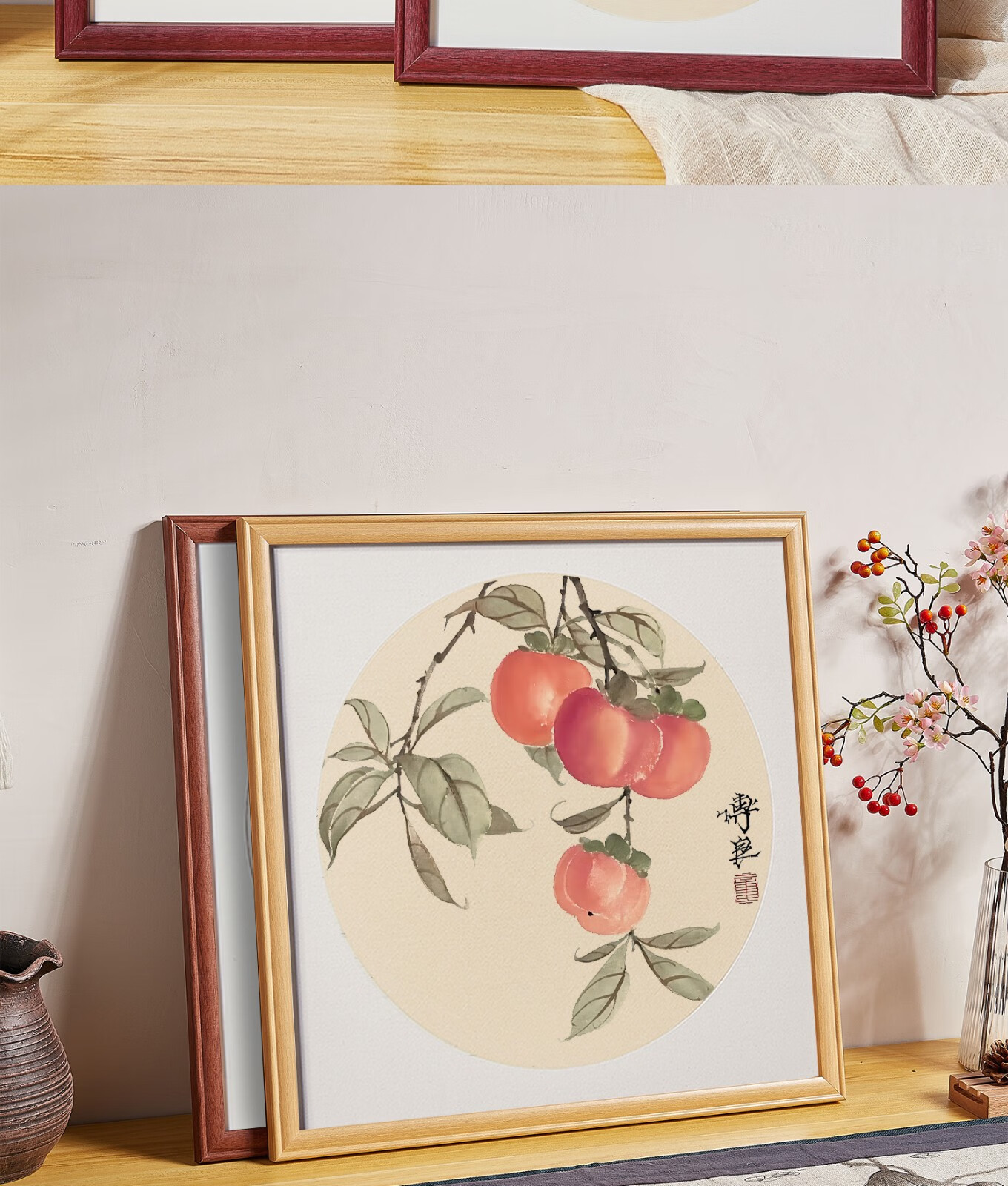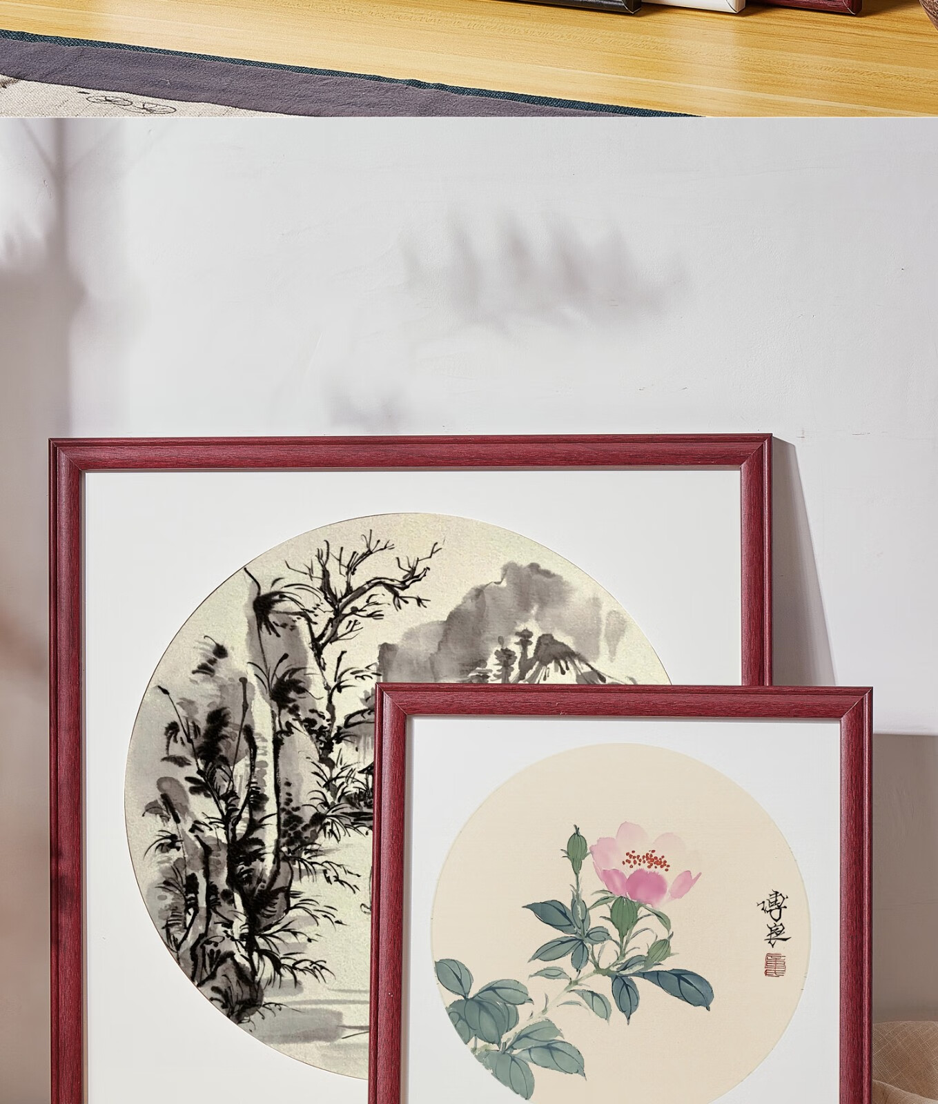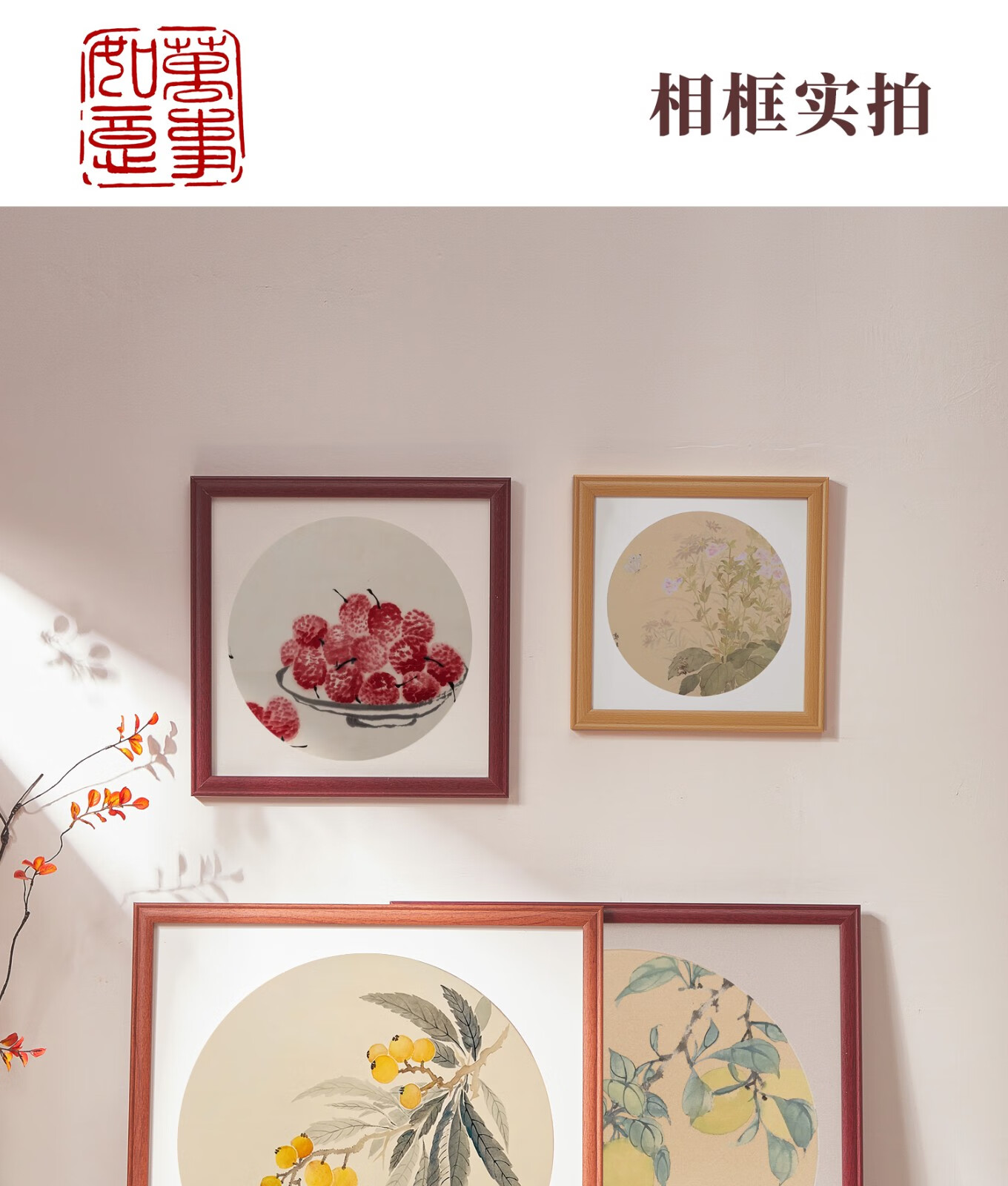 Peitongqing Chinese picture frame mounted photo frame wall hanging 38 Chinese calligraphy calligraphy cross stitch diamond square 50 custom frame wood color (photo frame + cardboard) can be placed 38*38cm