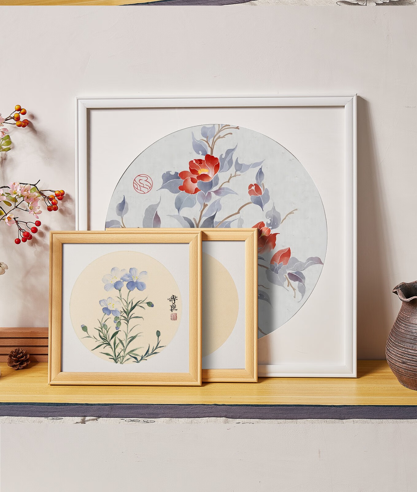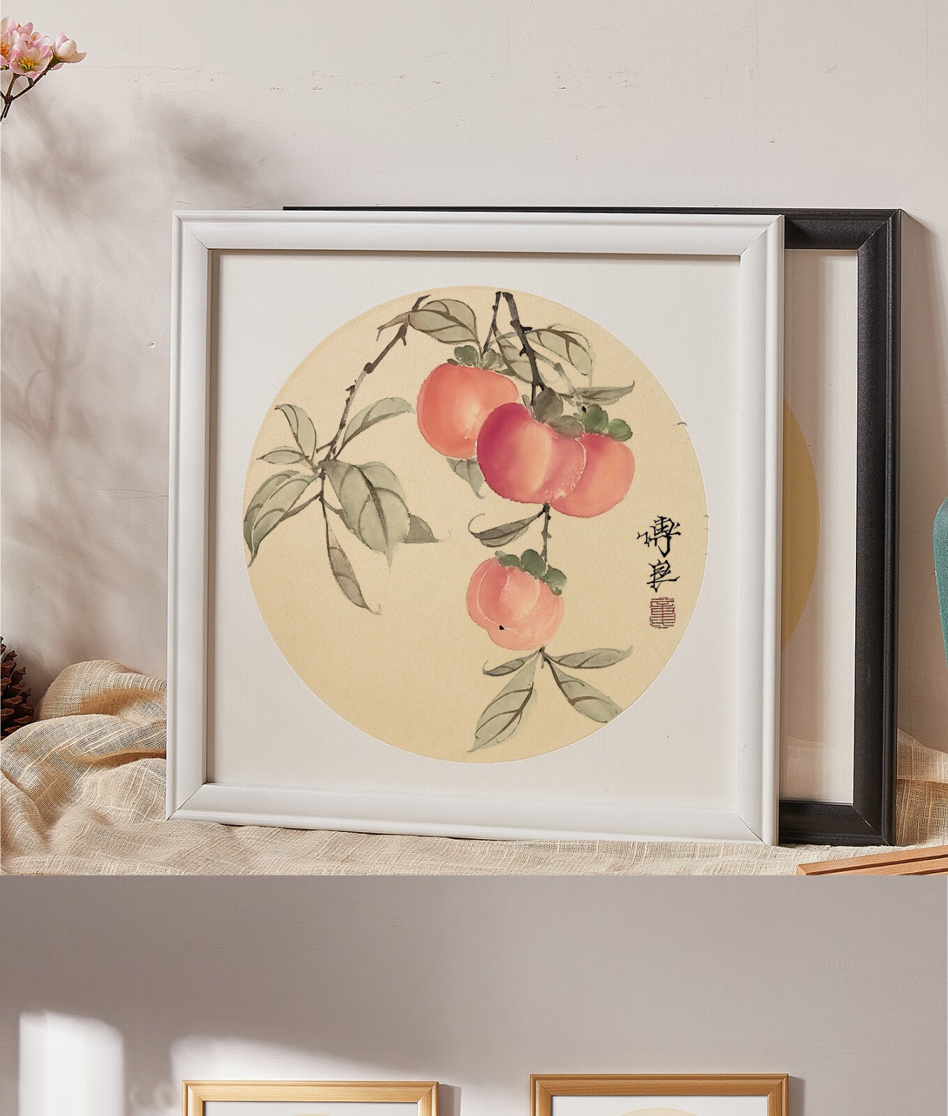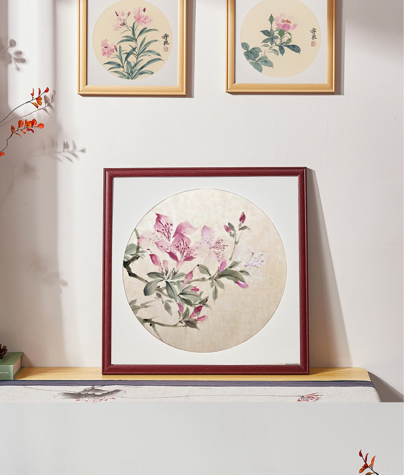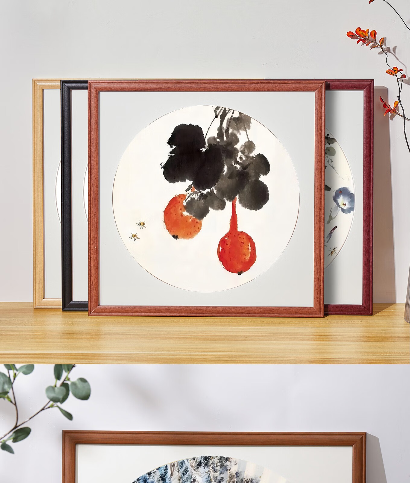Peitongqing Chinese picture frame mounted photo frame wall hanging 38 Chinese calligraphy calligraphy cross stitch diamond square 50 custom frame wood color (photo frame + cardboard) can be placed 38*38cm