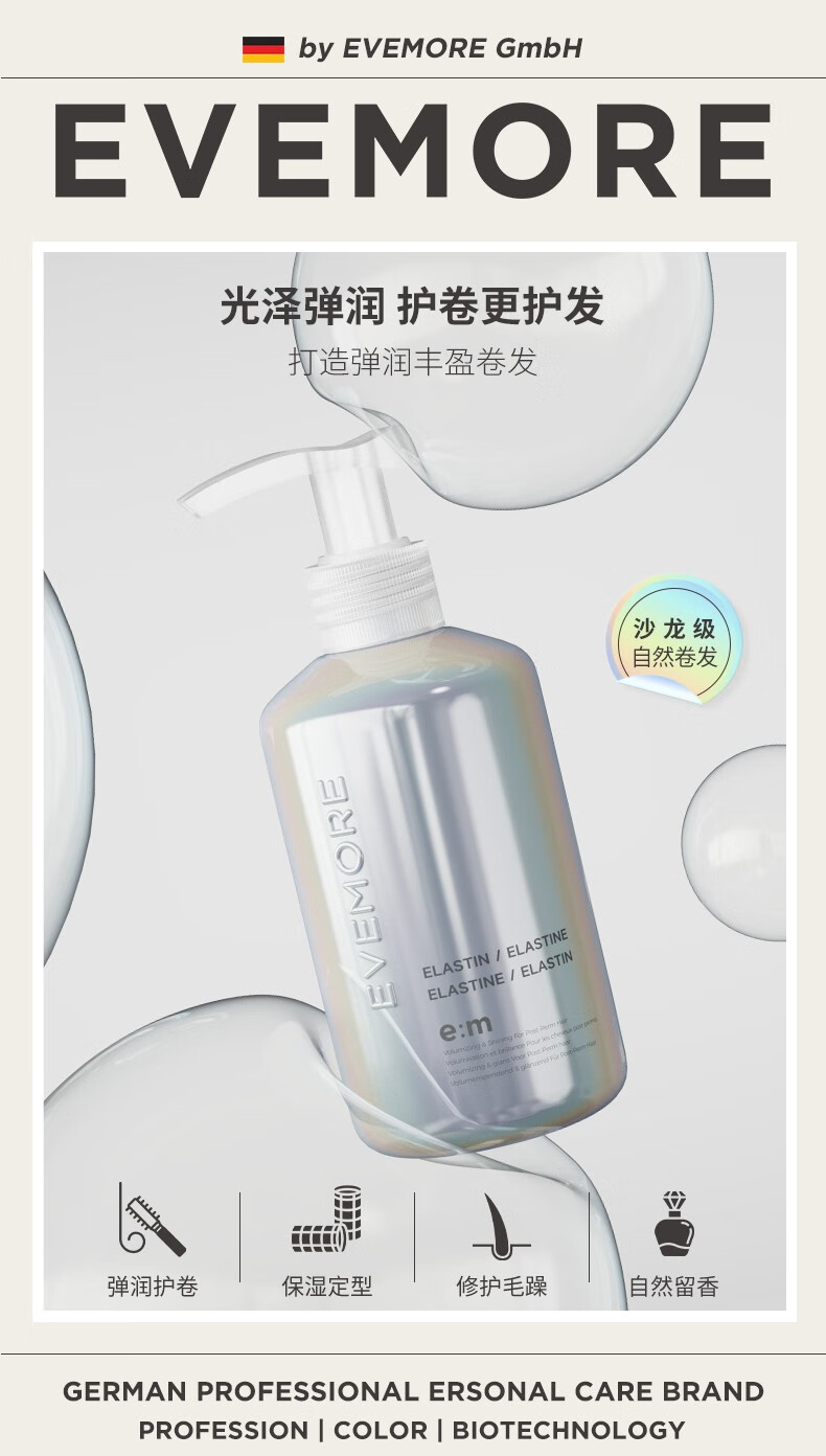 EVEMORE Elastin 250ml Women's Curly Hair Fluffy Moisturizing Perm and Dyeing Hair Care Volume Base Styling Hair Care Essential Oil Anti-frizz 250ml 1 Bottle Curly Hair Moisturizing Style