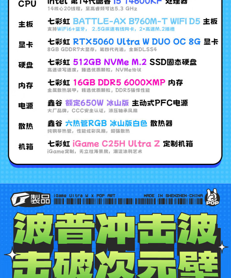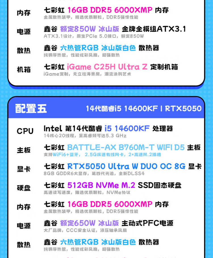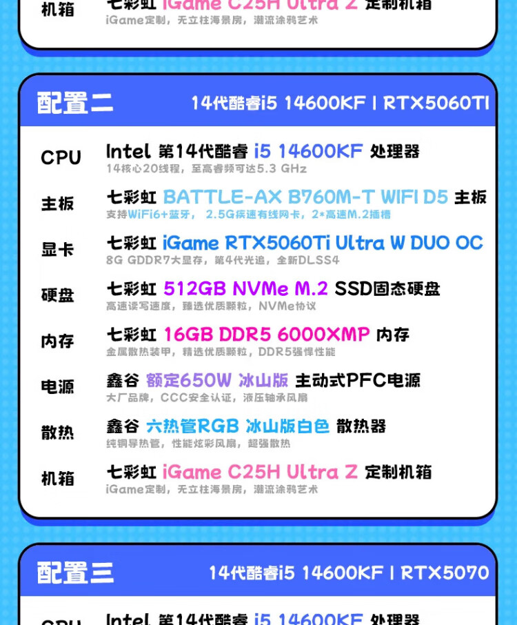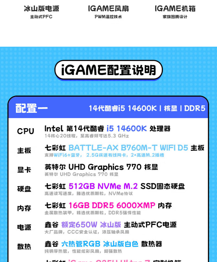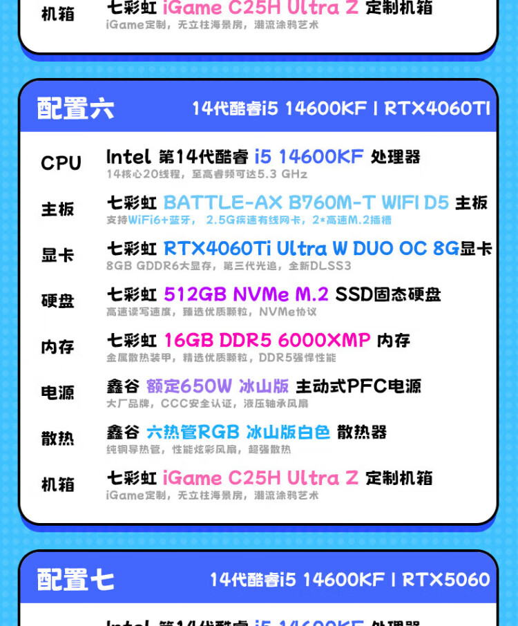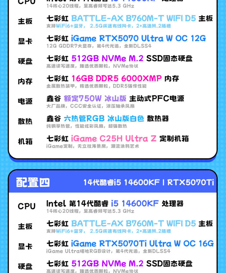 Colorful iGame family bucket host Core i5 14600KF/RTX5070Ti desktop RTX5060Ti game AI design rendering computer DIY assembly complete machine with one 14600K+core display+DDR5+water cooling