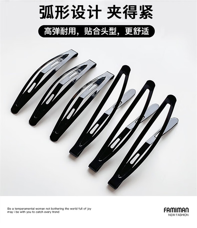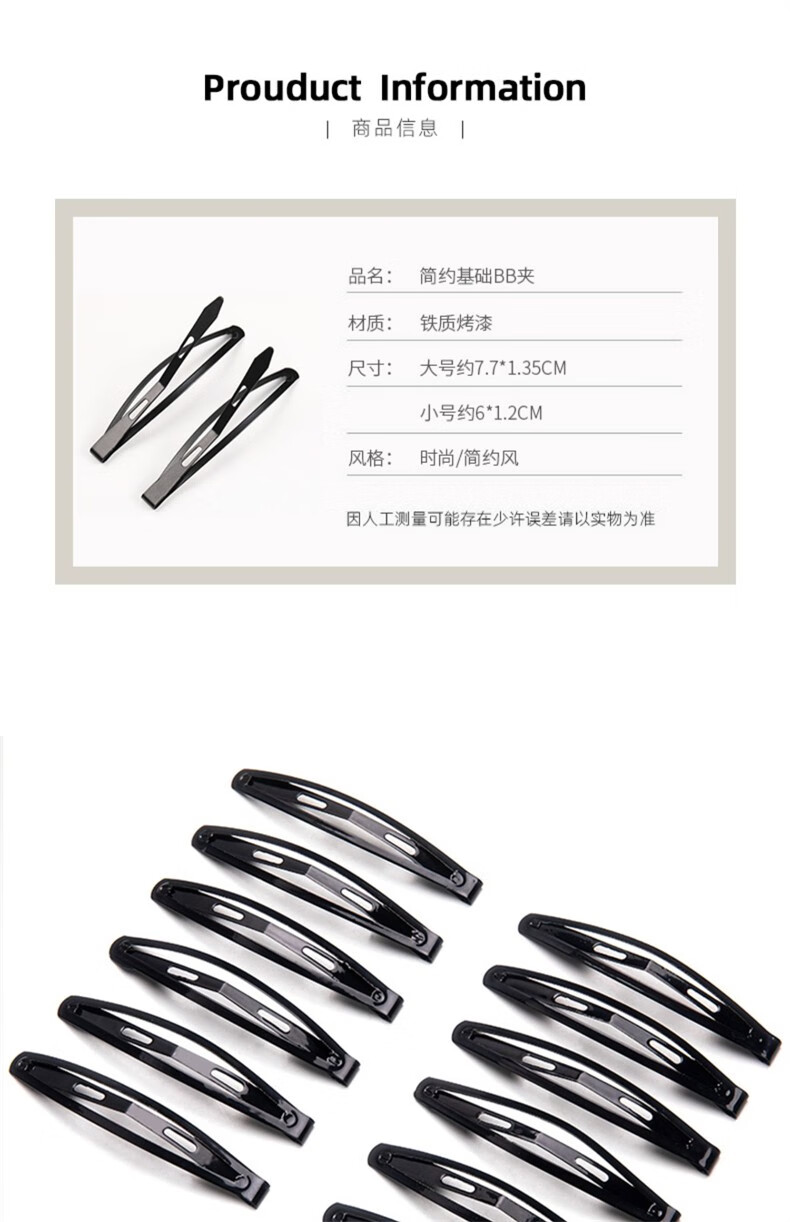 Jinhehe black simple one-word clip side broken hair bangs clip headdress hairpin female adult top clip forehead BB clip hairpin small size 12 pieces, about 6cm long, boxed