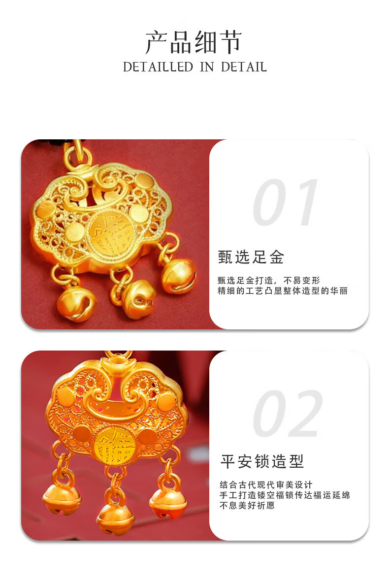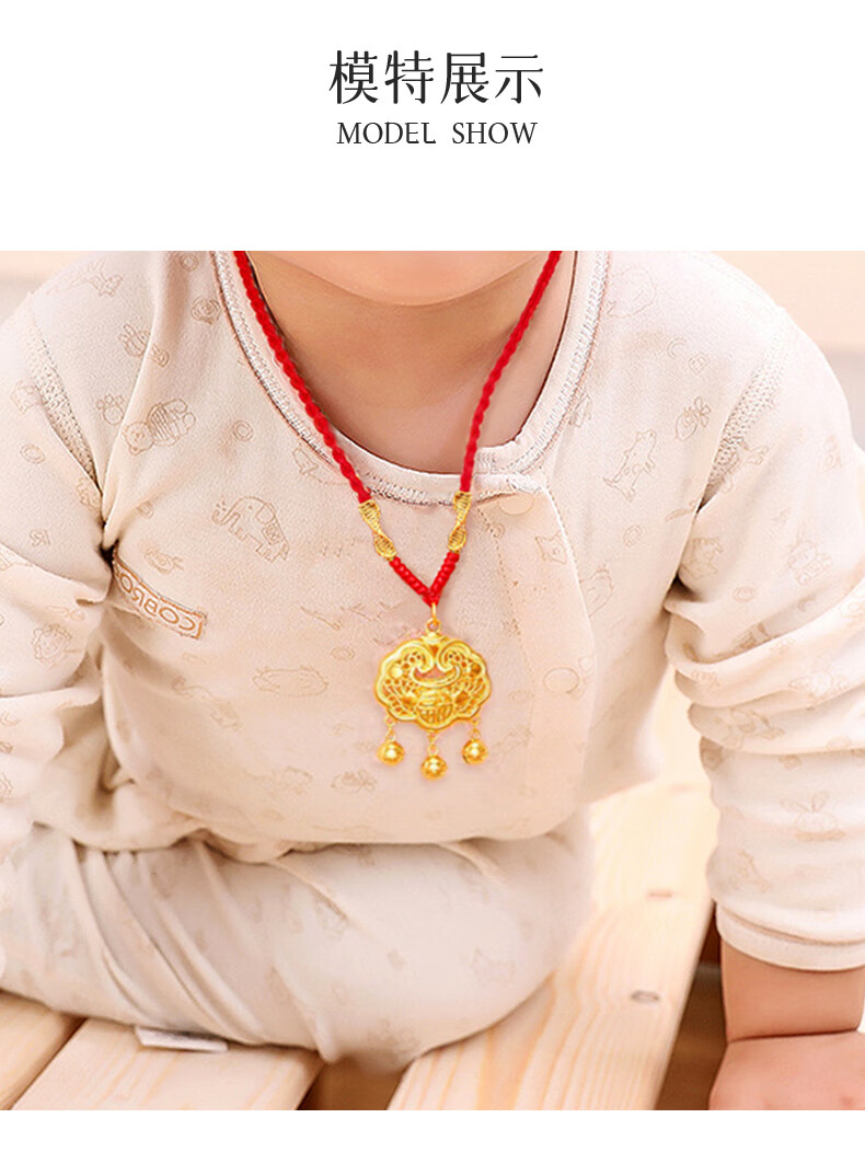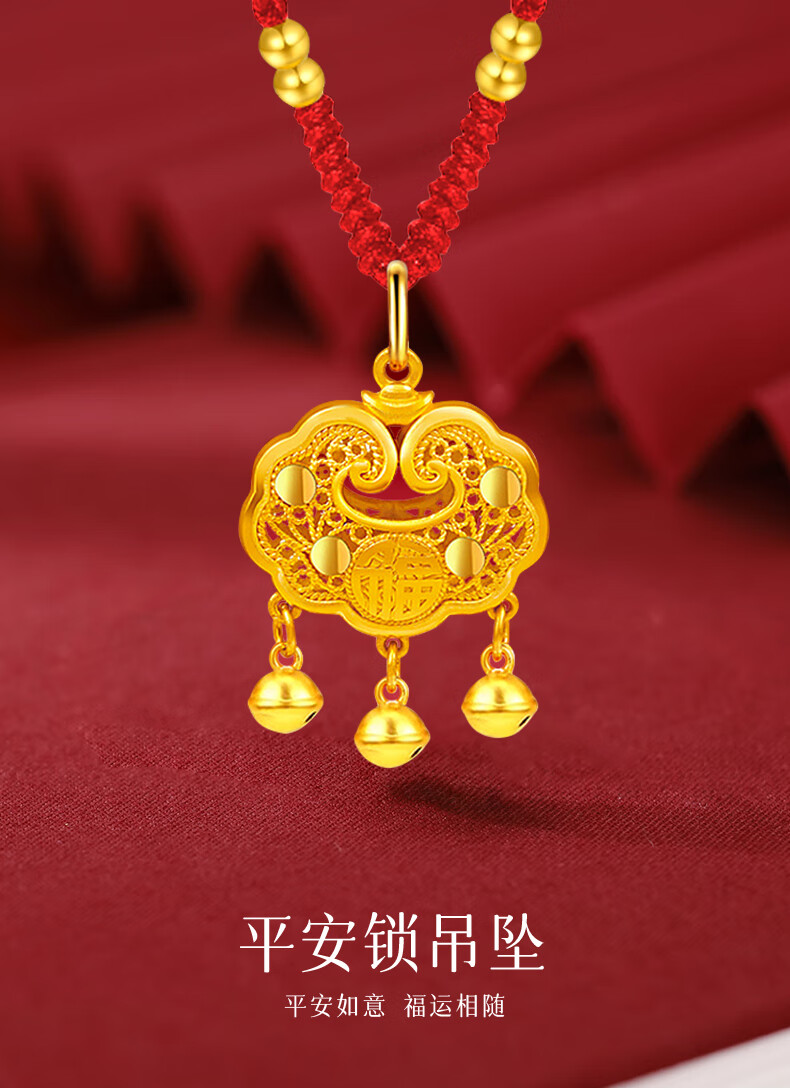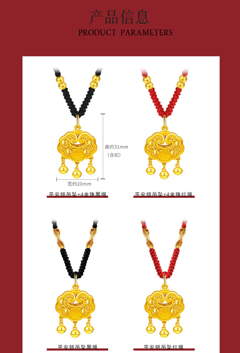 CHINA GOLD Ping An Lock Gold Necklace for Men and Women Pure Gold Pendant Longevity Lock Pendant Valentine's Day Birthday Gift for Baby Baby Delivery Today/Next Day Ping An Lock Pendant Red String About 1.5g