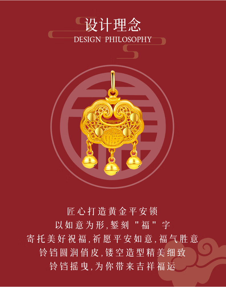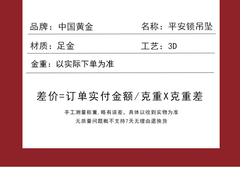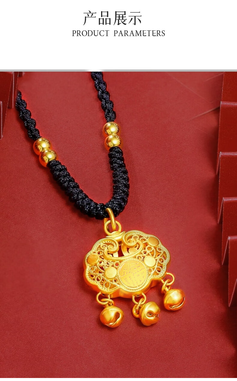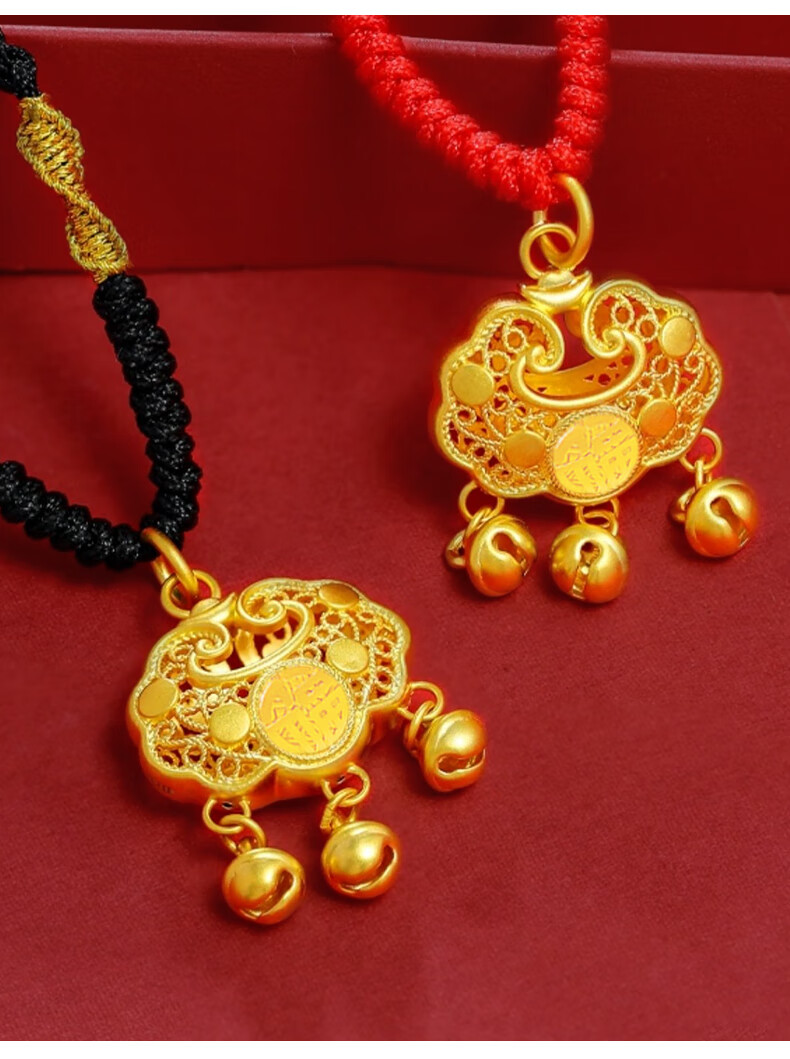 CHINA GOLD Ping An Lock Gold Necklace for Men and Women Pure Gold Pendant Longevity Lock Pendant Valentine's Day Birthday Gift for Baby Baby Delivery Today/Next Day Ping An Lock Pendant Red String About 1.5g