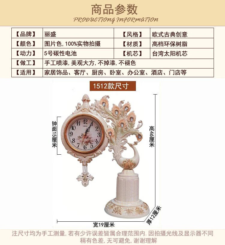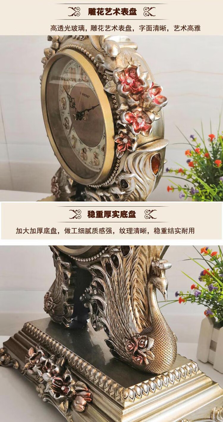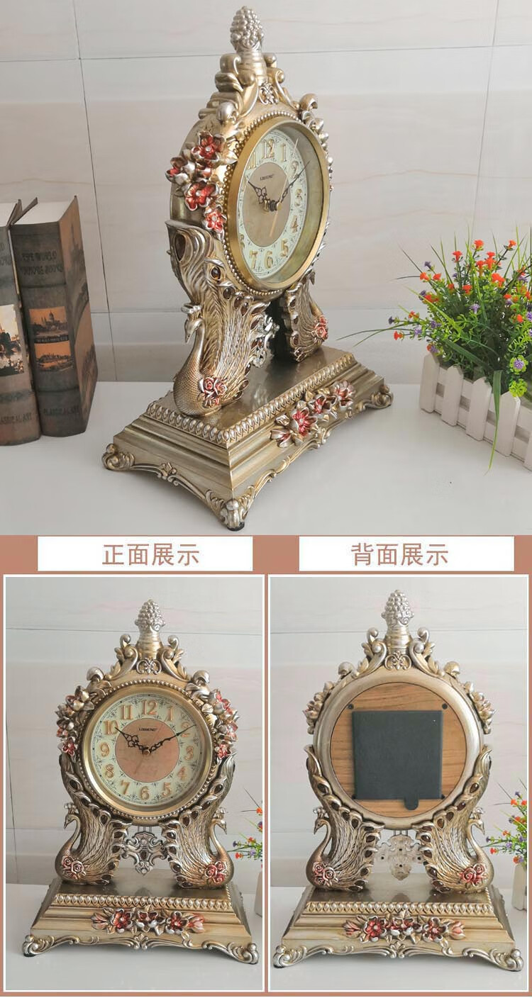 Lisheng European retro table clock living room home desktop clock ornaments bedroom clock display desktop American light luxury pendulum clock 1509FS
