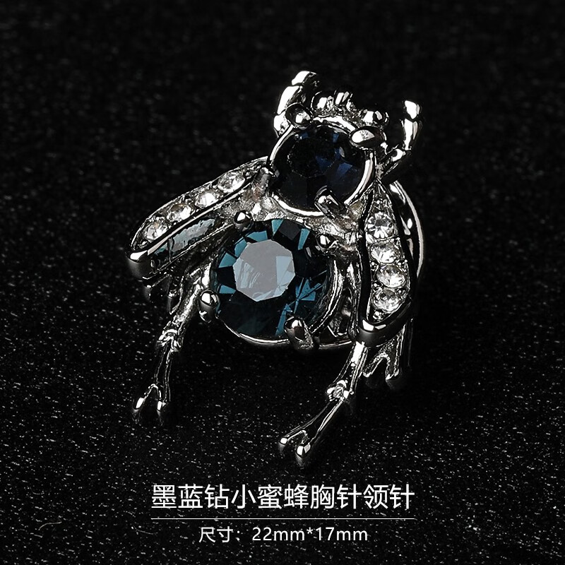 Handsome gift box with belt, men's crystal brooch, suit lapel pin, fashion corsage, suit badge, personalized trend badge accessories, gold deep blue brooch, lapel pin, copper/gift box