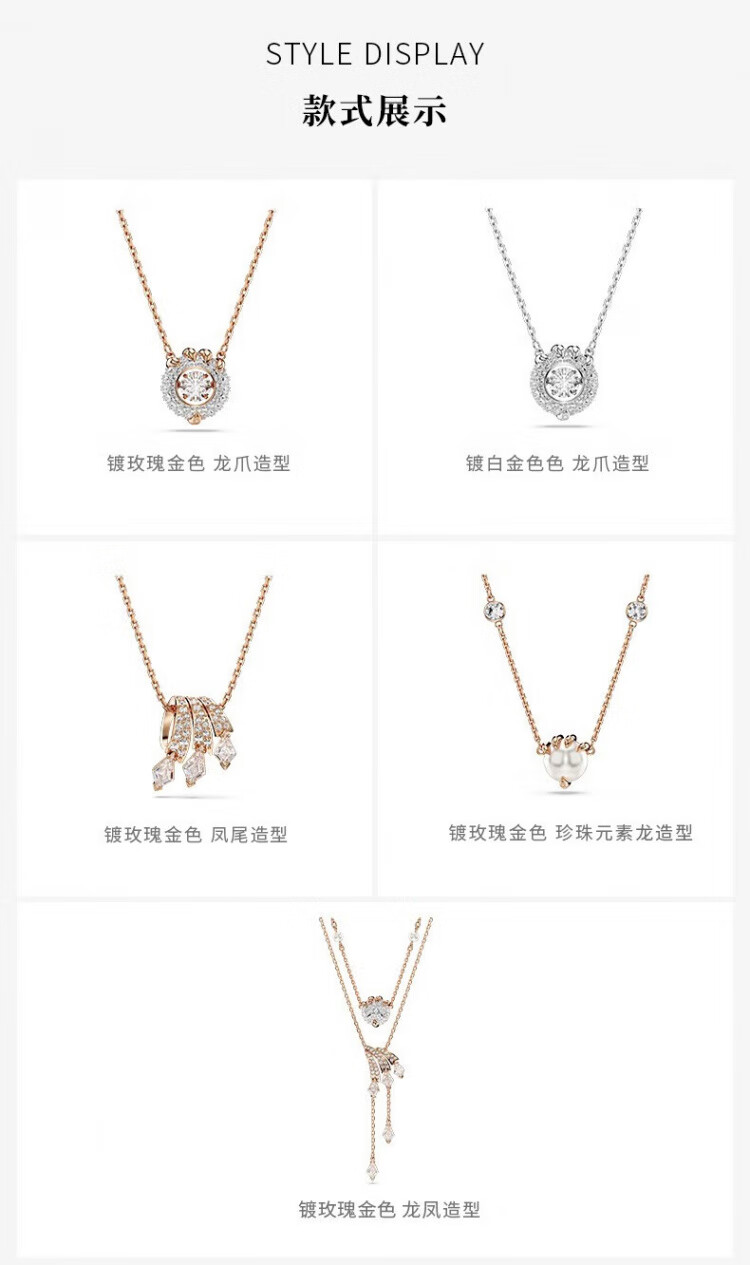 Swarovski Dragon&Phoenix necklace for women, rose gold plated, phoenix tail shape 5675826