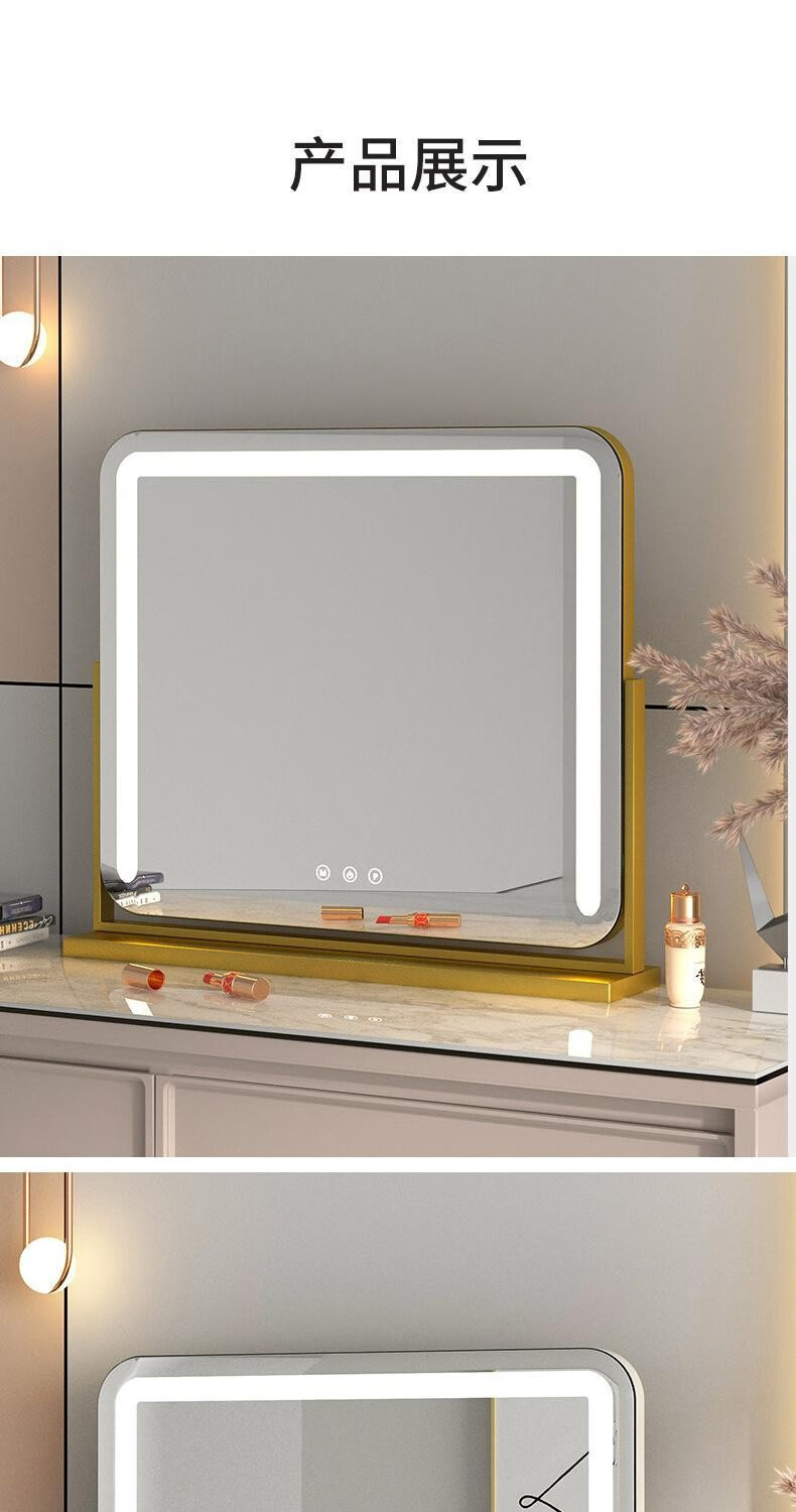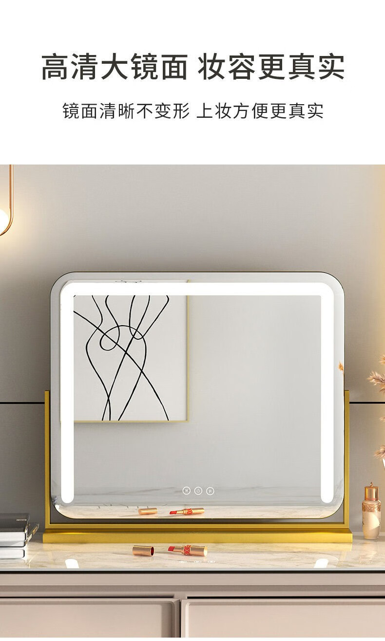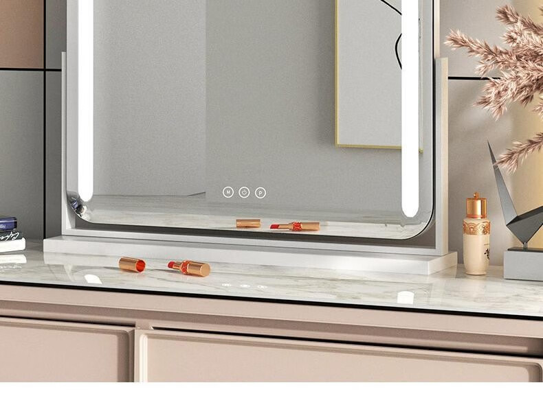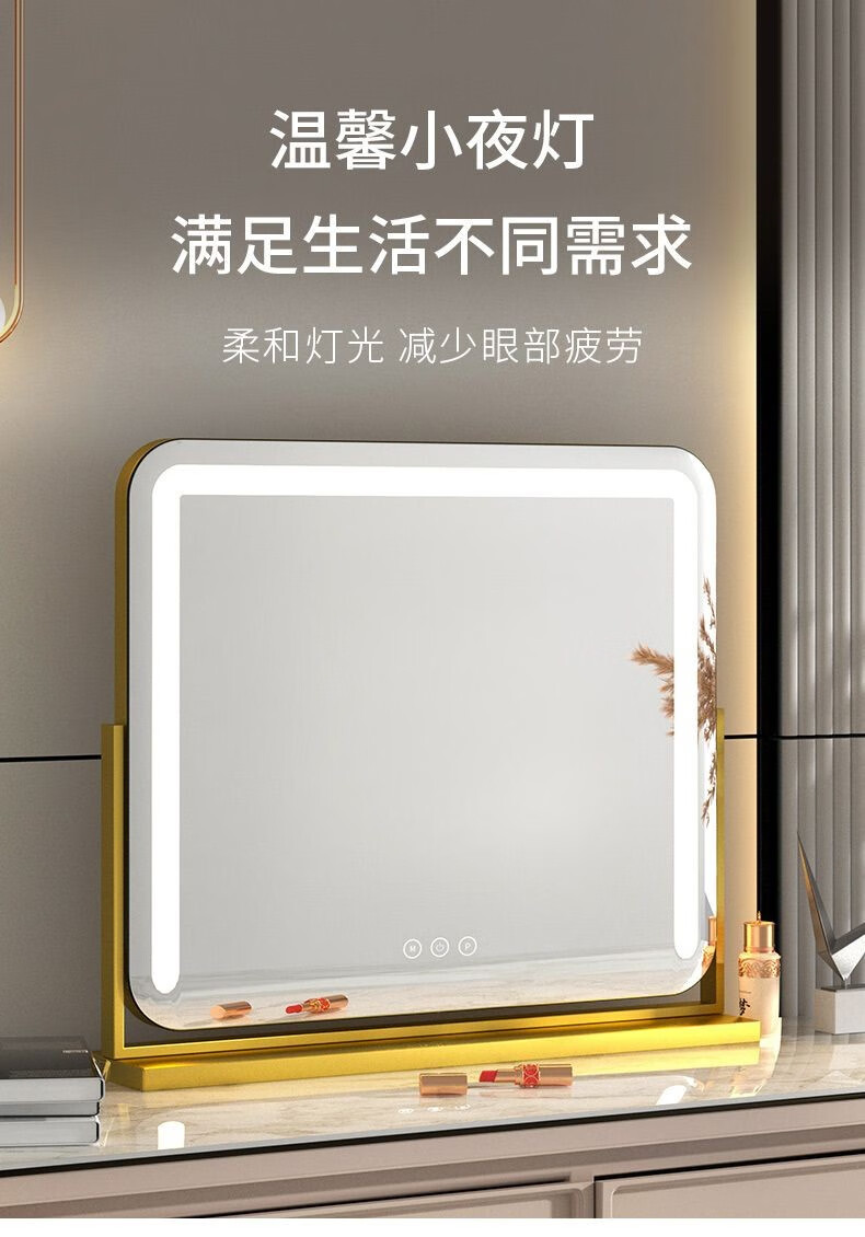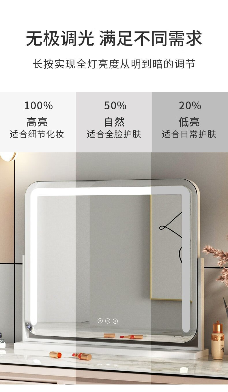 Perfeden Square Bedroom Smart Mirror Cosmetic Mirror Desktop LED Bulb Home Desktop Dressing Mirror with Light Fill-in Cosmetic Mirror Beauty Mirror Horizontal White 70*57 Plug-in
