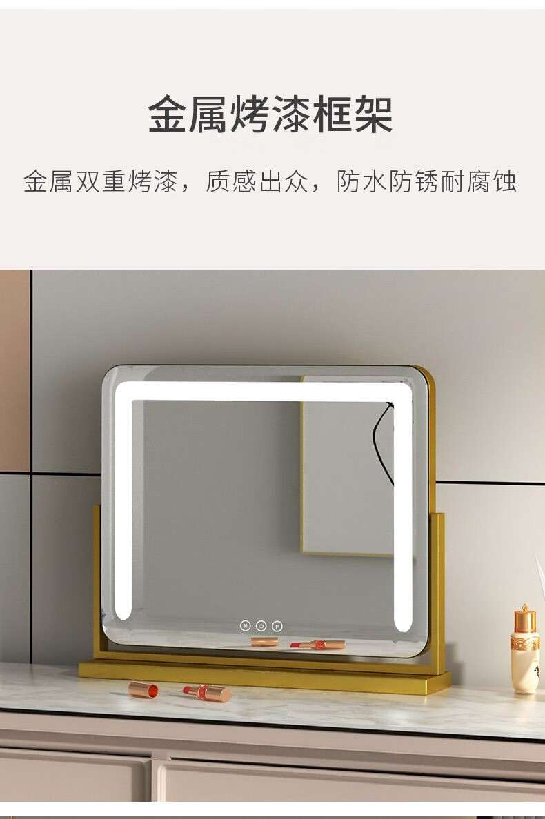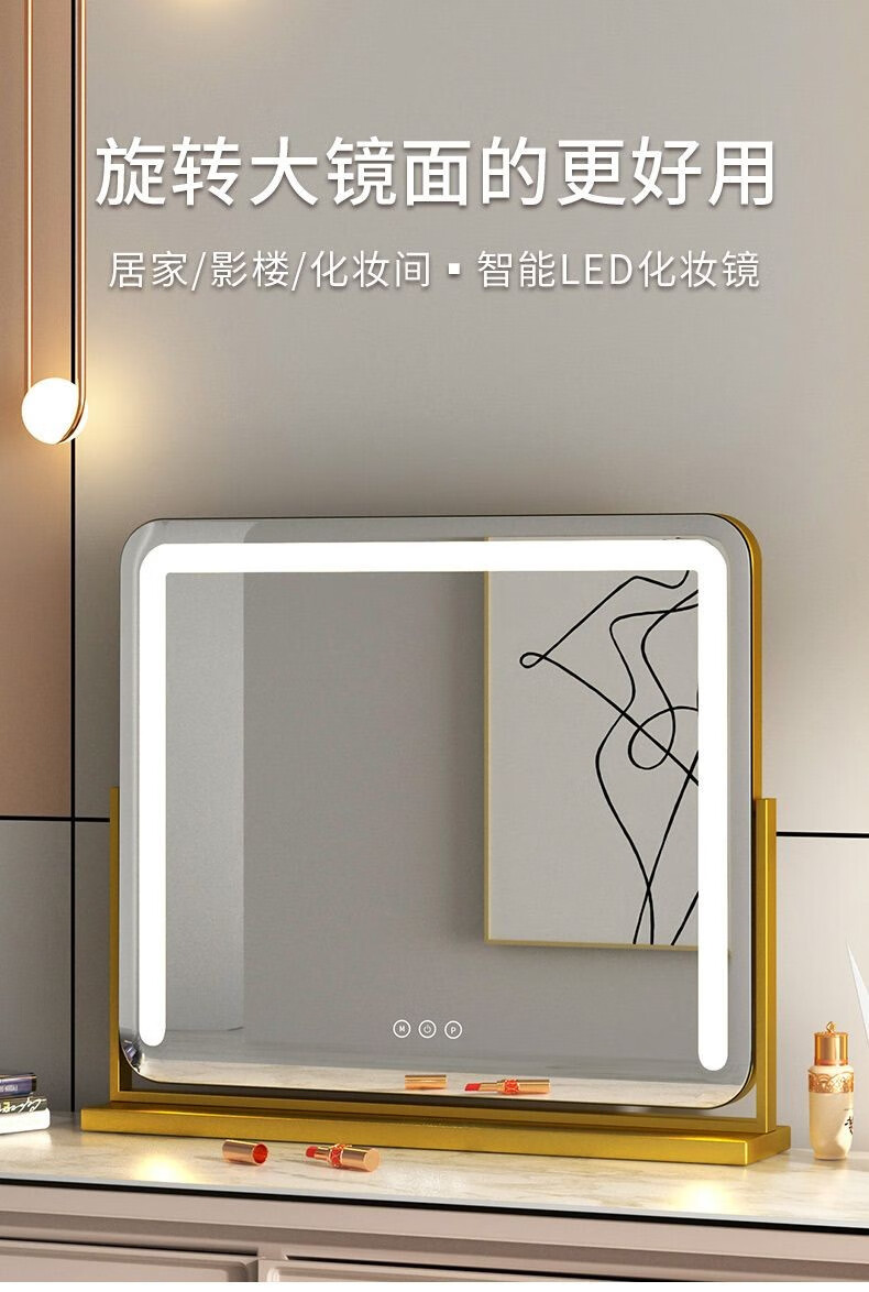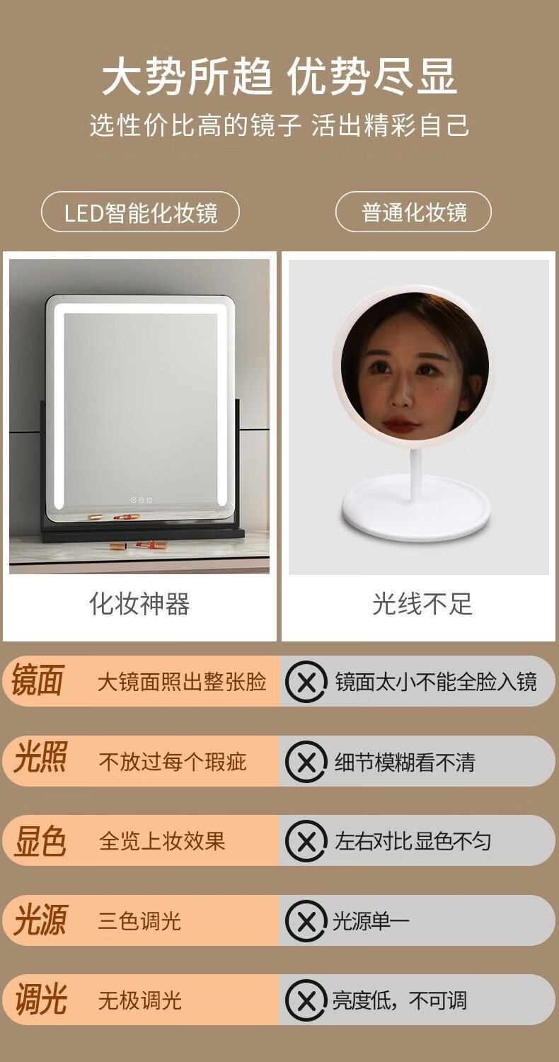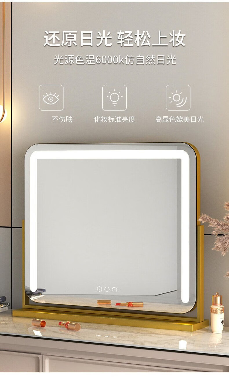 Perfeden Square Bedroom Smart Mirror Cosmetic Mirror Desktop LED Bulb Home Desktop Dressing Mirror with Light Fill-in Cosmetic Mirror Beauty Mirror Horizontal White 70*57 Plug-in