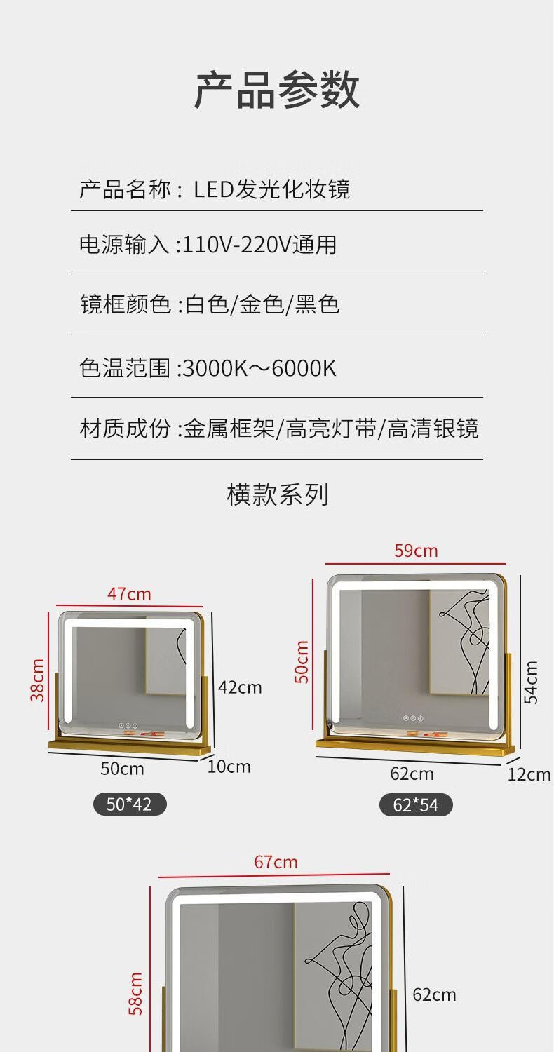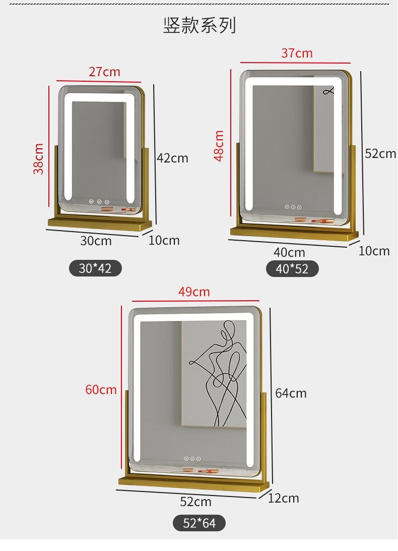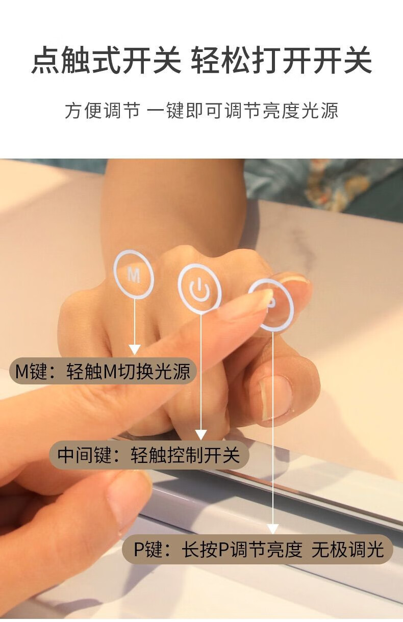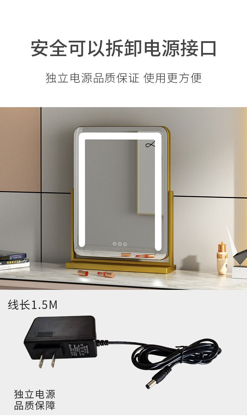 Perfeden Square Bedroom Smart Mirror Cosmetic Mirror Desktop LED Bulb Home Desktop Dressing Mirror with Light Fill-in Cosmetic Mirror Beauty Mirror Horizontal White 70*57 Plug-in