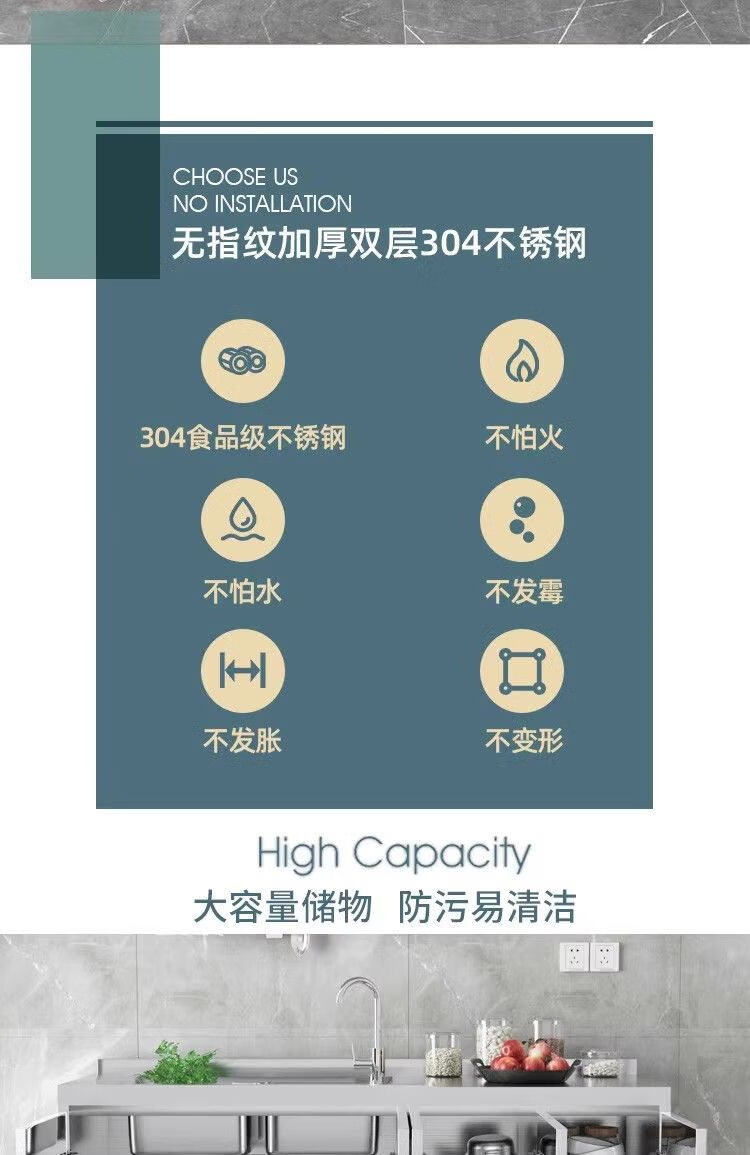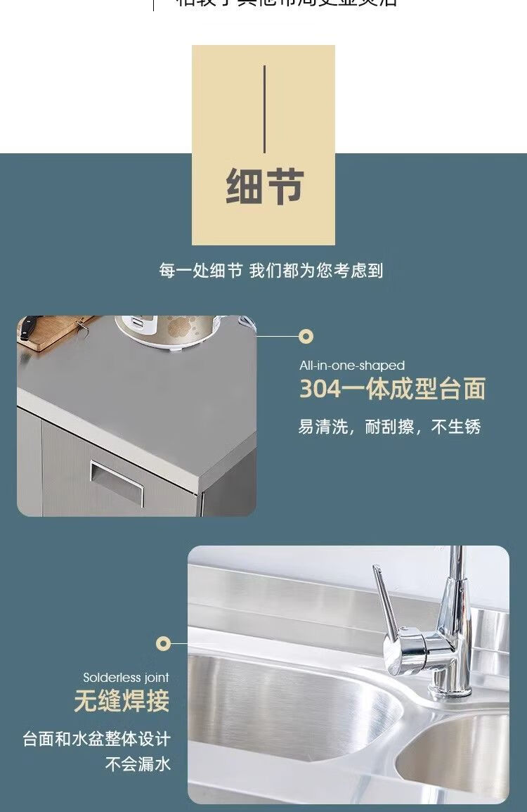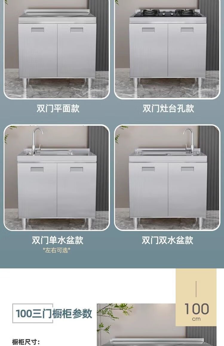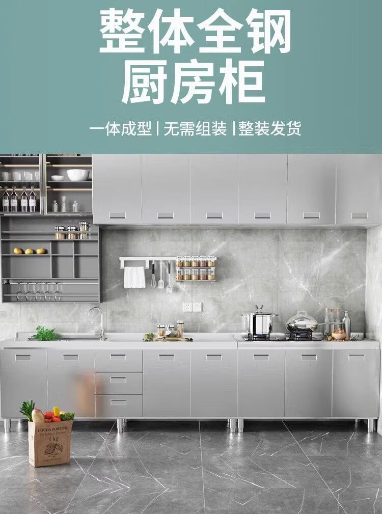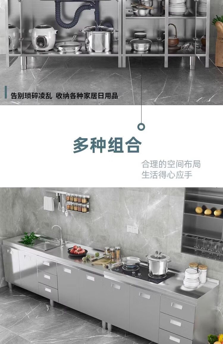 Meikejie 304 overall stainless steel kitchen-free cabinet simple stove integrated storage cupboard household small apartment 201 thickened stainless steel shipped in one package 80cm double door flat model (stove note)