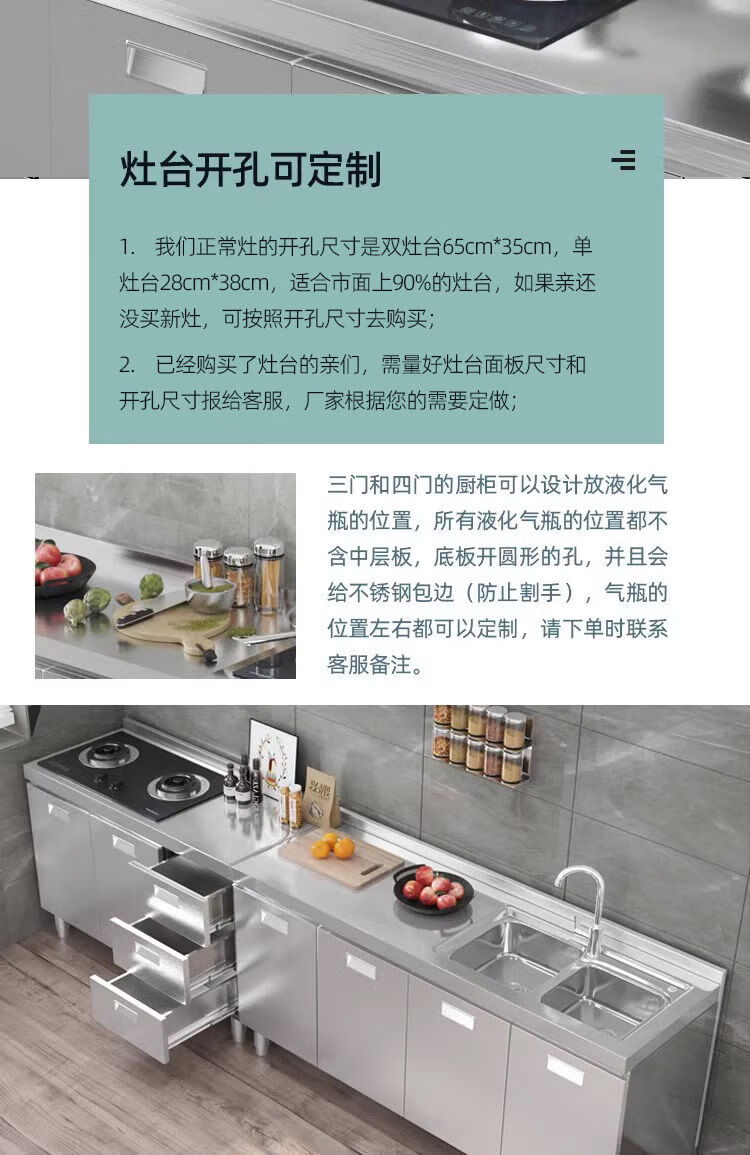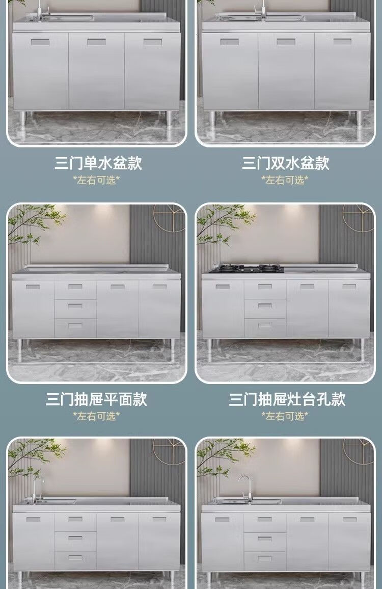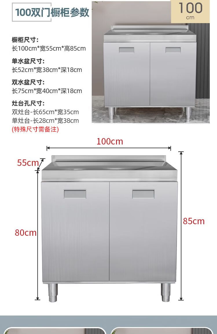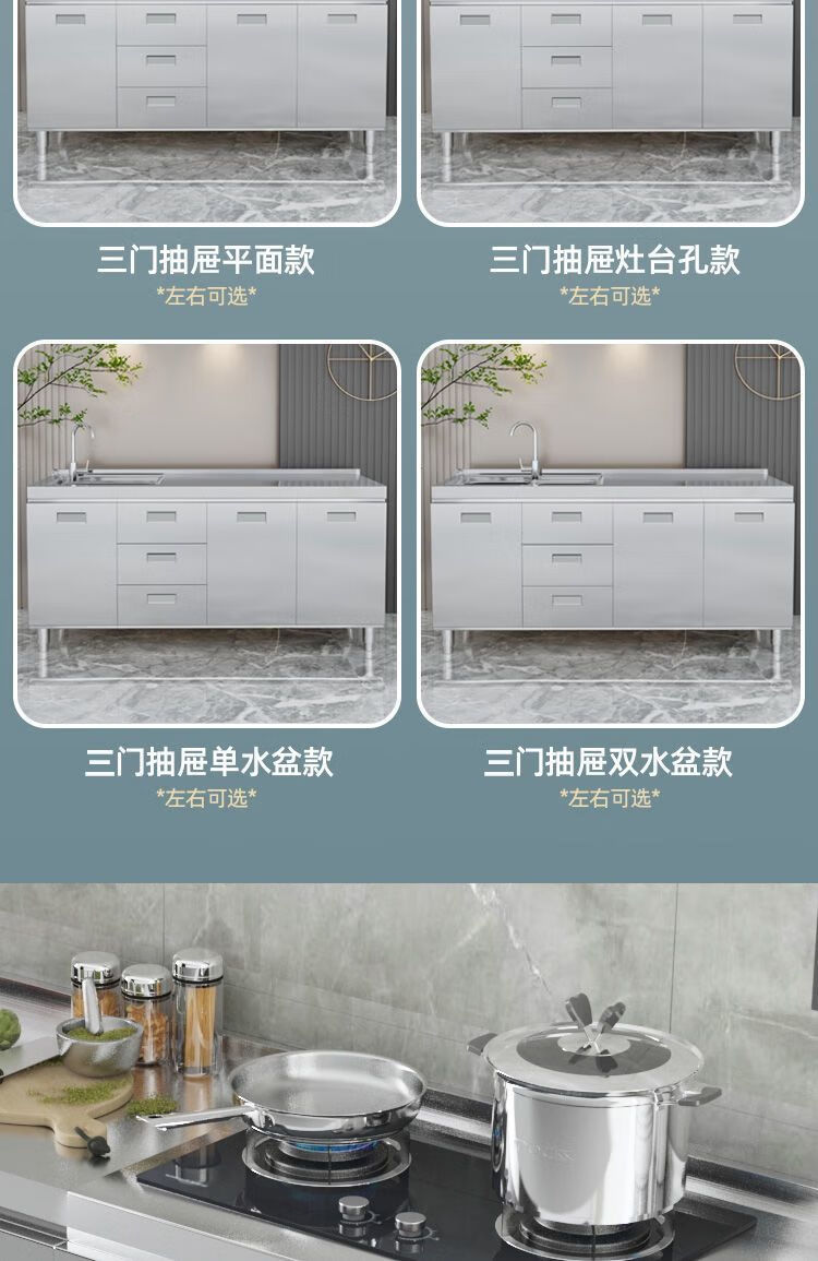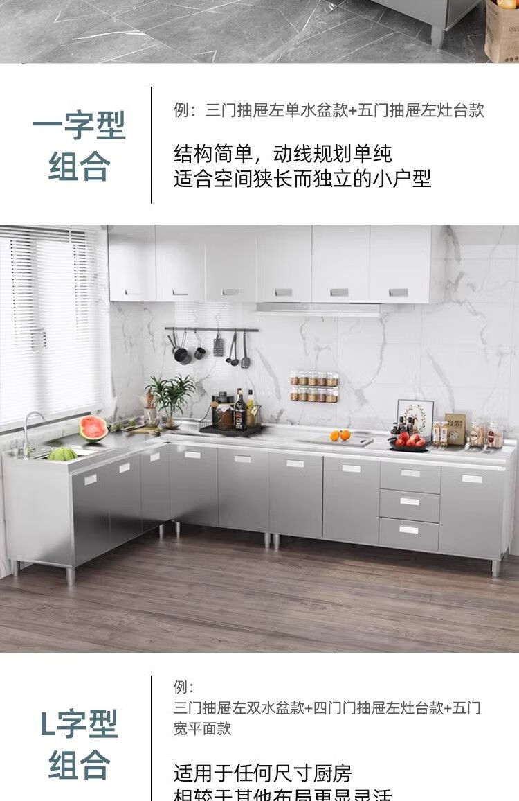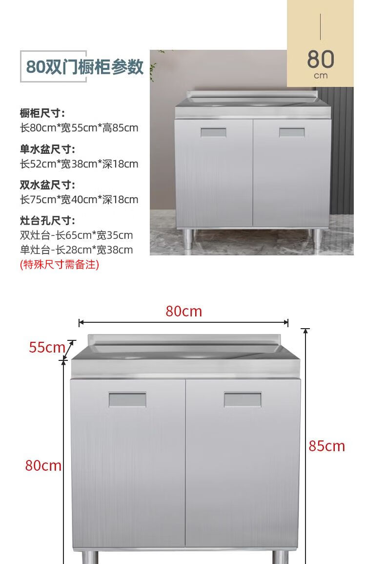 Meikejie 304 overall stainless steel kitchen-free cabinet simple stove integrated storage cupboard household small apartment 201 thickened stainless steel shipped in one package 80cm double door flat model (stove note)