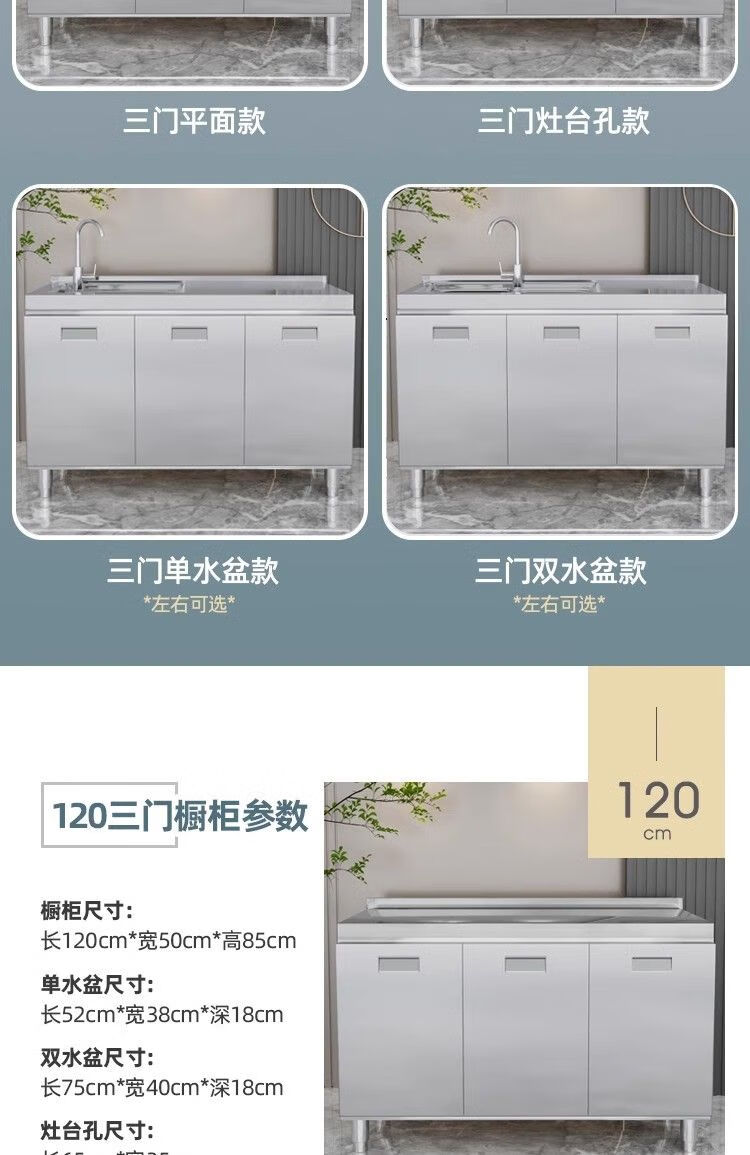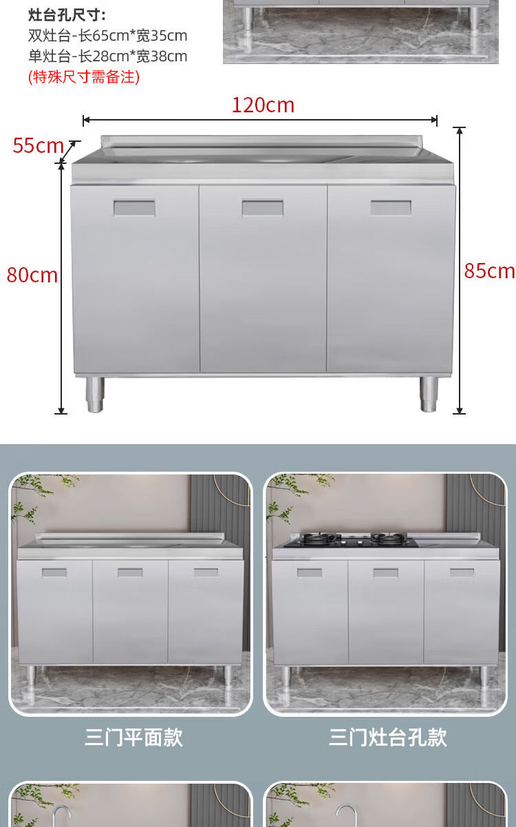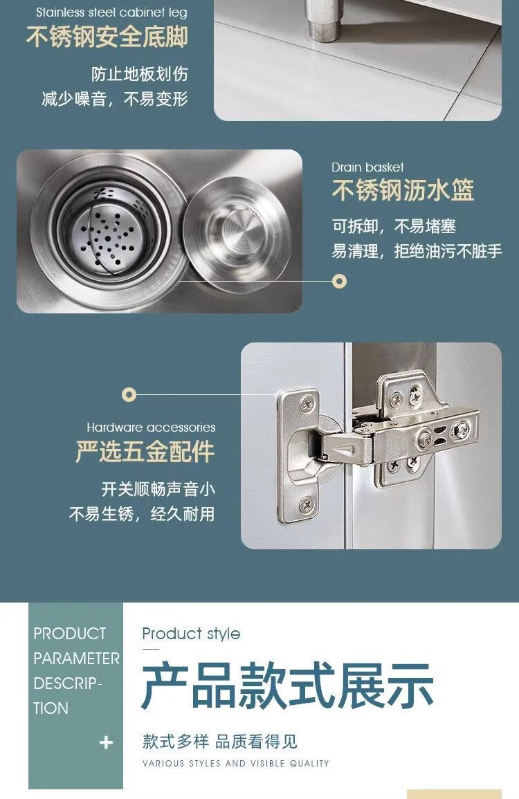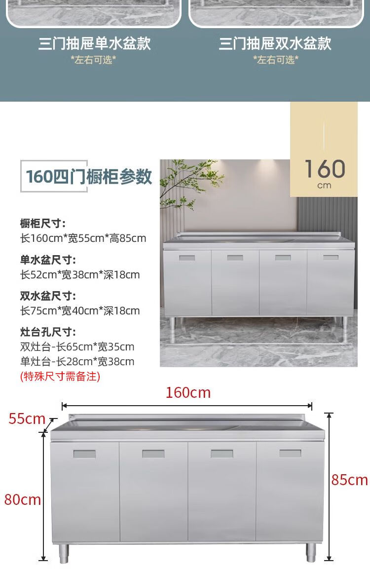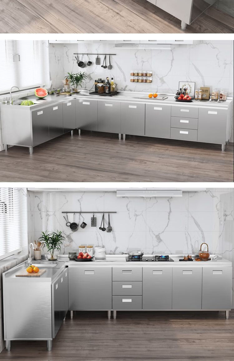 Meikejie 304 overall stainless steel kitchen-free cabinet simple stove integrated storage cupboard household small apartment 201 thickened stainless steel shipped in one package 80cm double door flat model (stove note)
