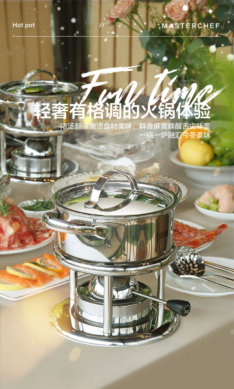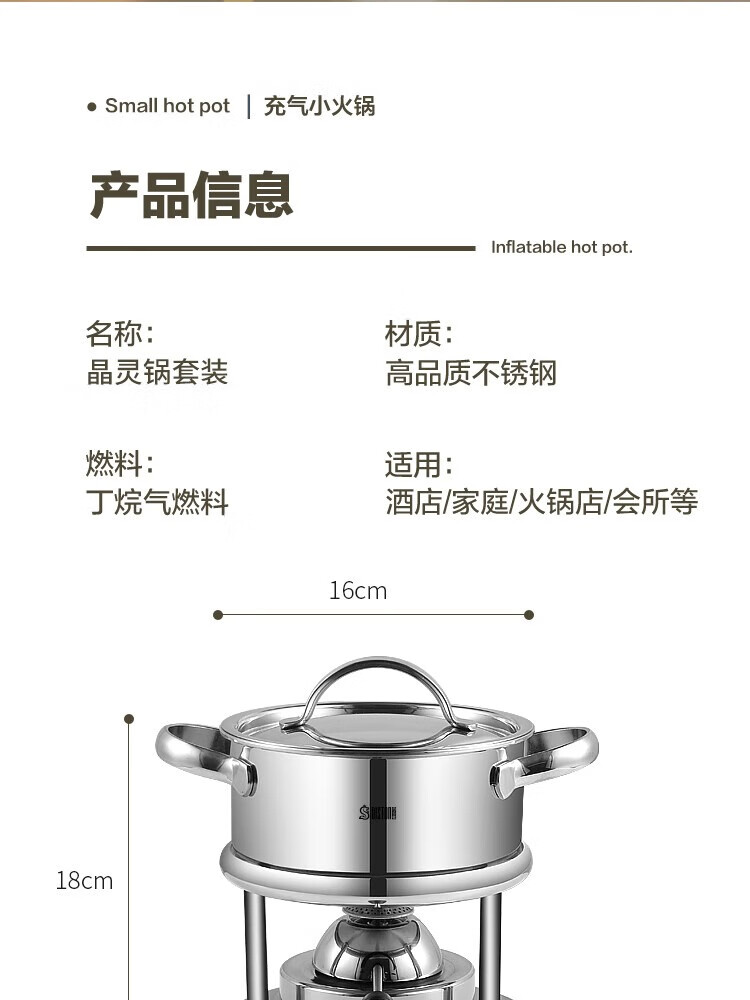 Diston small hot pot pot, one person, one pot, single person hot pot, inflatable gas stove, 304 stainless steel hot pot special pot for household use, Jingling gold set 16cm, EU certified Taiwan imported stove core