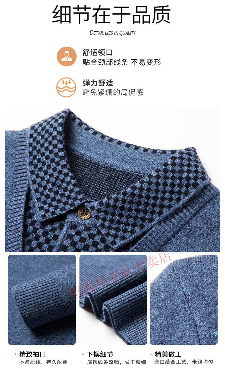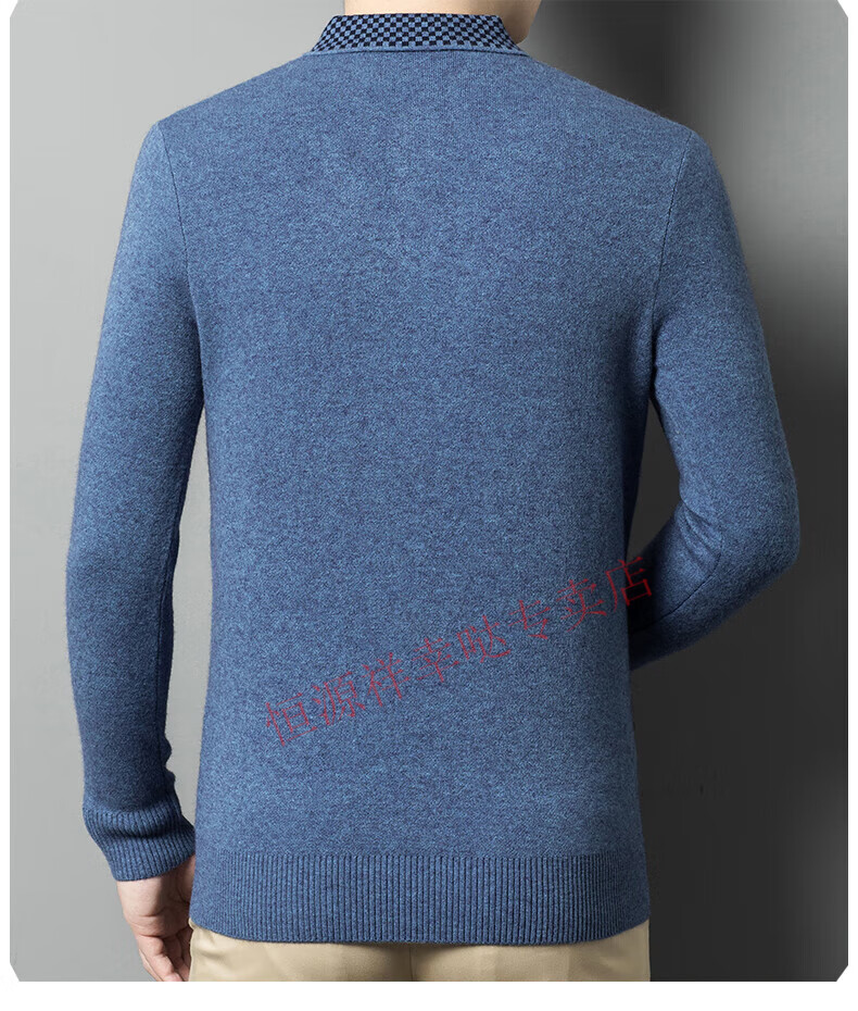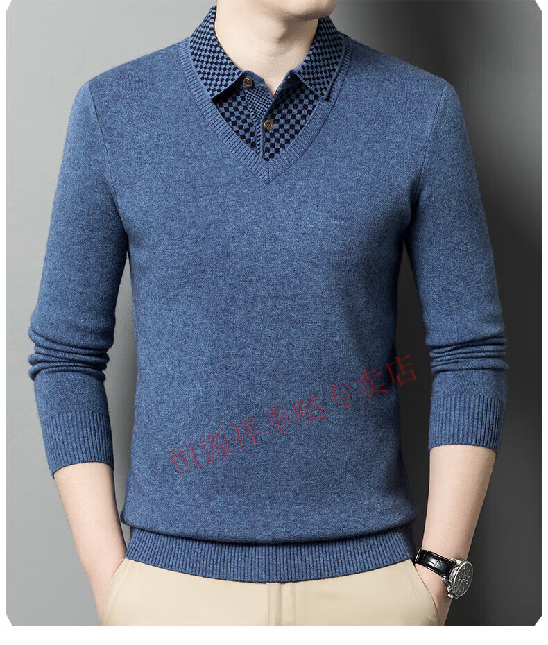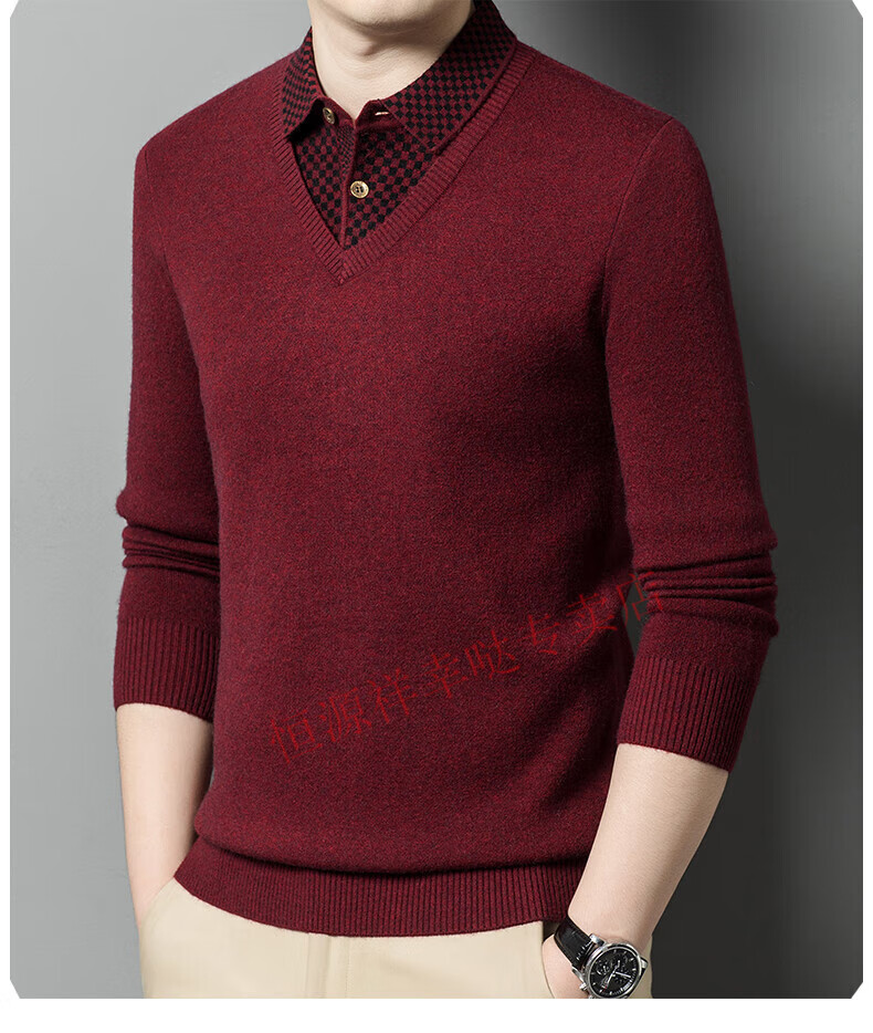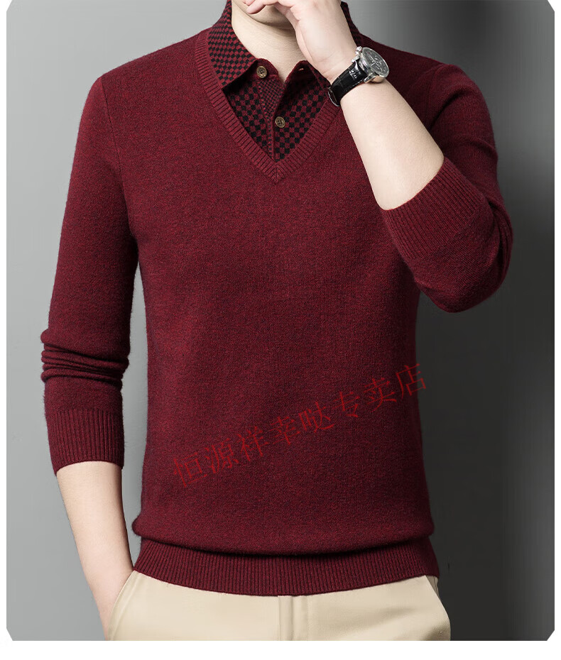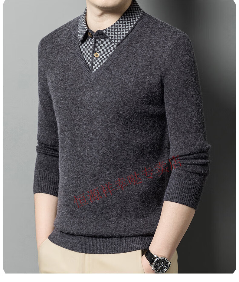 Hengyuanxiang wool sweater for men in autumn and winter long-sleeved solid color fake two-piece thickened warm sweater base sweater camel color pure new 100 selected fine wool