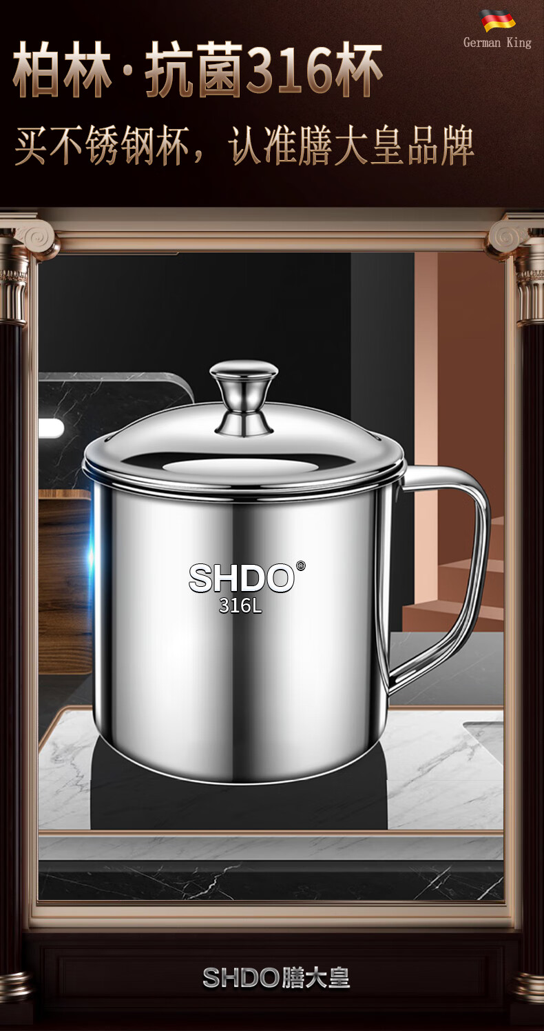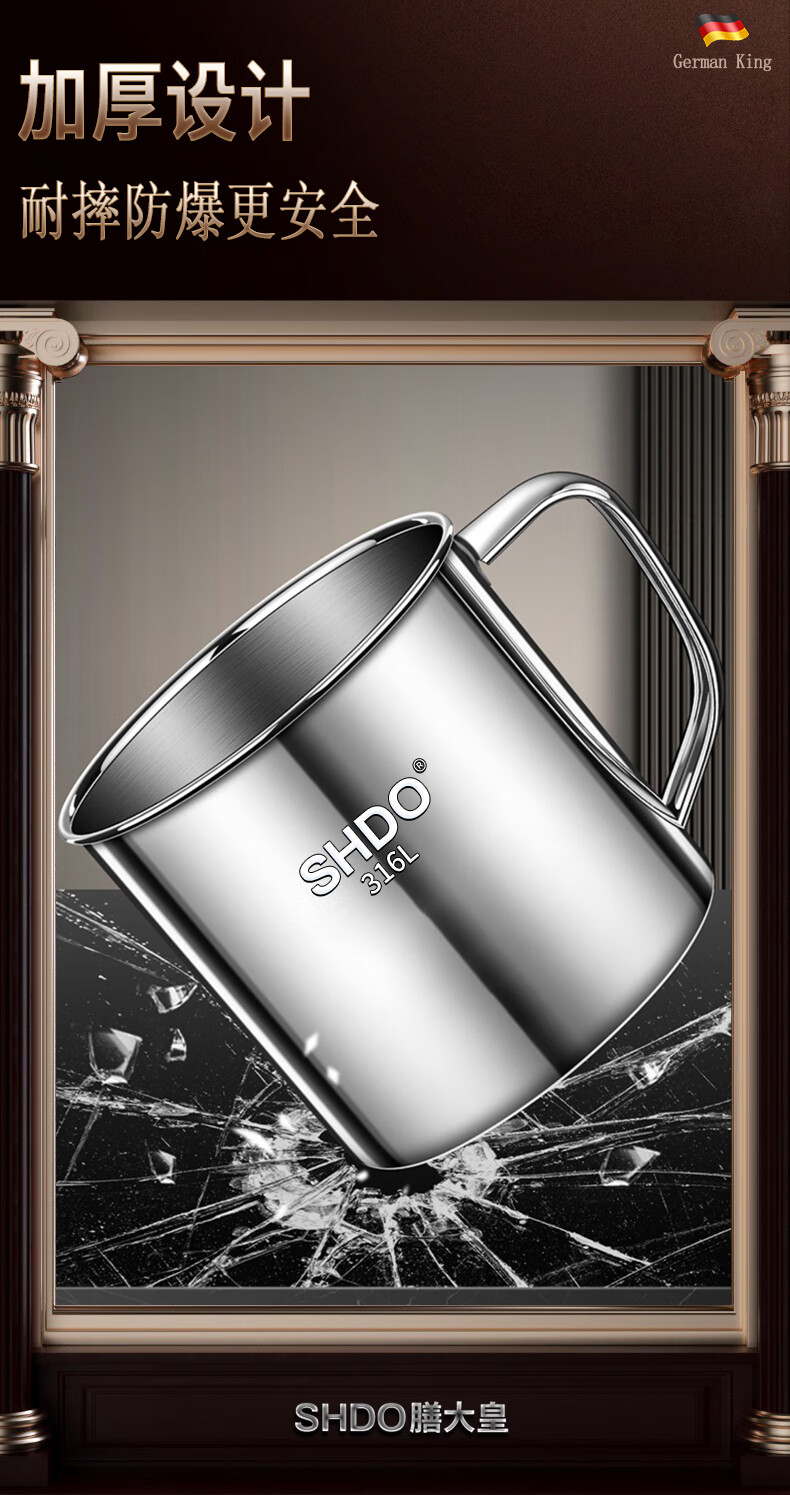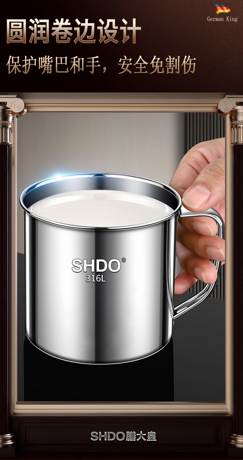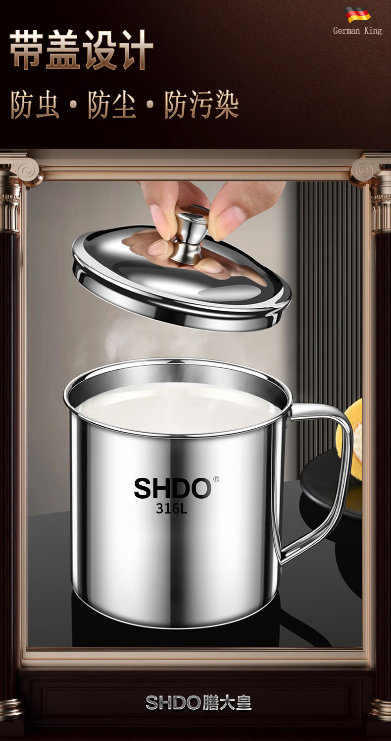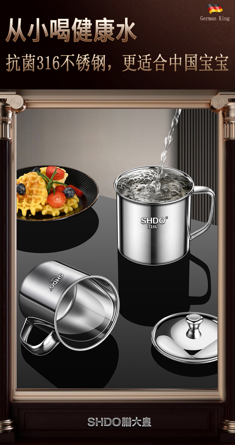 SHDO Antibacterial 316 Stainless Steel Water Cup with Cover Tea Cylinder Large Food Grade Old Fashioned Tea Cup Office Mouth Cup Small Cup Medical Grade Antibacterial 316 550ml