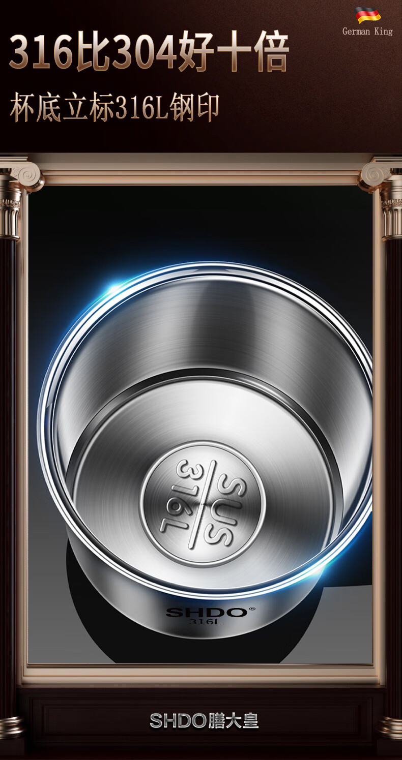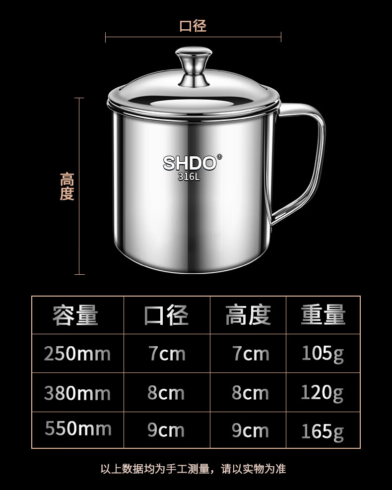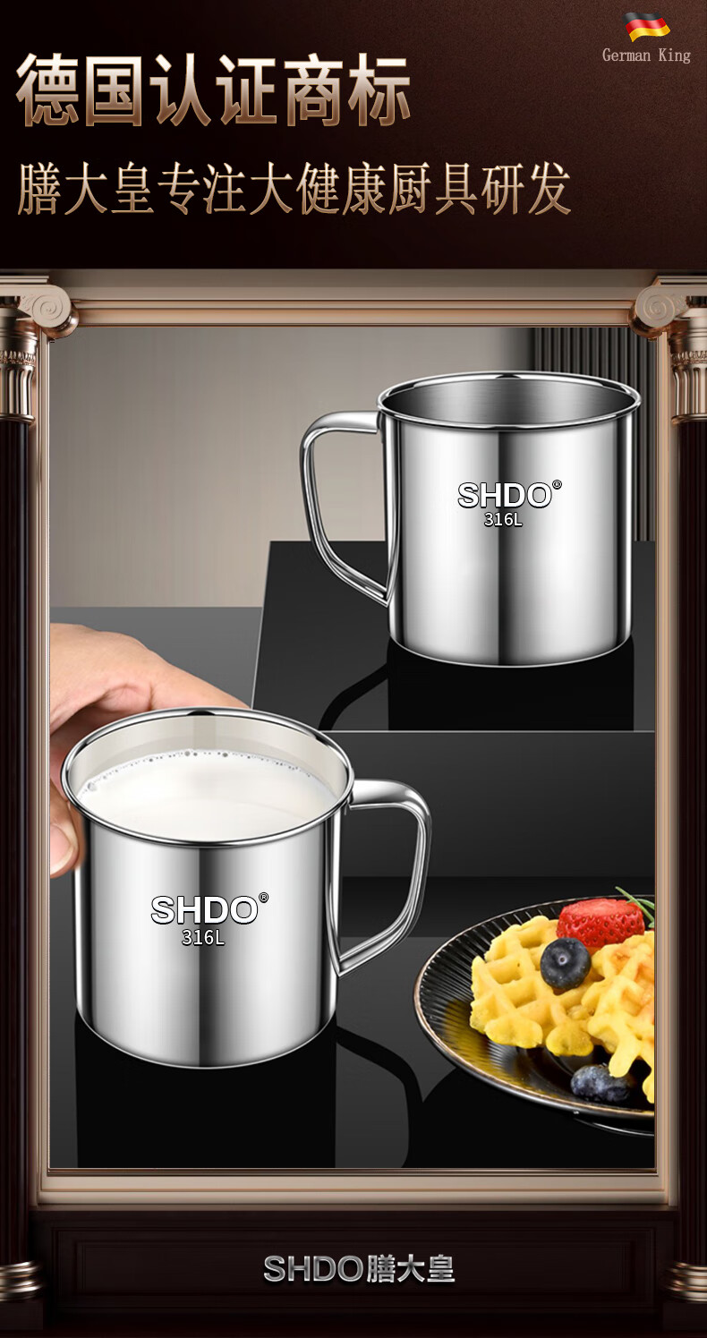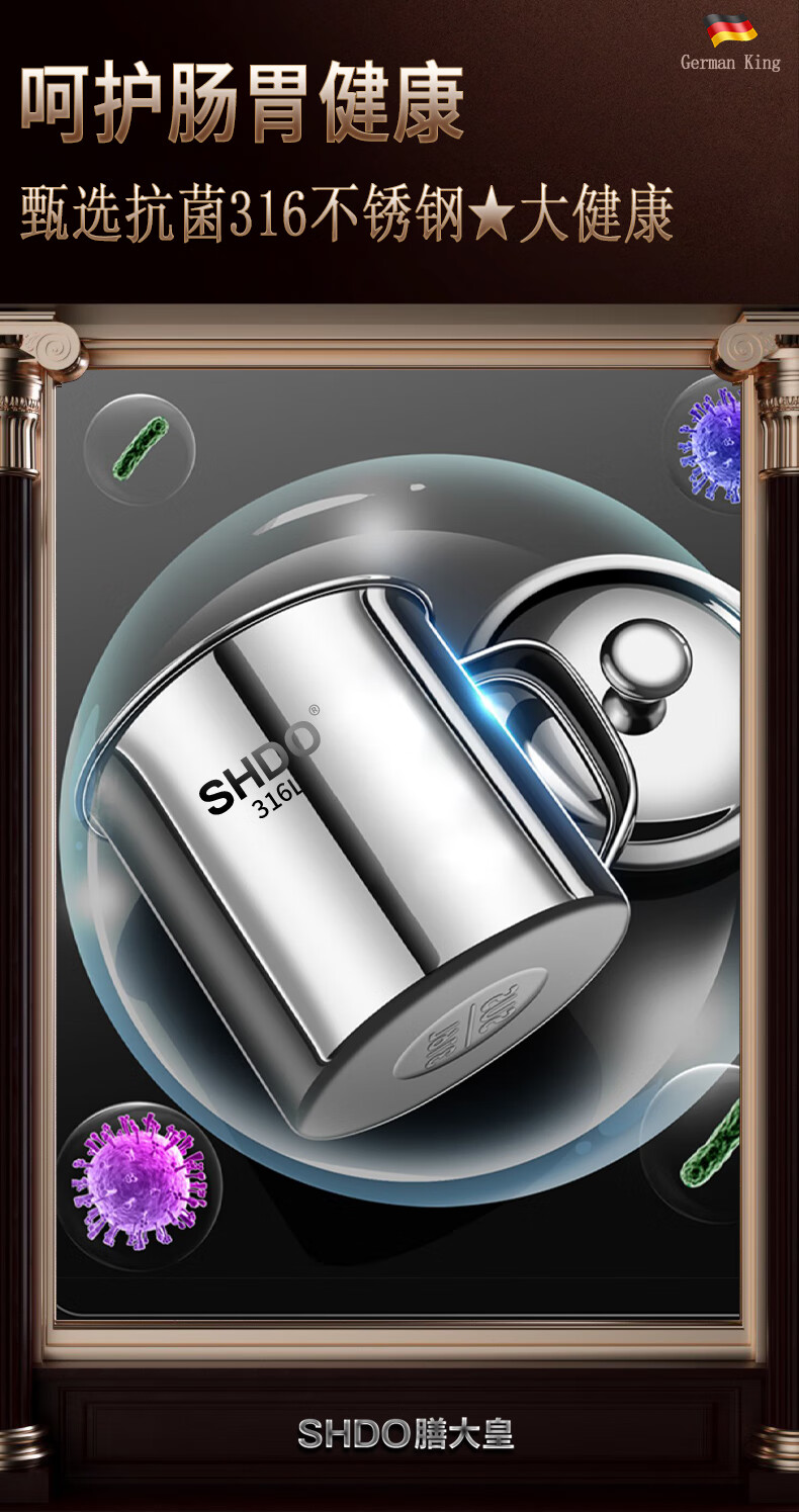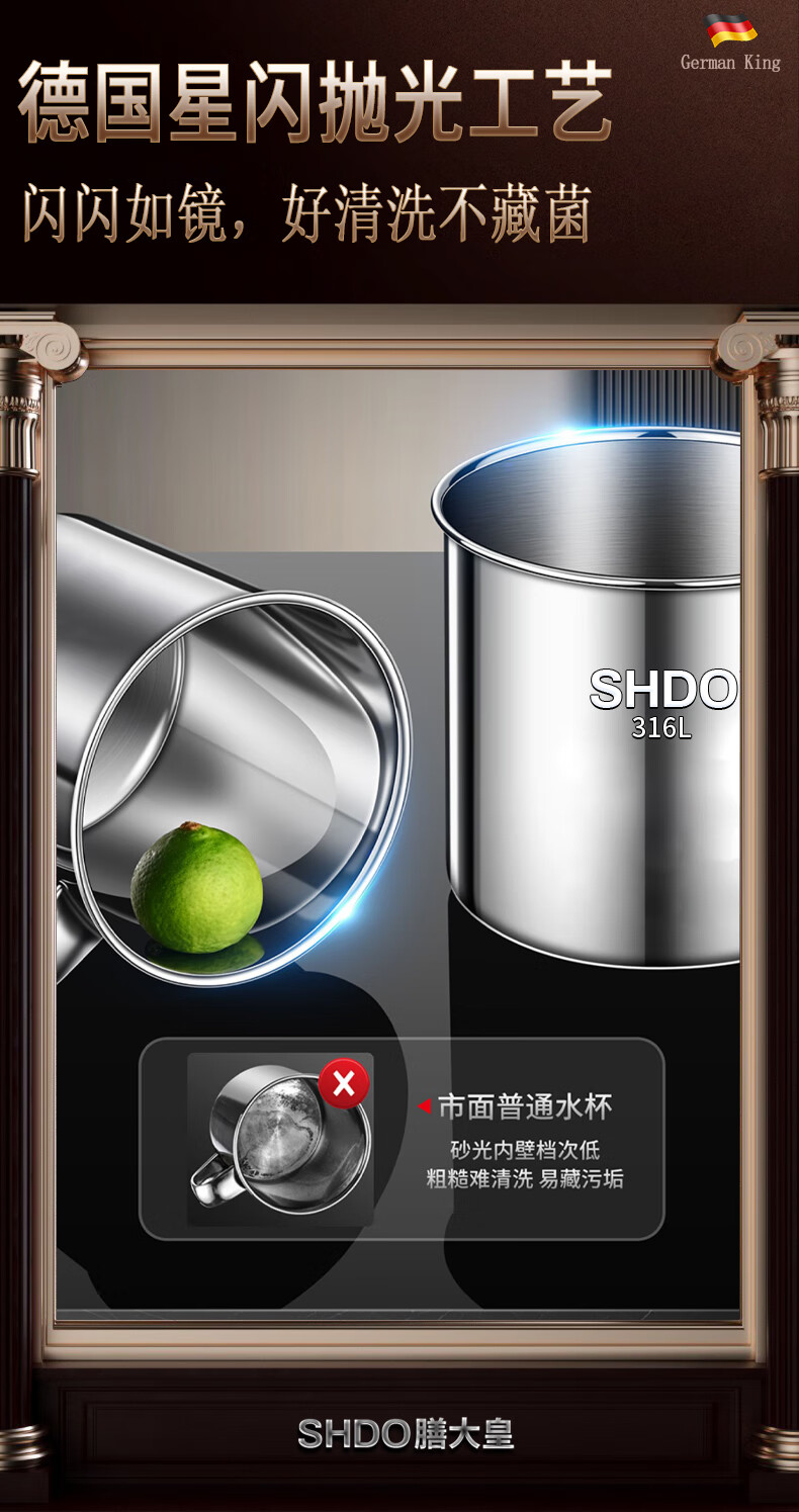SHDO Antibacterial 316 Stainless Steel Water Cup with Cover Tea Cylinder Large Food Grade Old Fashioned Tea Cup Office Mouth Cup Small Cup Medical Grade Antibacterial 316 550ml