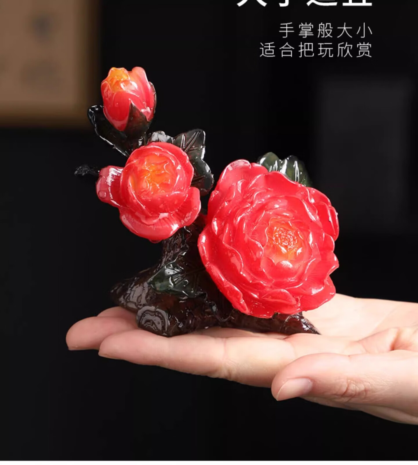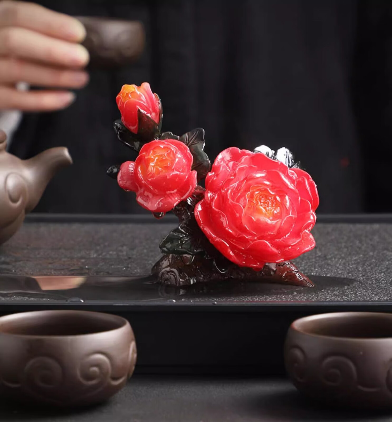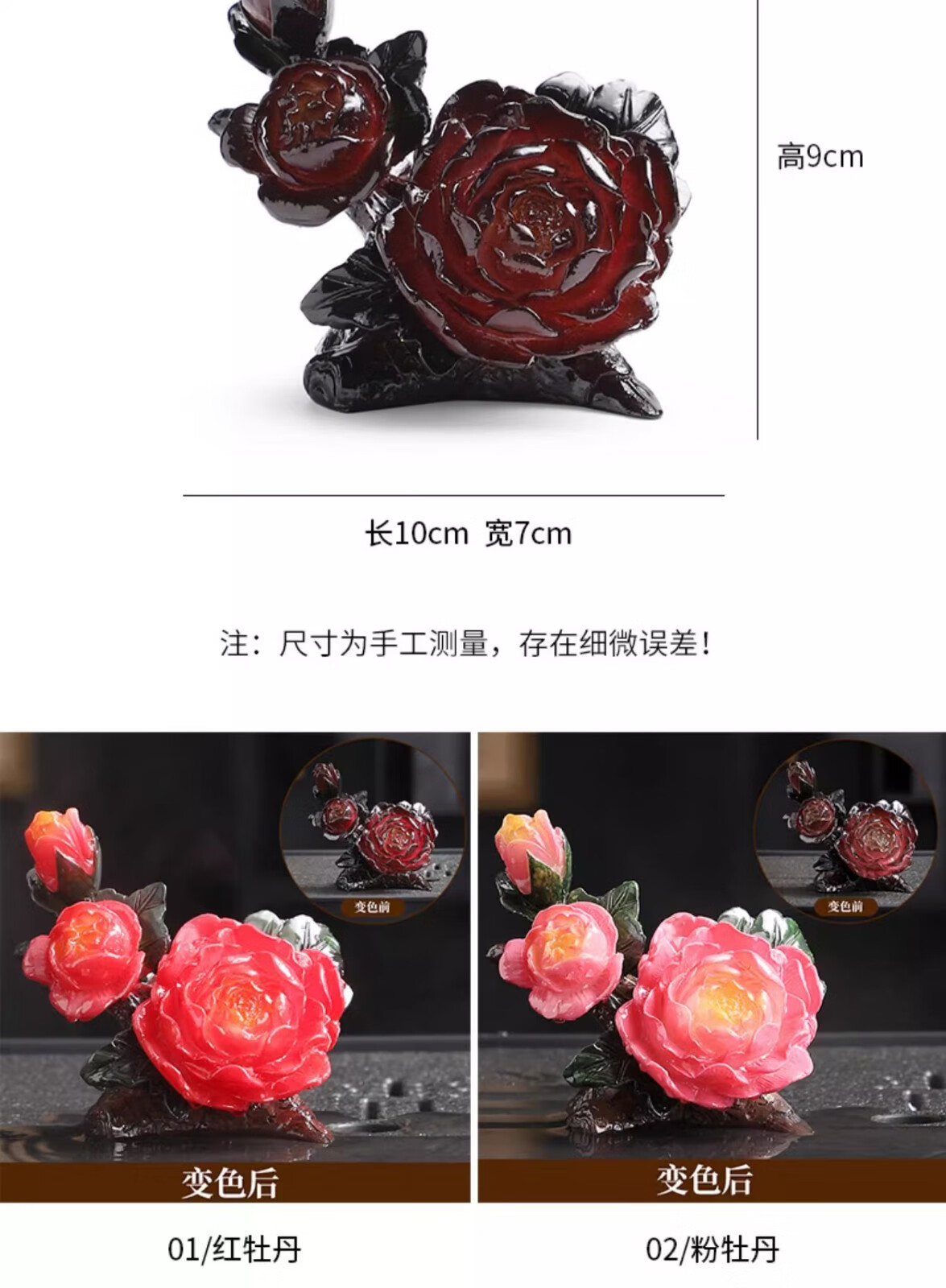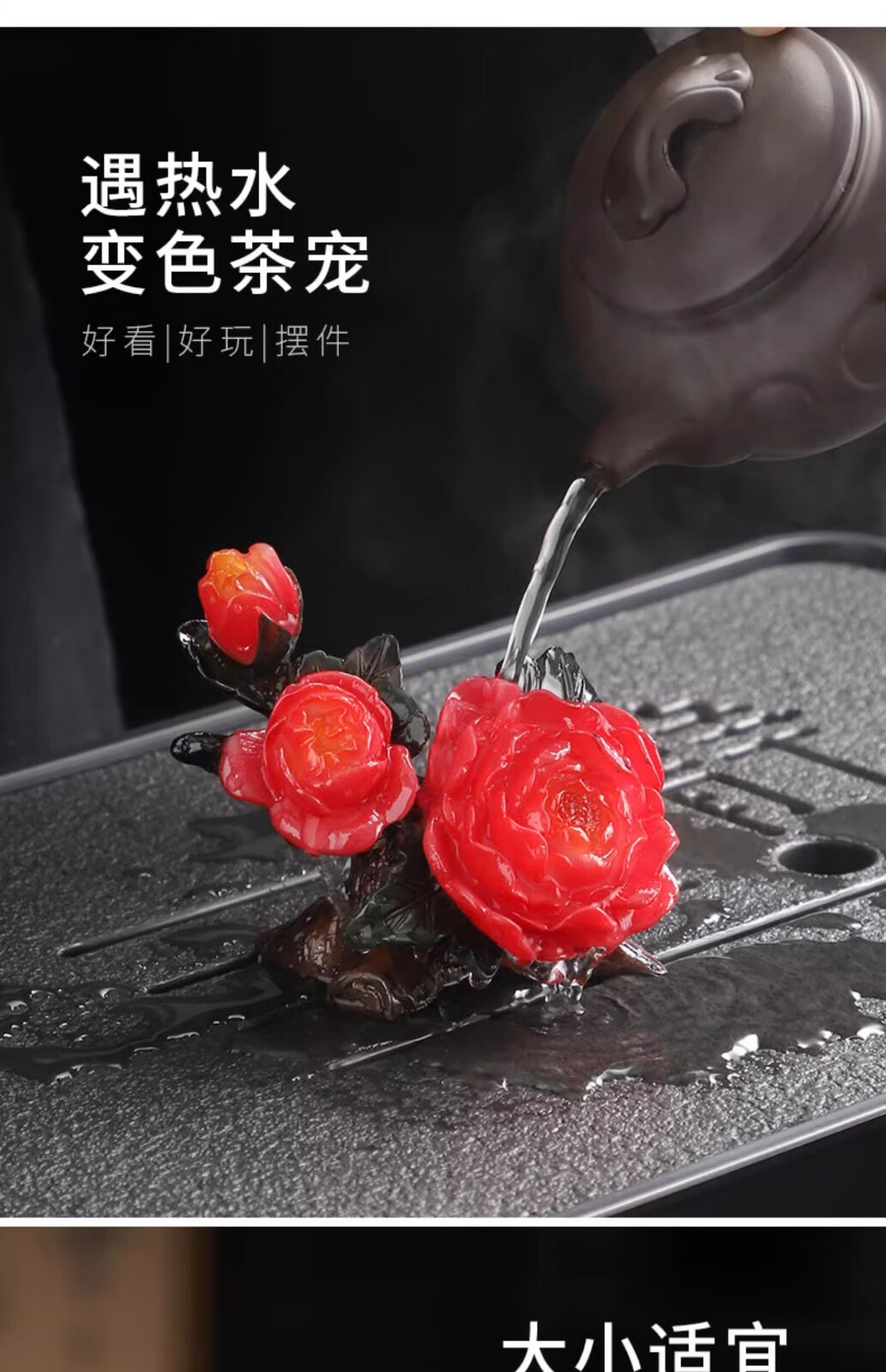 Tao Fuqi tea pet ornaments attract wealth, flowers bloom and wealth, tea table, tea tray, tea table, tea set accessories, color-changing peony tea, can be played and raised, flowers bloom, wealth, color-changing tea pet - red
