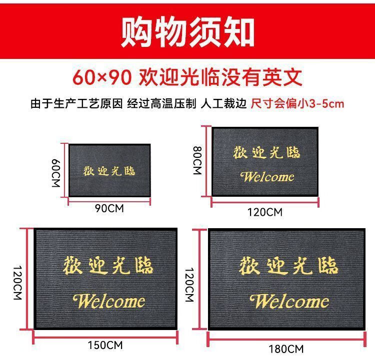 Aoxi Commercial Welcome Floor Mat Door Mat Hotel Opening Welcome Foot Mat Water-Absorbent Outdoor Door Anti-Slip Mat Red Stripe-Welcome 120*240CM