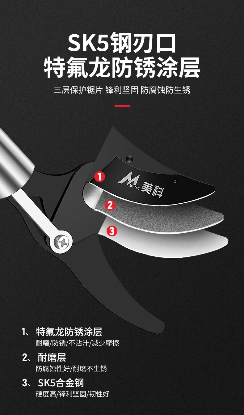 MYTEC high-altitude pruning shears for fruit trees, special scissors for pruning branches, extended pruning scissors, extended pole pruning scissors, high branch shears, 1 meter high branch shears, stainless steel