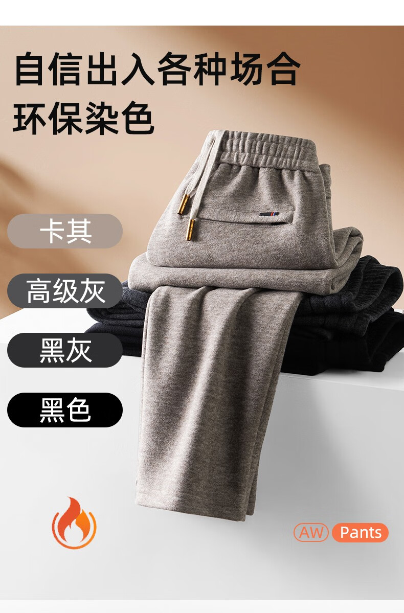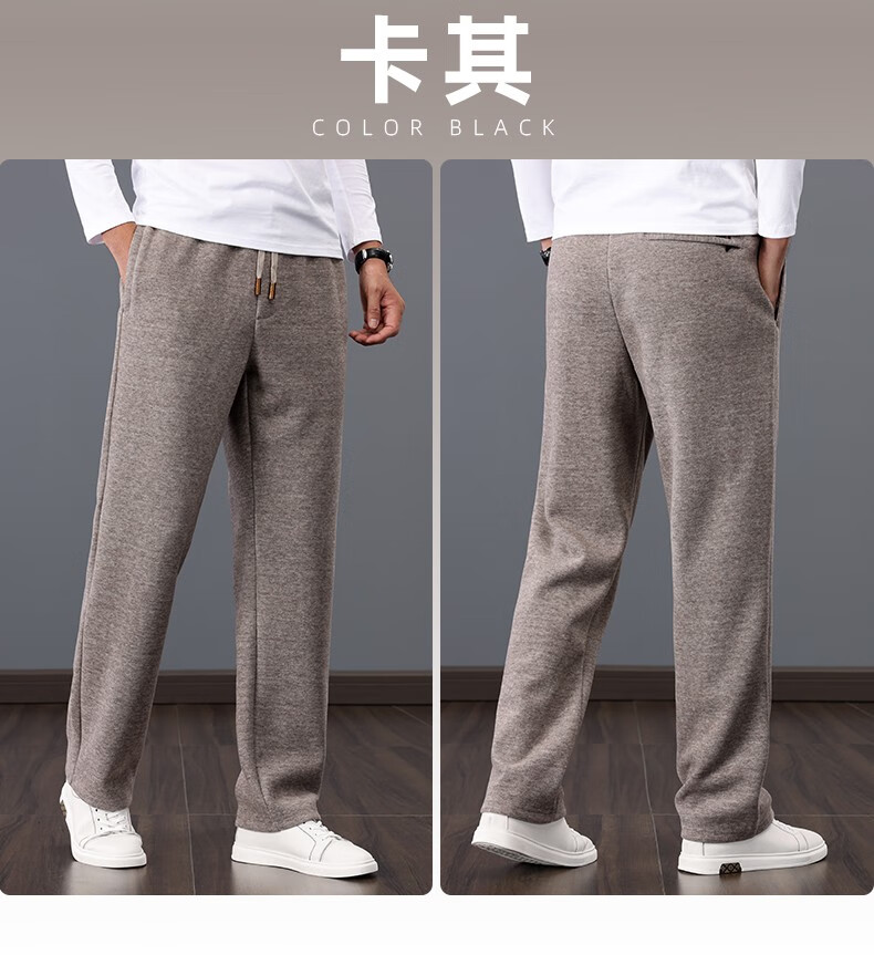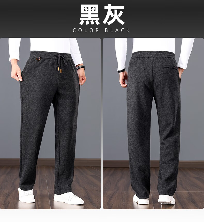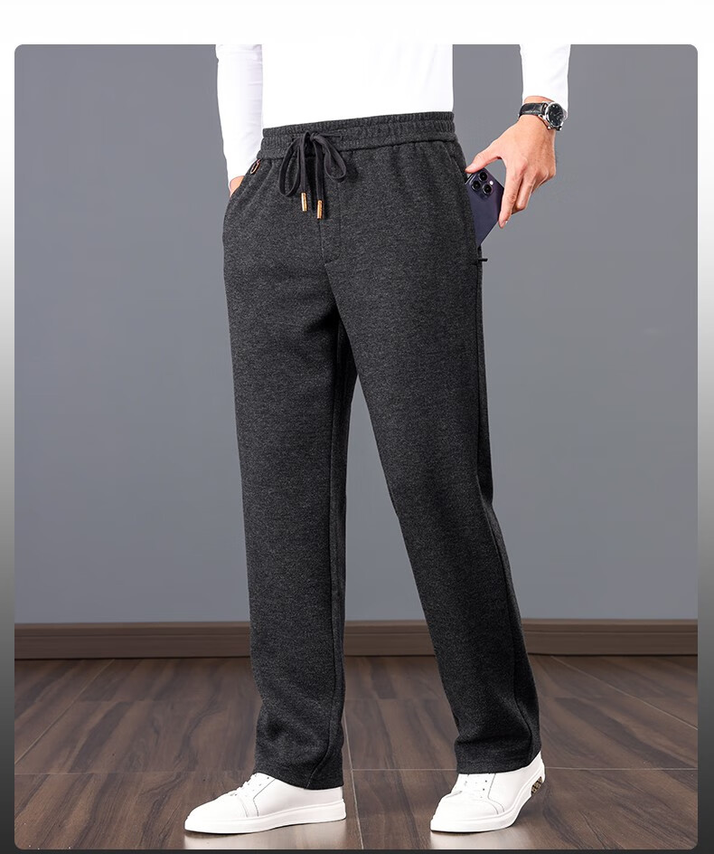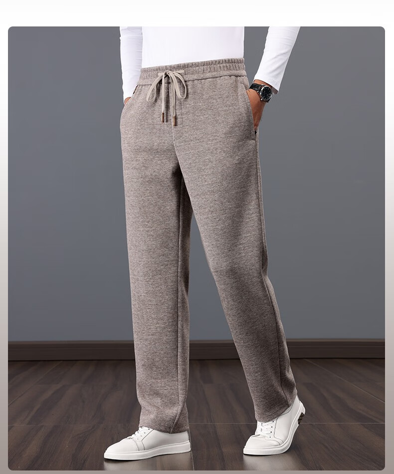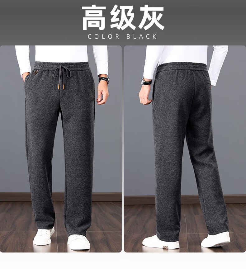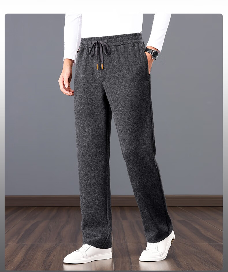 ROMON high-end wool-containing casual pants for men in autumn and winter, loose straight heavyweight sports woolen pants for middle-aged and elderly dads, high-grade gray XL