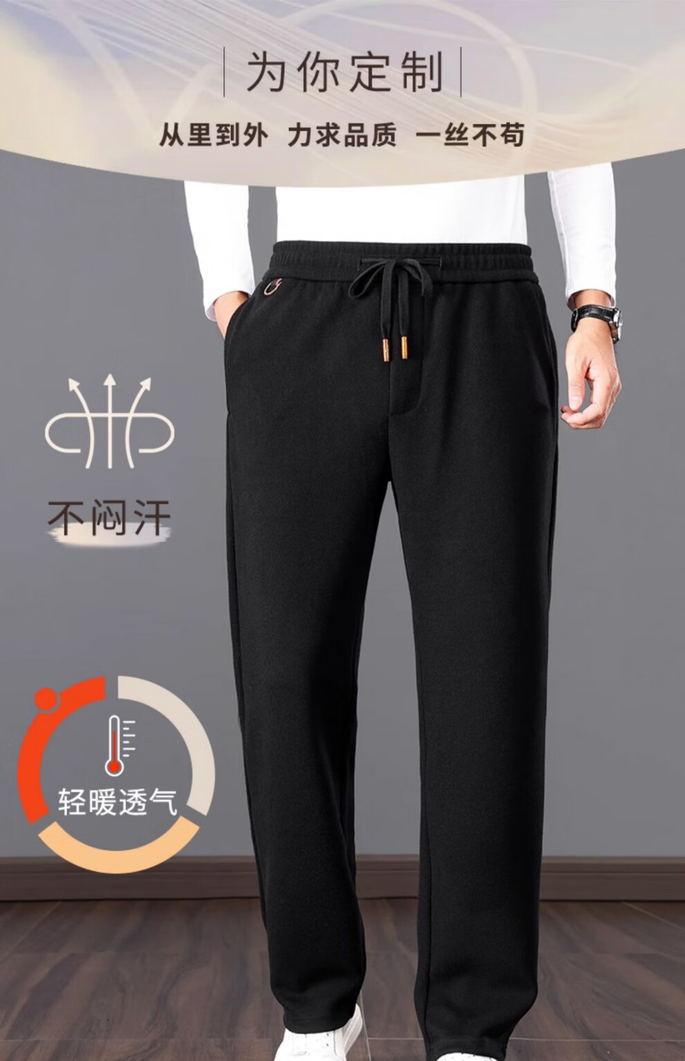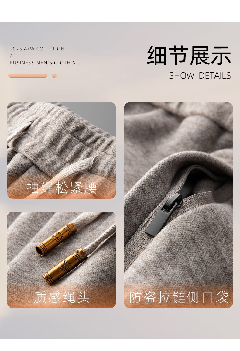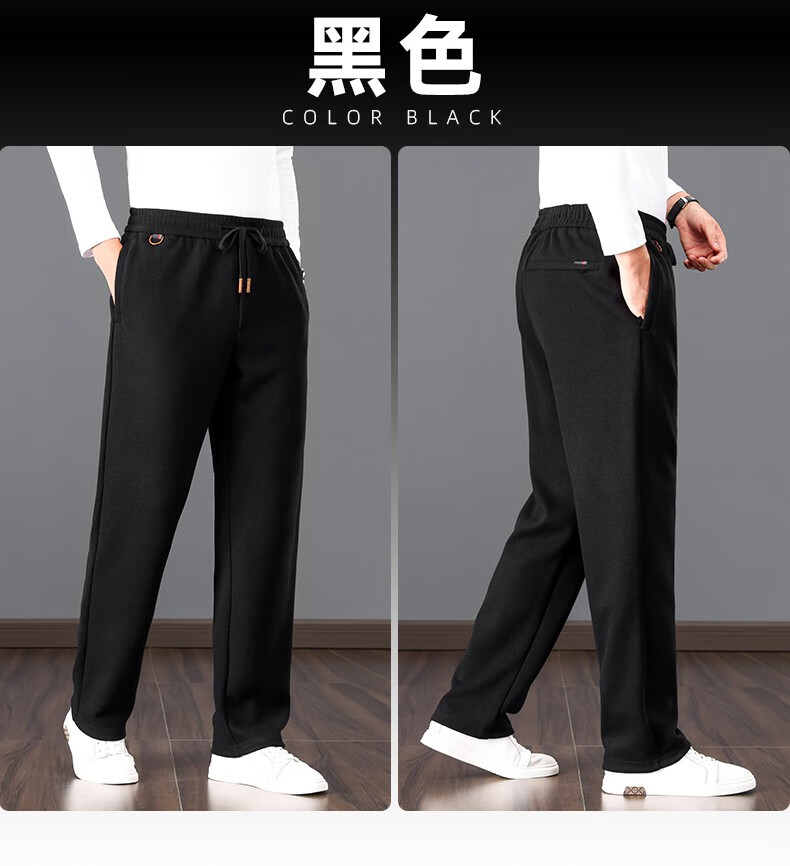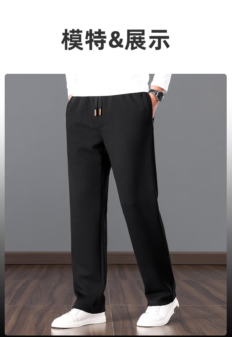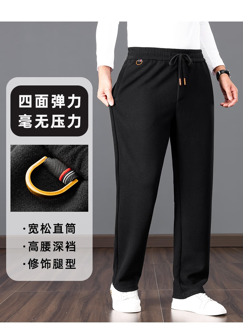 ROMON high-end wool-containing casual pants for men in autumn and winter, loose straight heavyweight sports woolen pants for middle-aged and elderly dads, high-grade gray XL